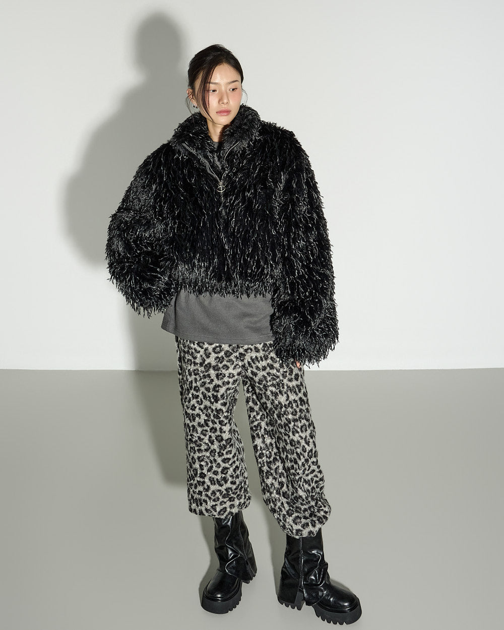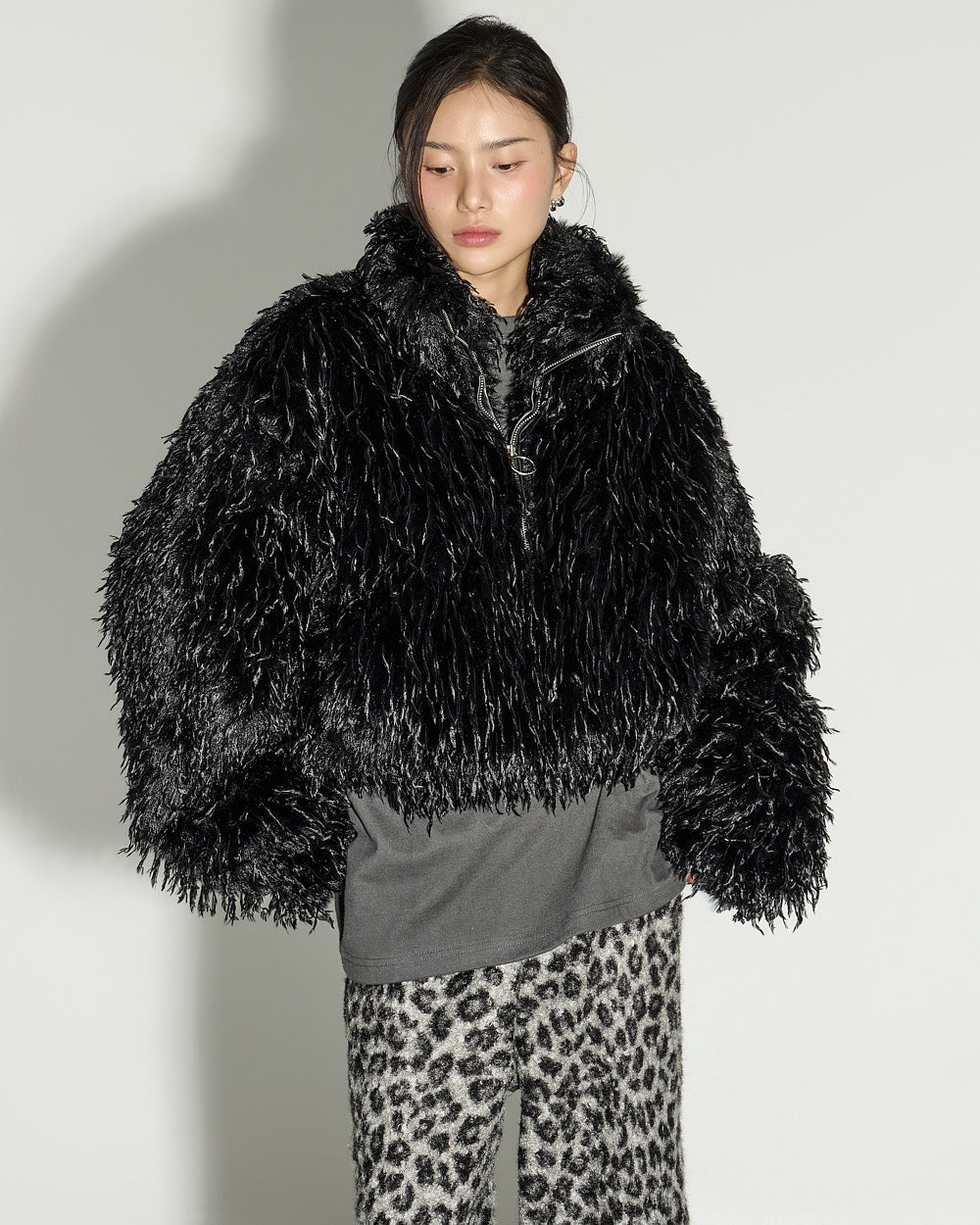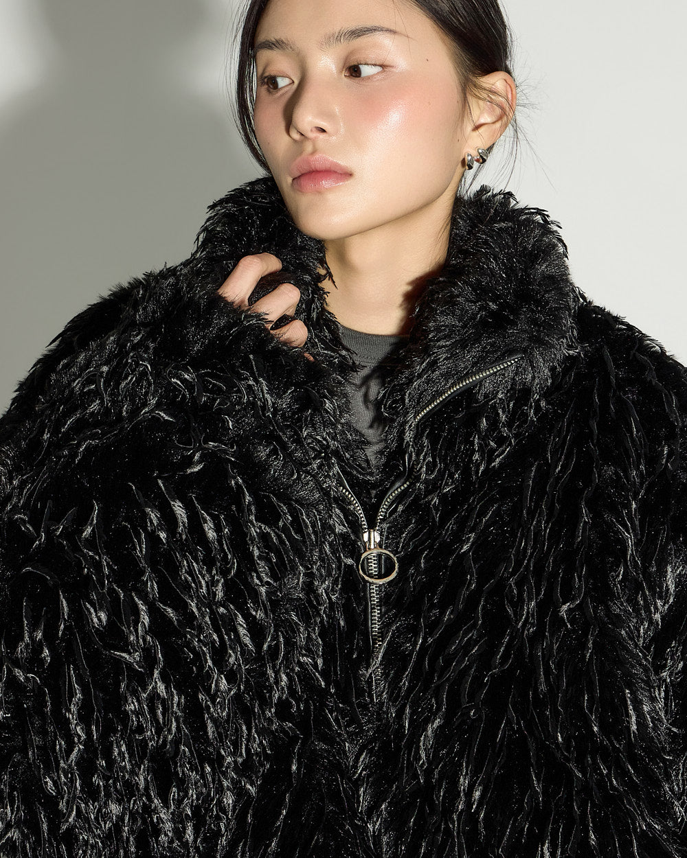 J3052 Fur Zip-Up Short Jacket