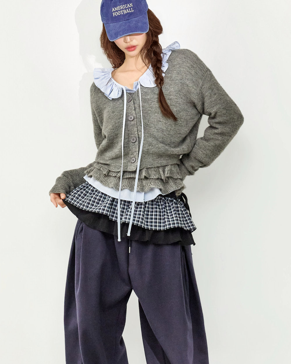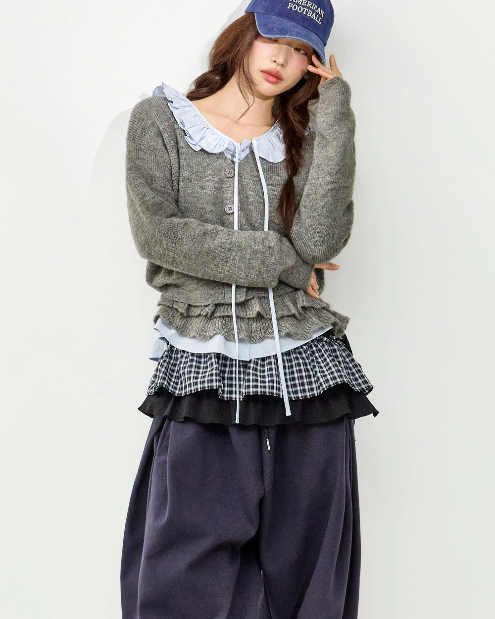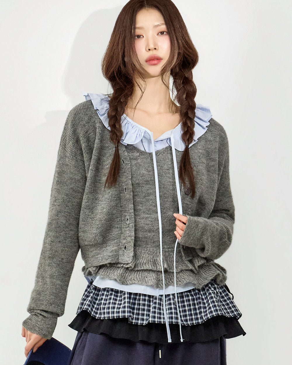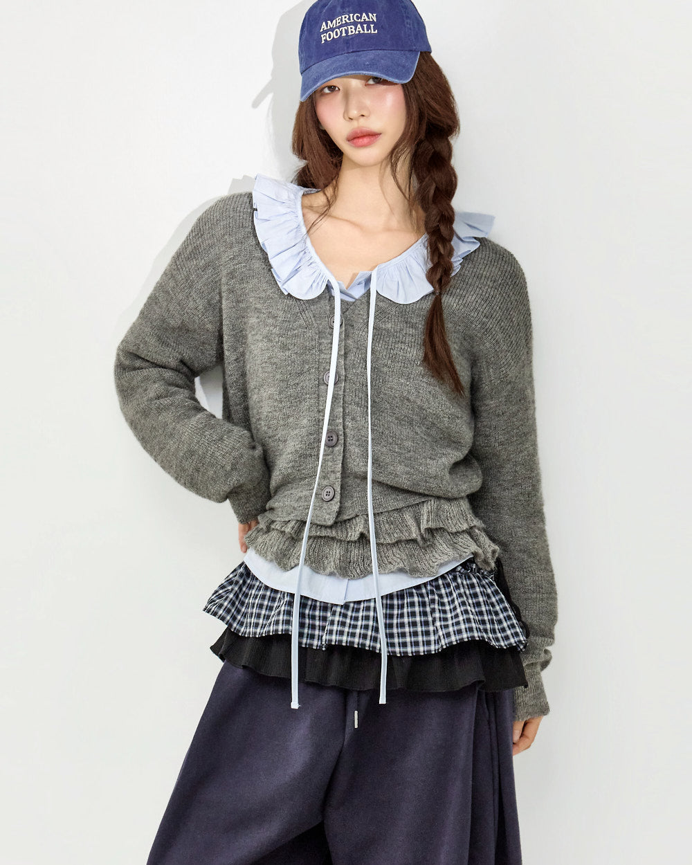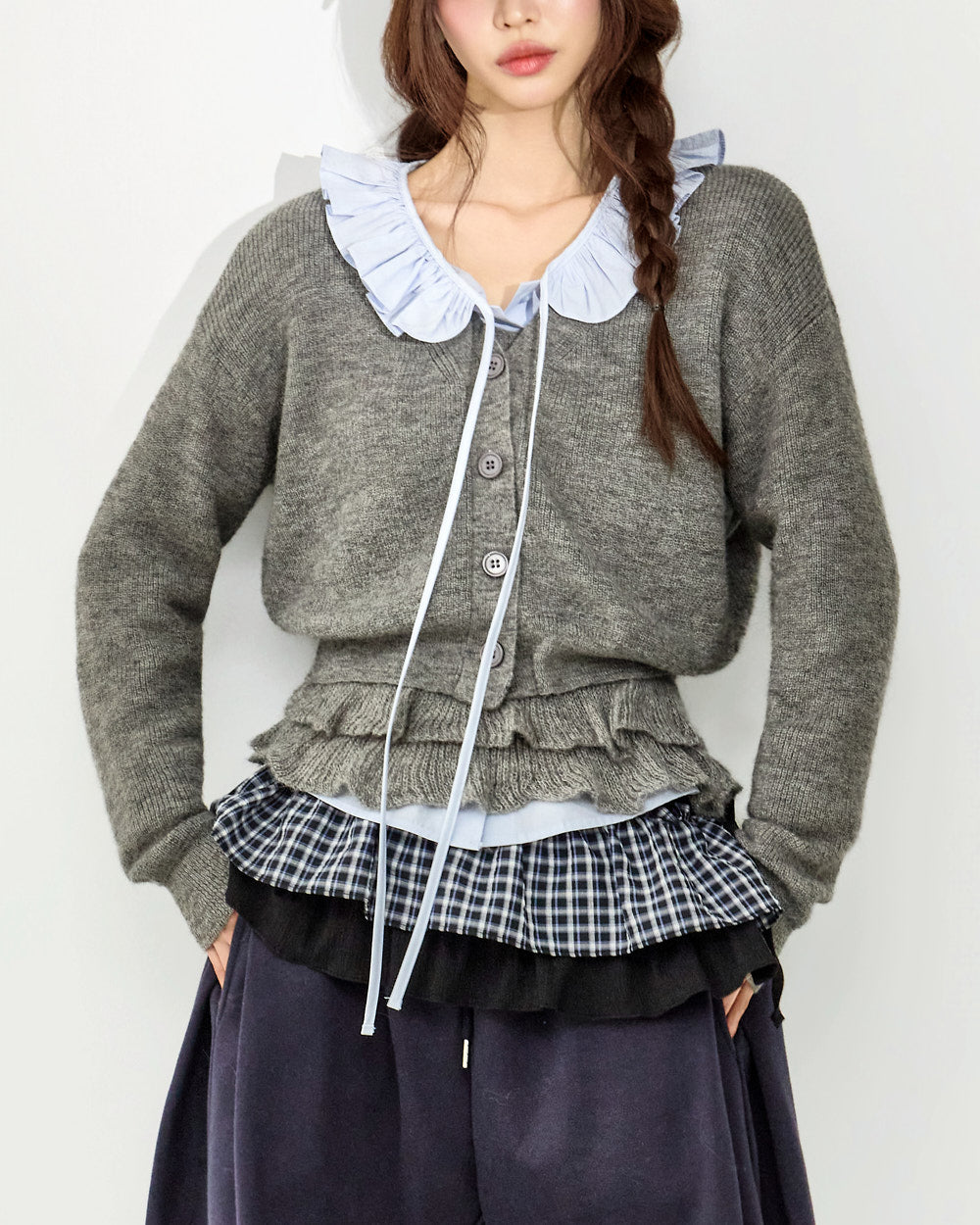 This lovely frilled layered cardigan is perfect for a casual look or a date.