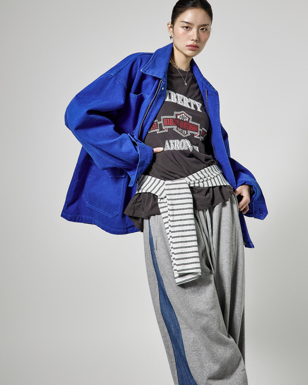 Denim (jeans, coated jeans) and other dark-dyed garments may experience color fading or transfer. Please take extra care before the first wash and while wearing them.
