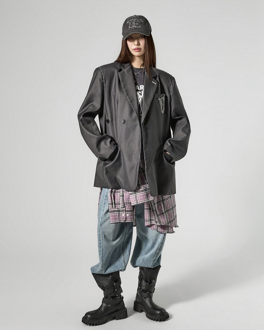 This stitch jacket exudes a stylish and sophisticated vibe.