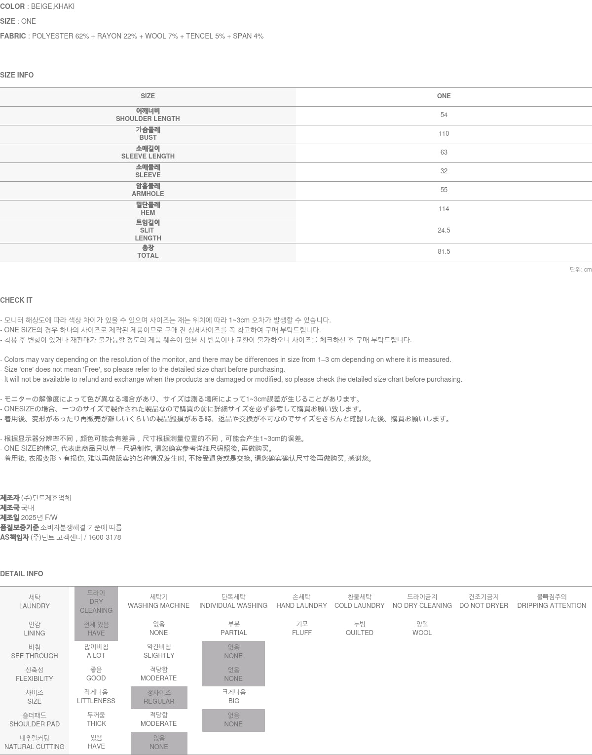 Clothing from DINT Co., Ltd. may become damaged or deformed if machine washed or tumble dried. We strongly recommend following the care instructions provided below.