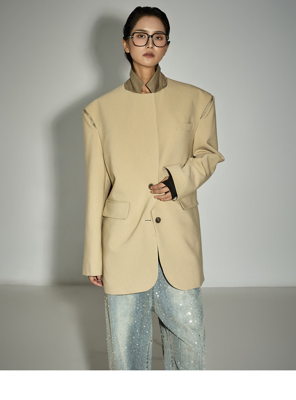 Subtle color-contrast detailing at the collar adds a unique point of interest.