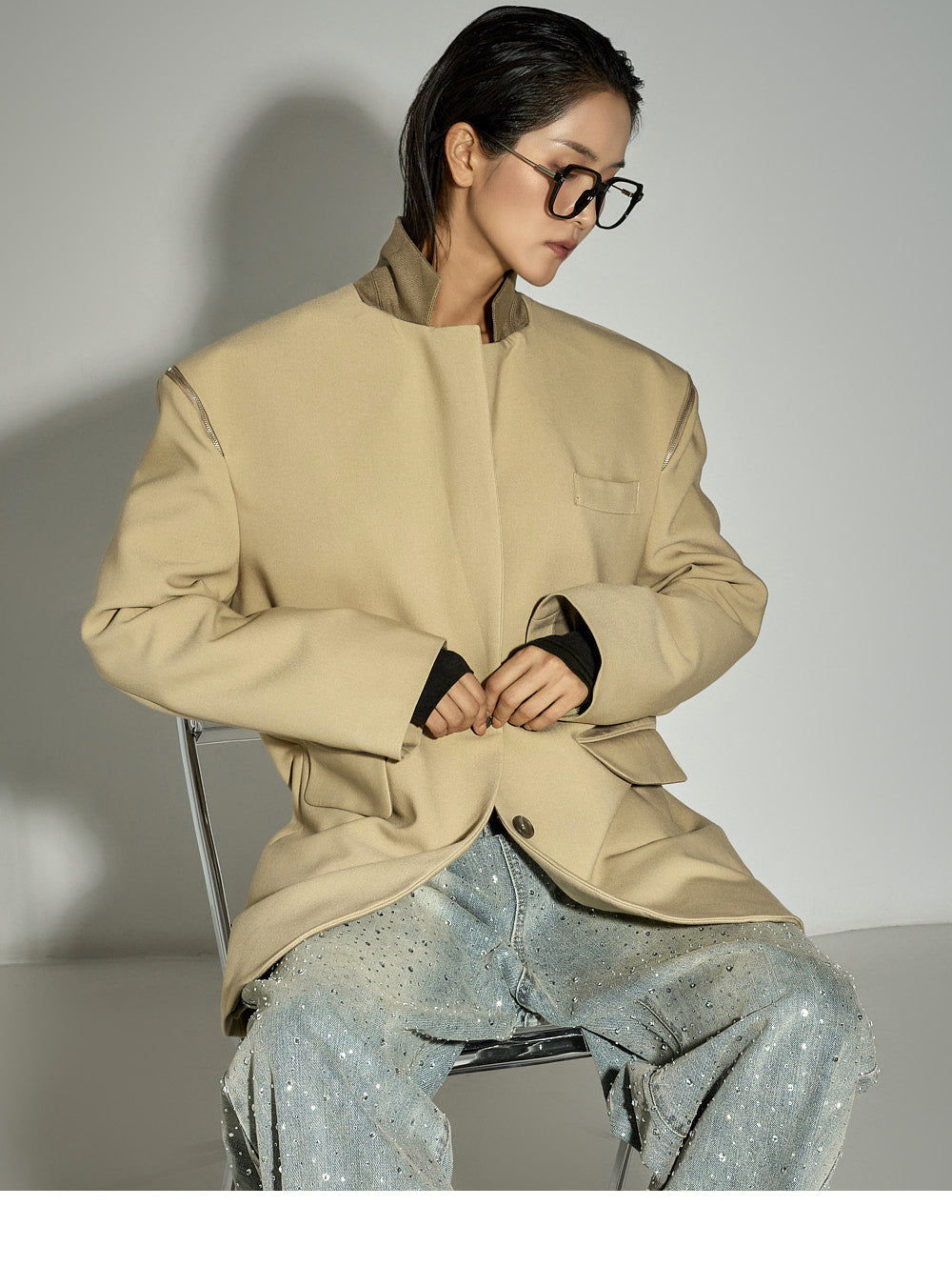 this outerwear piece can be styled alone or layered with innerwear for a practical yet fashionable outfit.