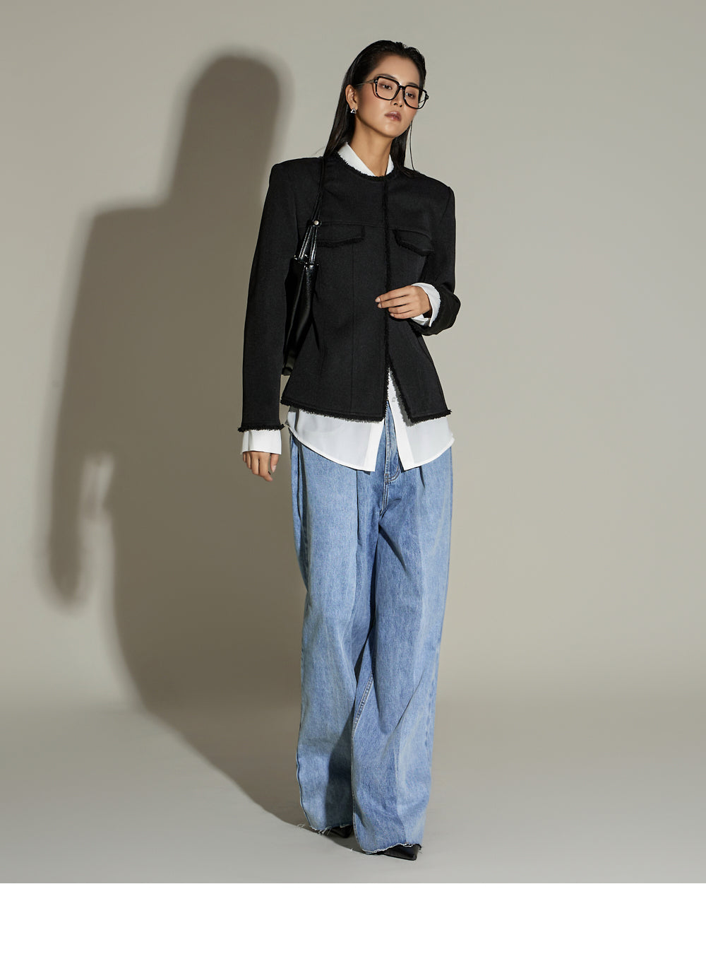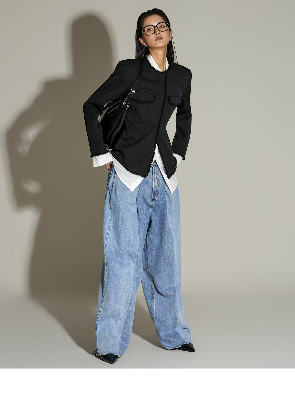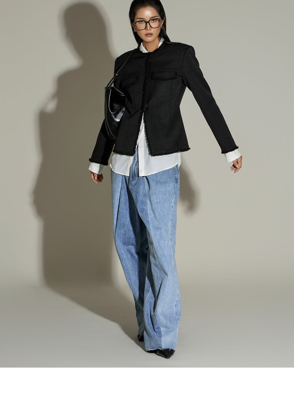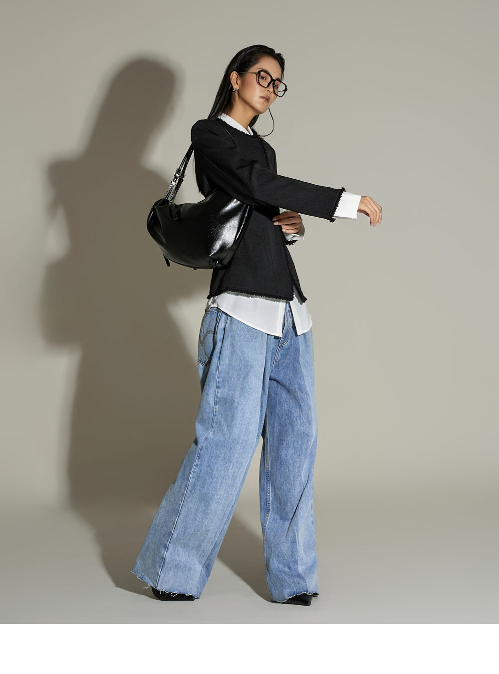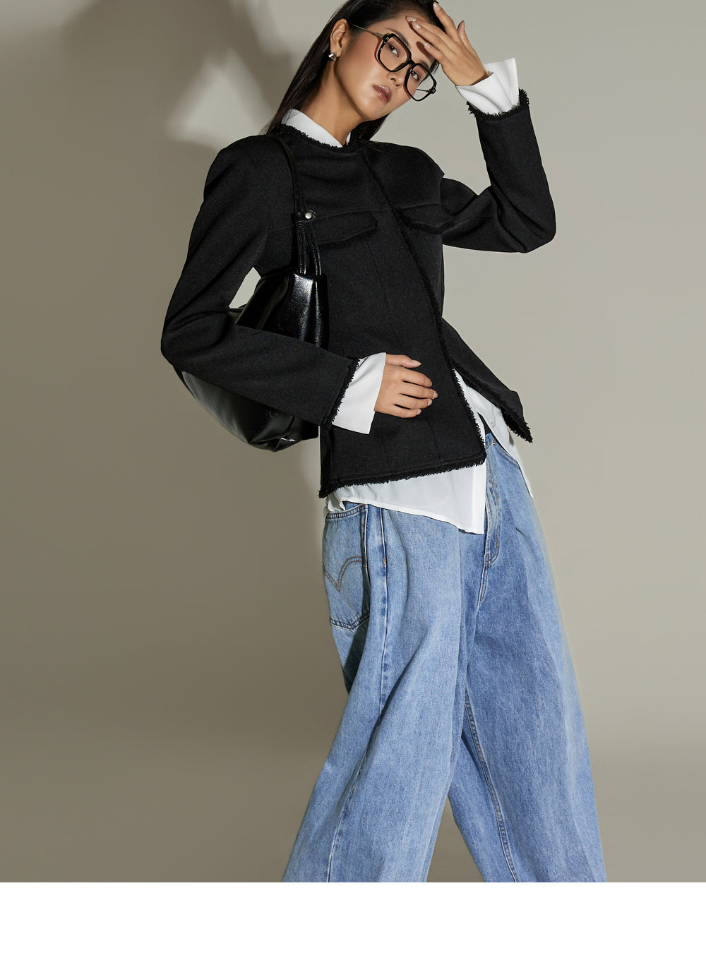 • Denim (jeans, coated jeans) and other dark-dyed garments may experience color fading or transfer. Please take extra care before the first wash and while wearing them.