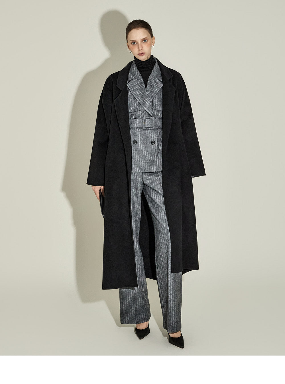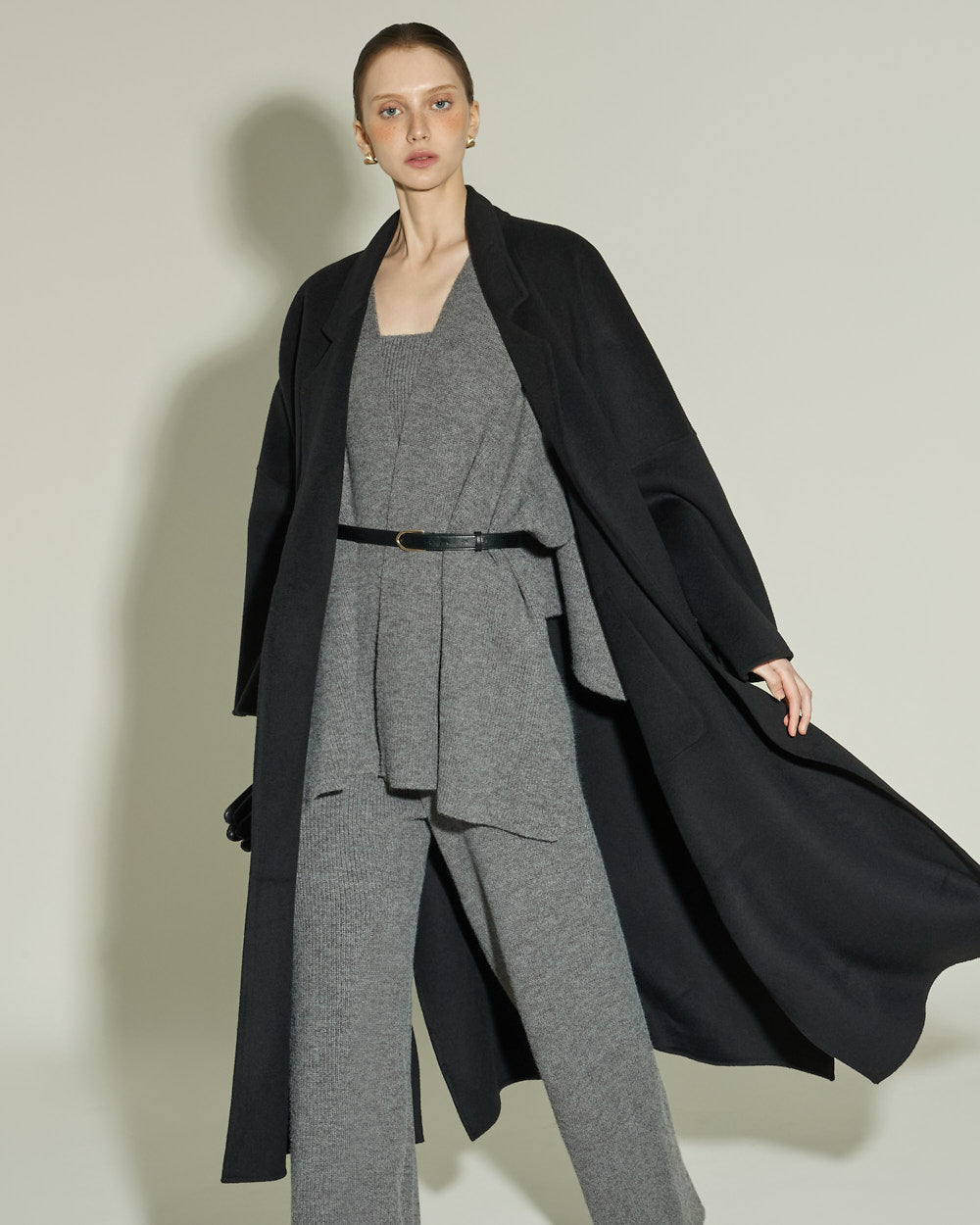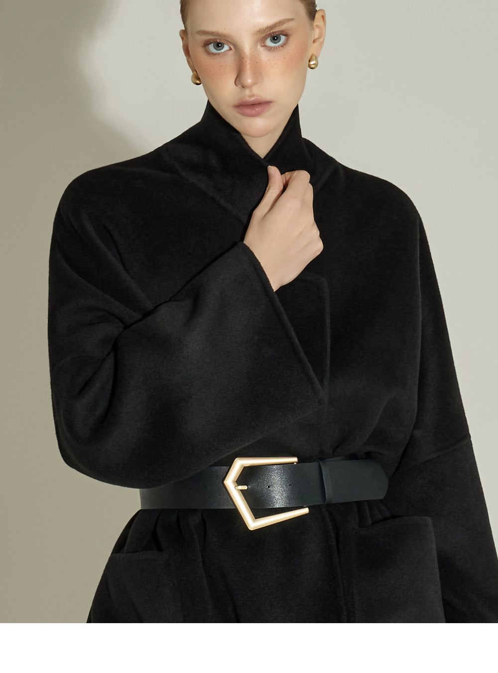 The double-sided slits and strap detailing allow for natural waistline adjustment,