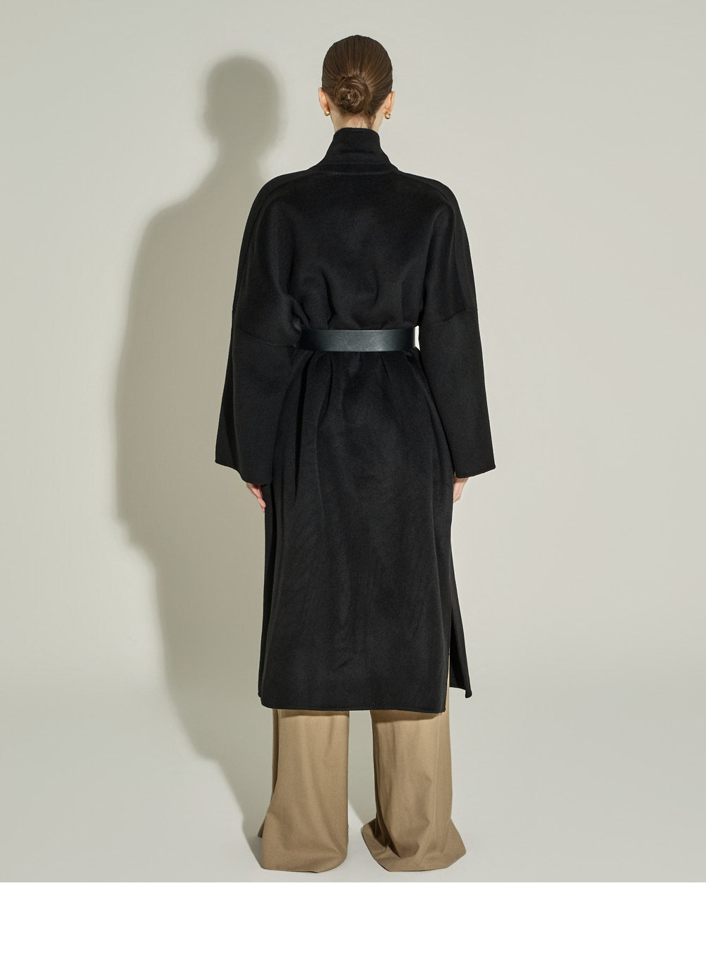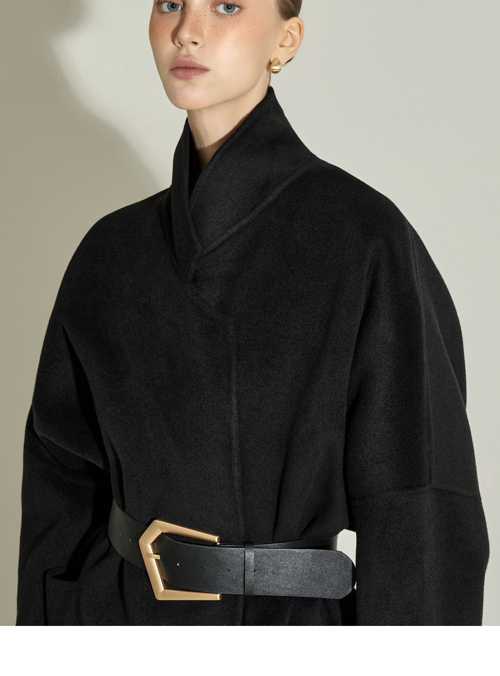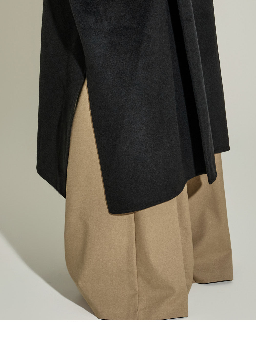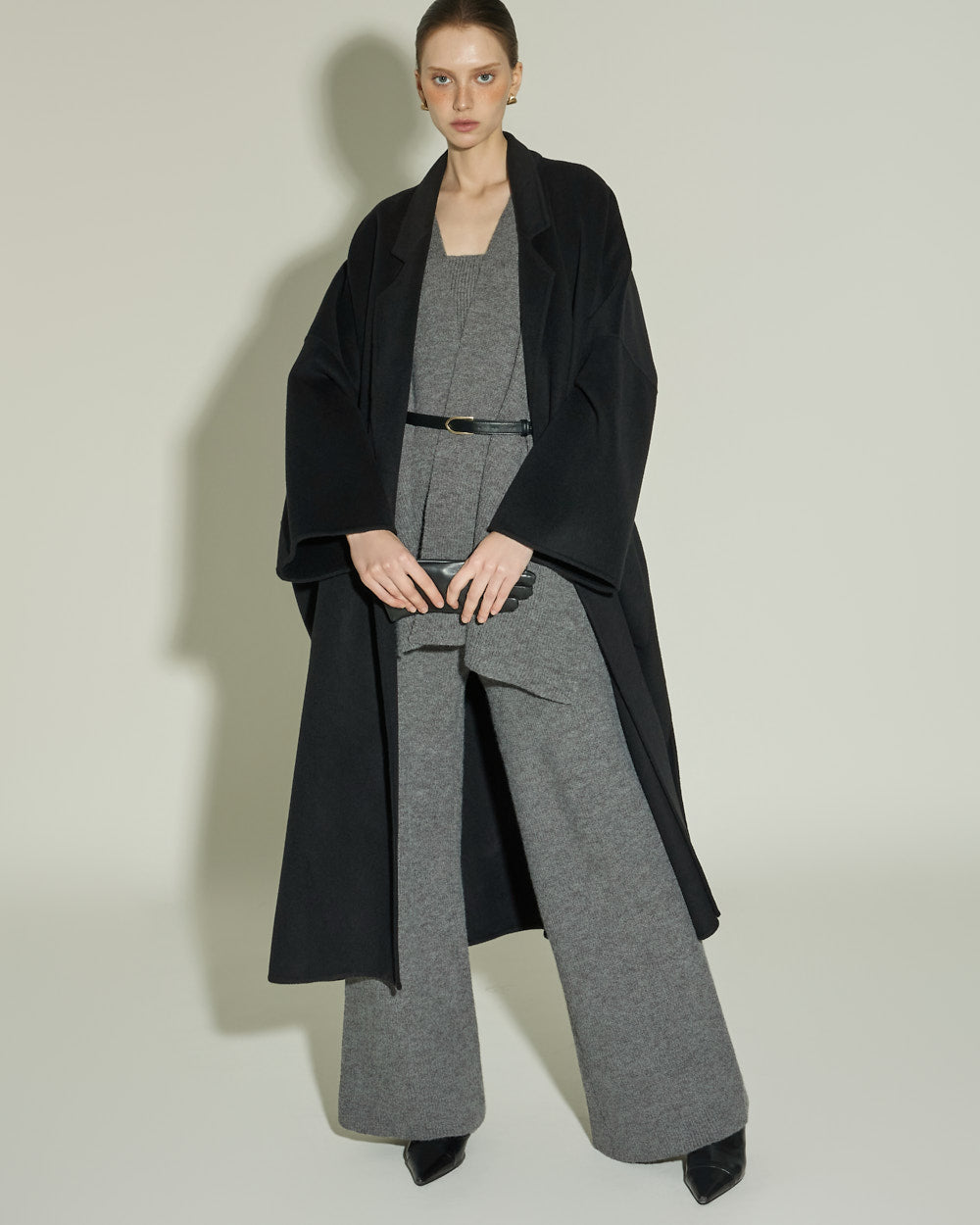 The double-sided slits and strap detailing allow for natural waistline adjustment,