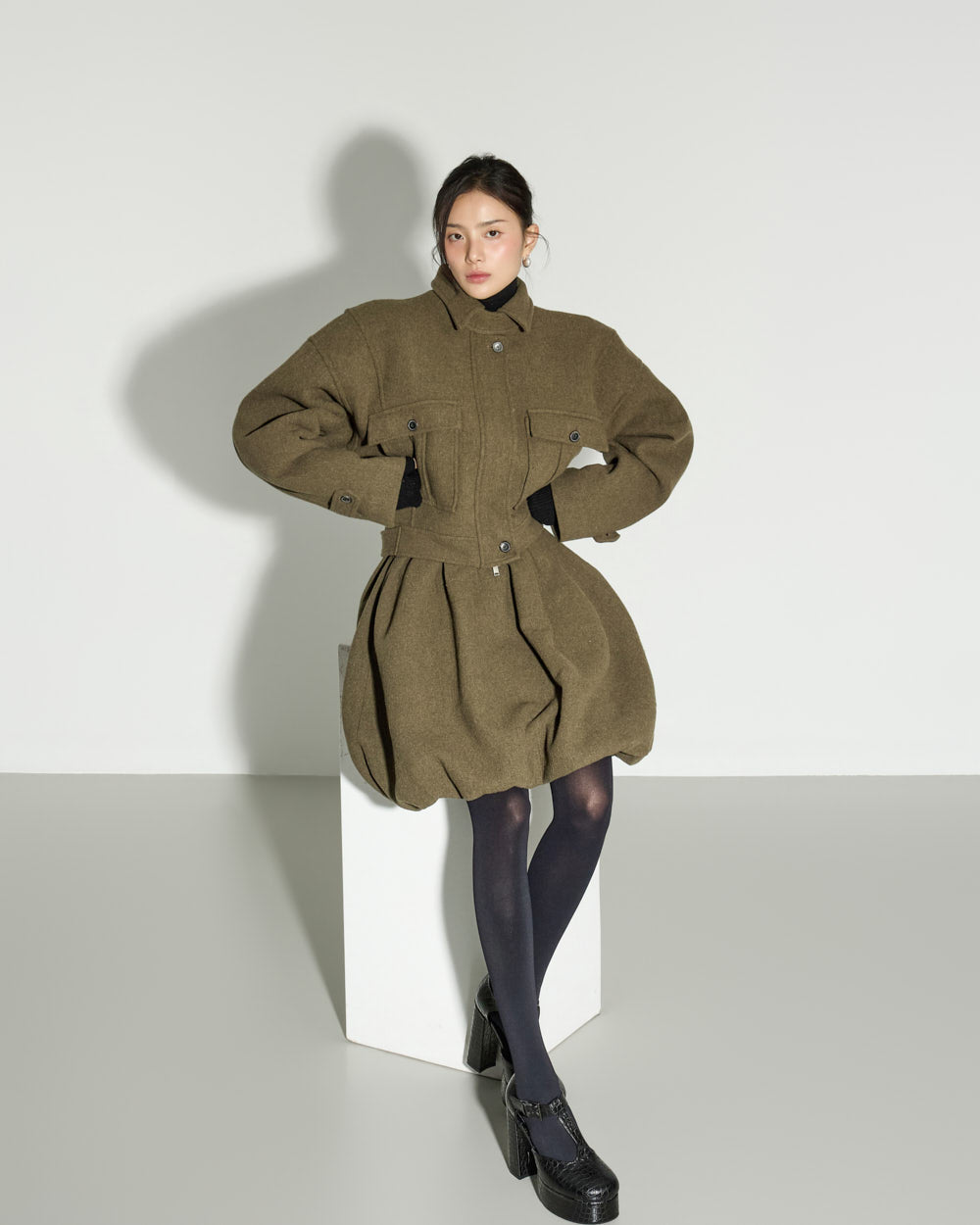 This pocket wool blouson jumper exudes a modern, lovely vibe.