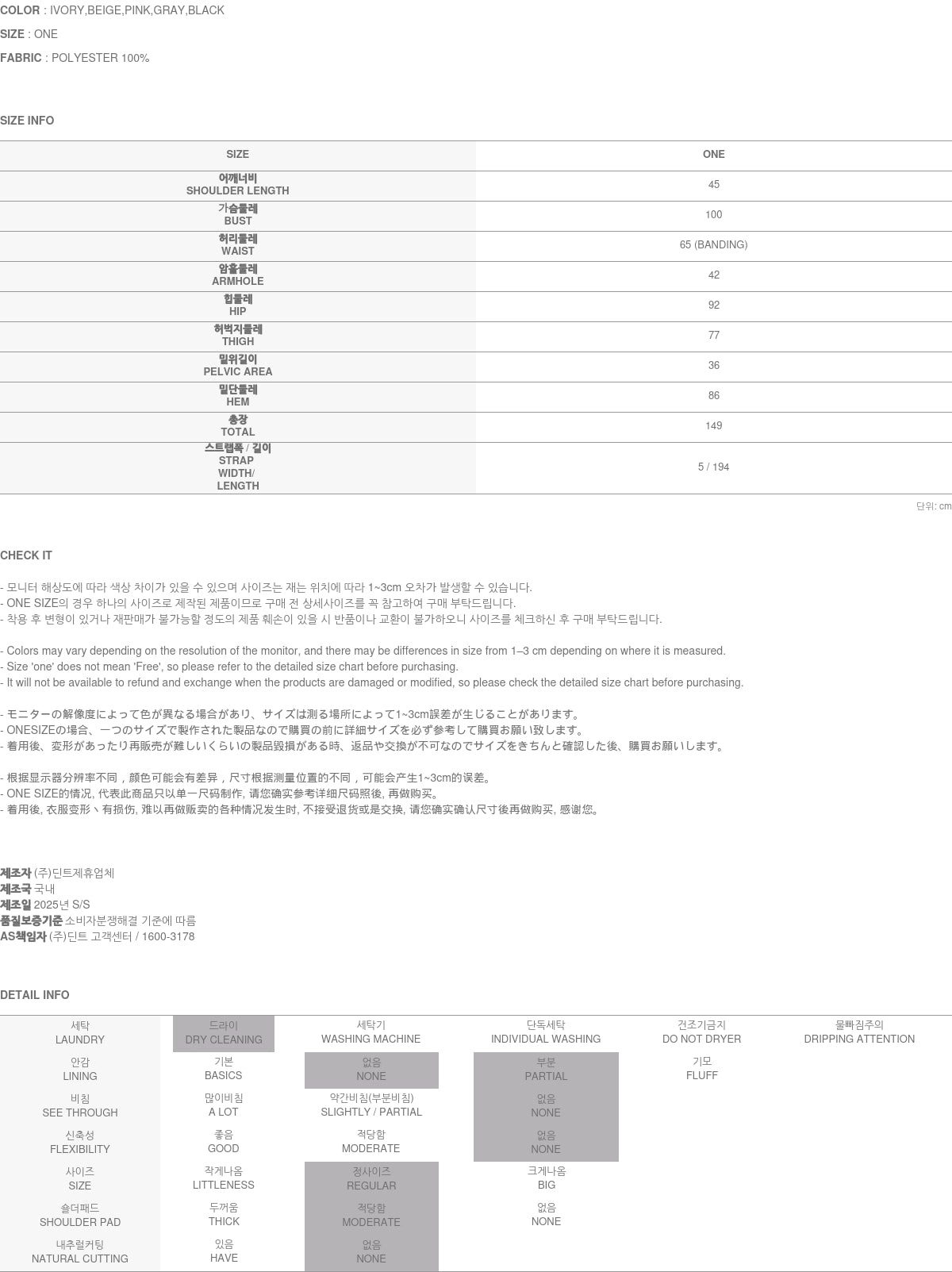 Clothing from DINT Co., Ltd. may become damaged or deformed if machine washed or tumble dried. We strongly recommend following the care instructions provided below.