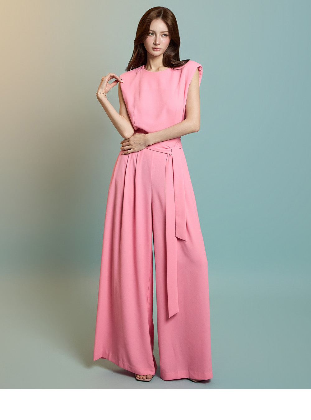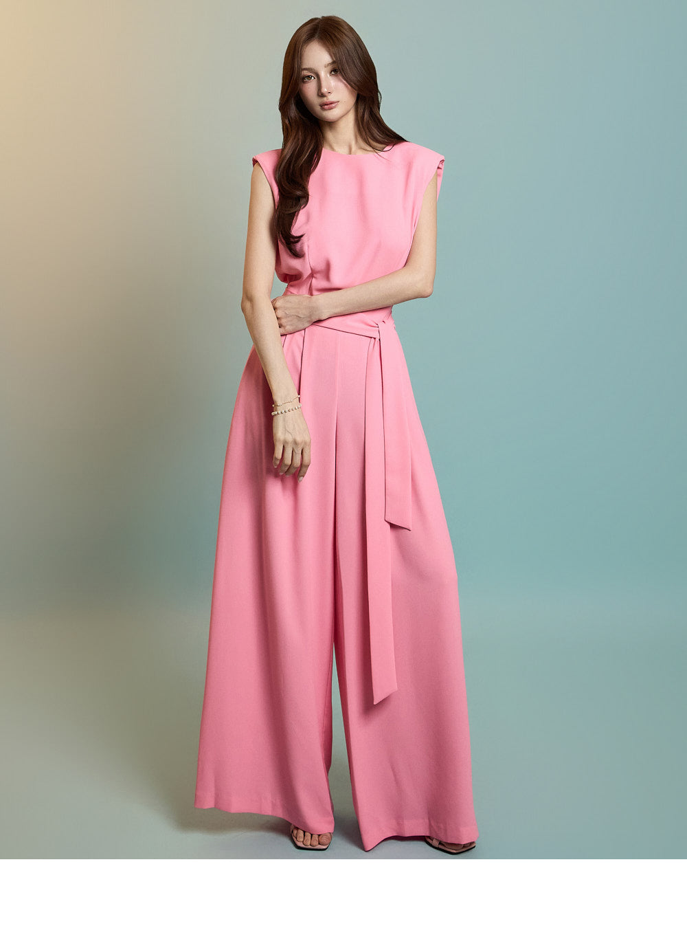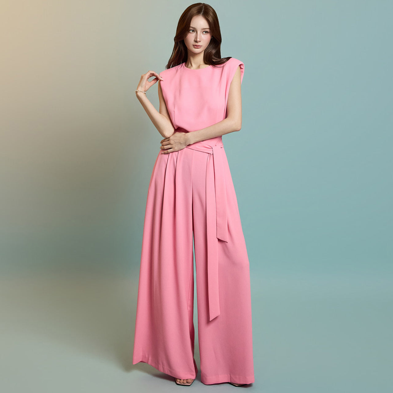 while the pintuck wide-leg pants provide great coverage and a stylish look.