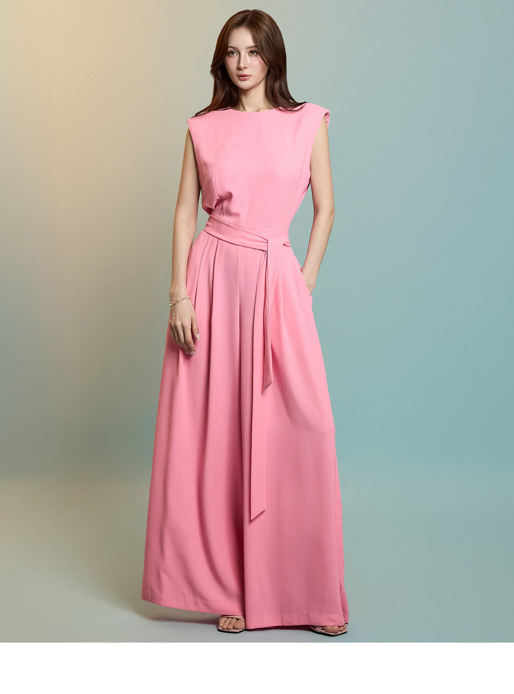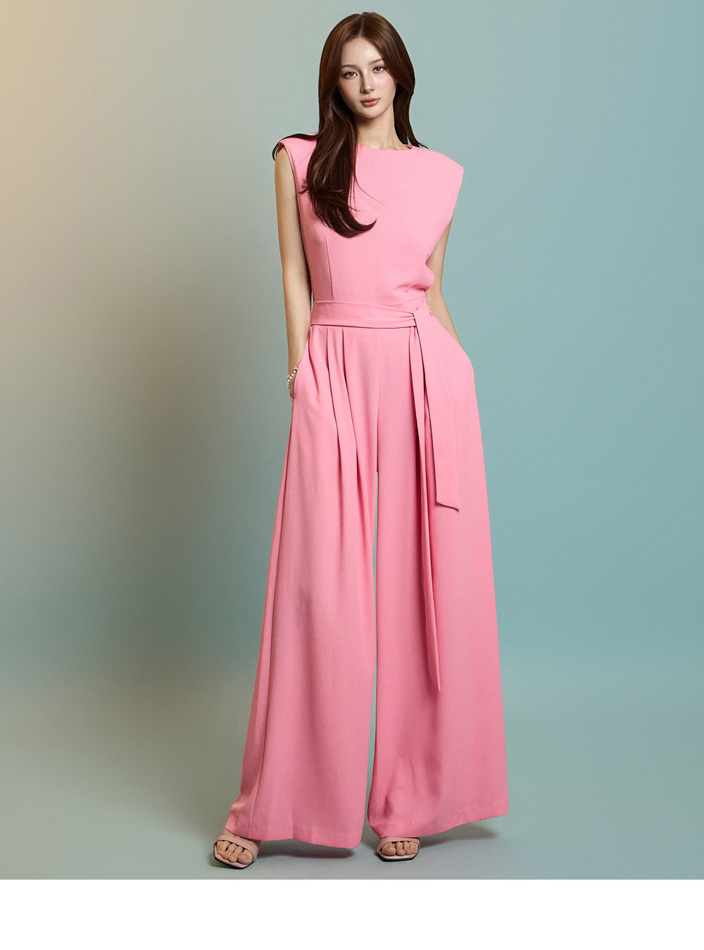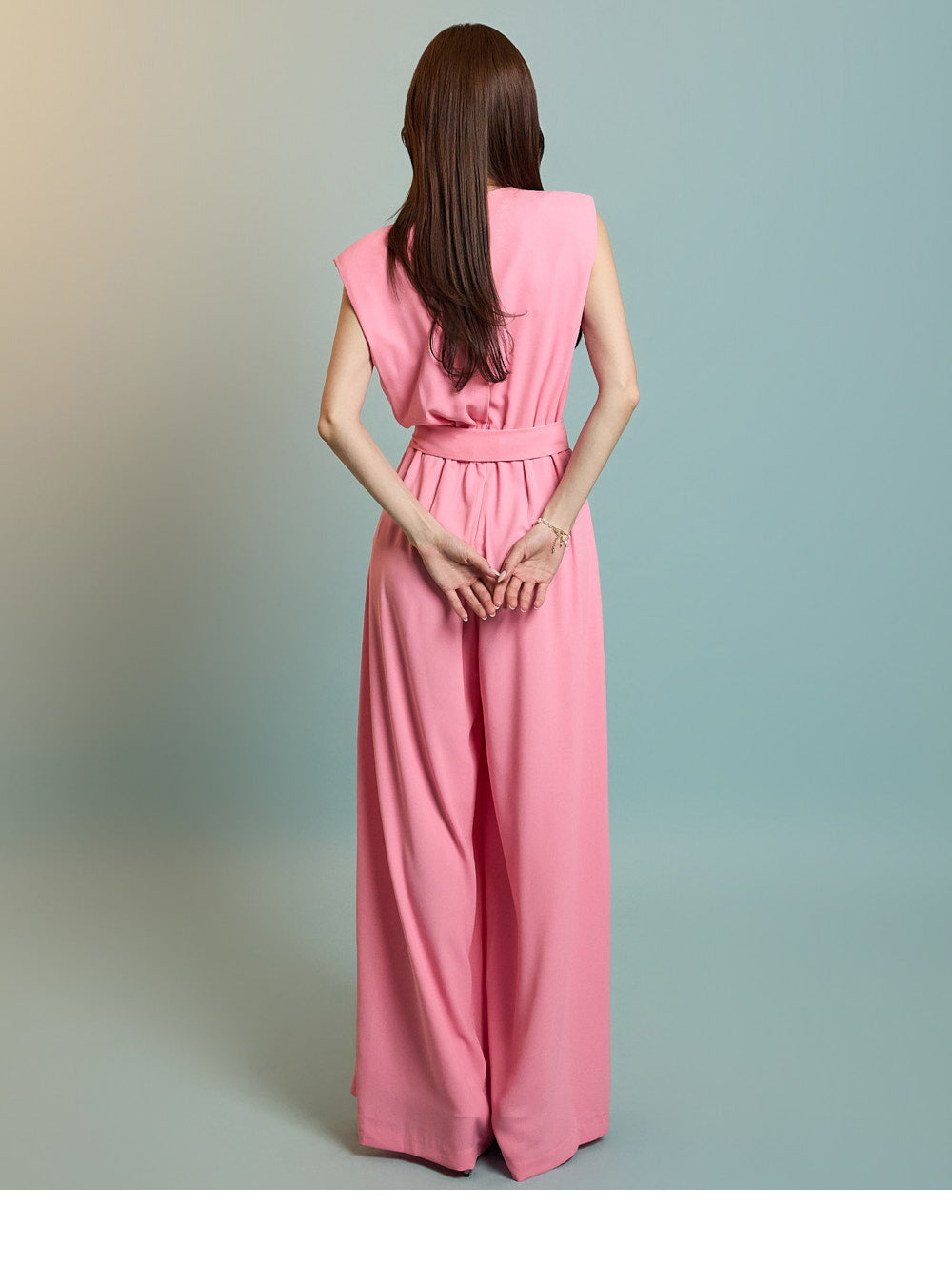 while the pintuck wide-leg pants provide great coverage and a stylish look.
