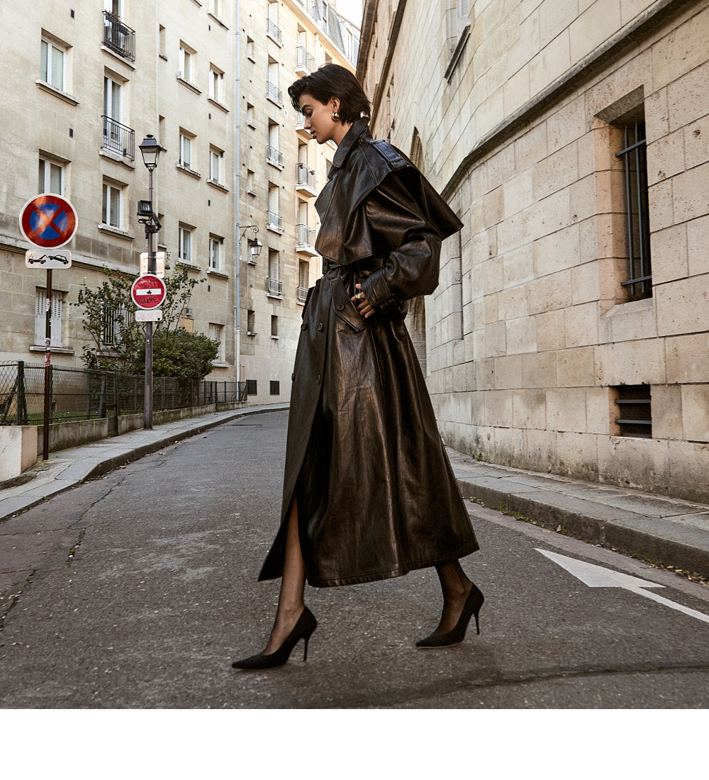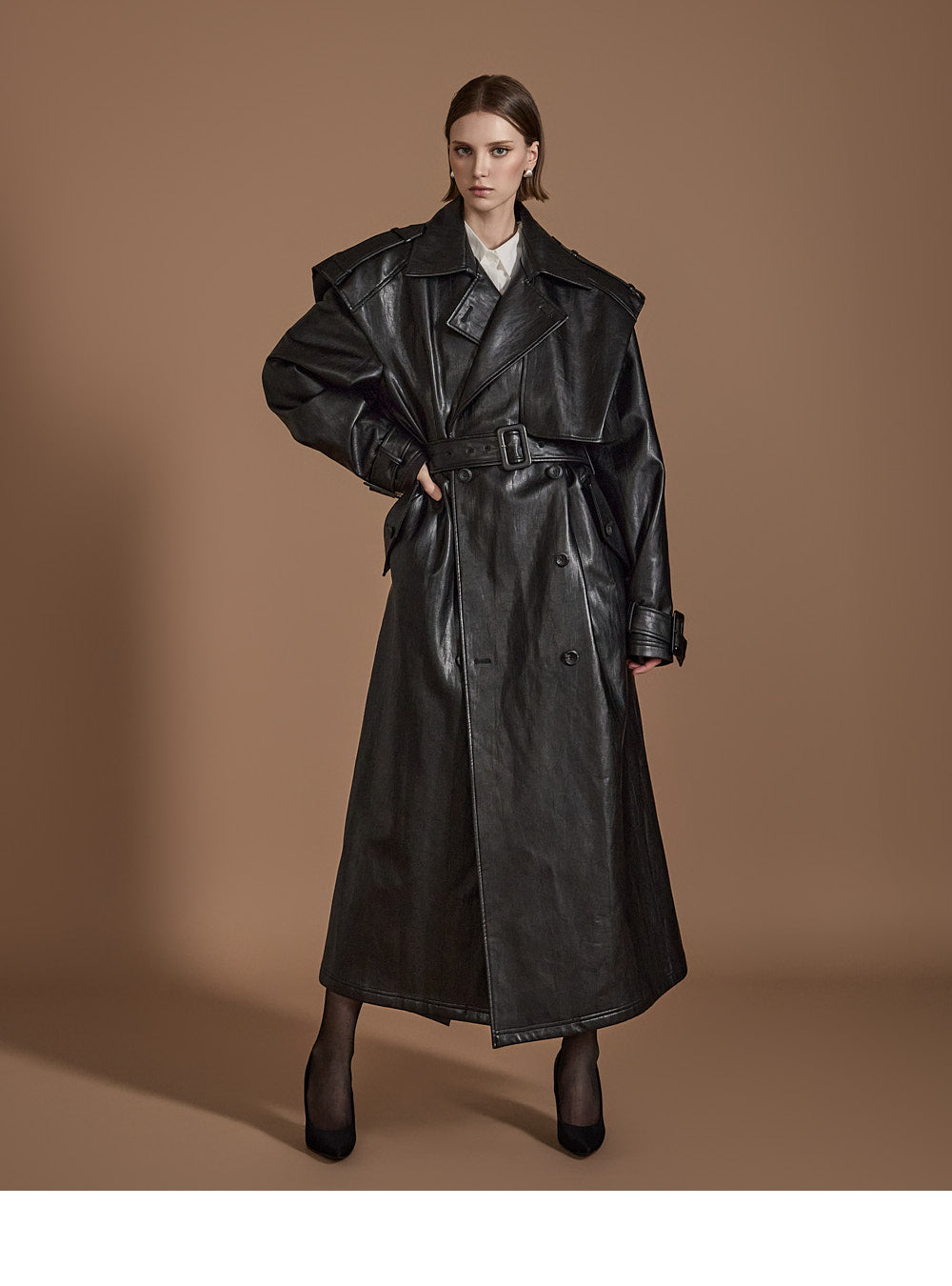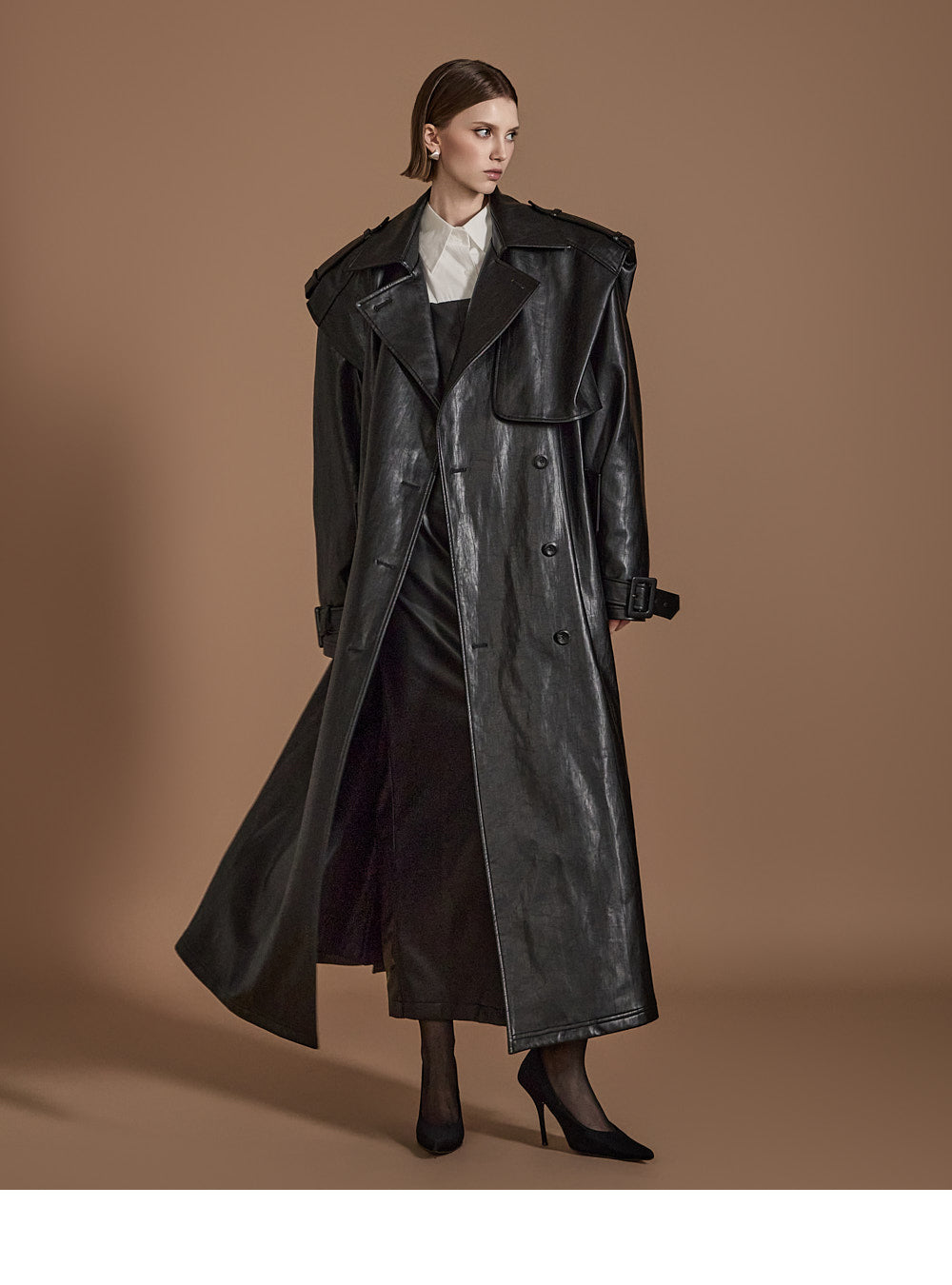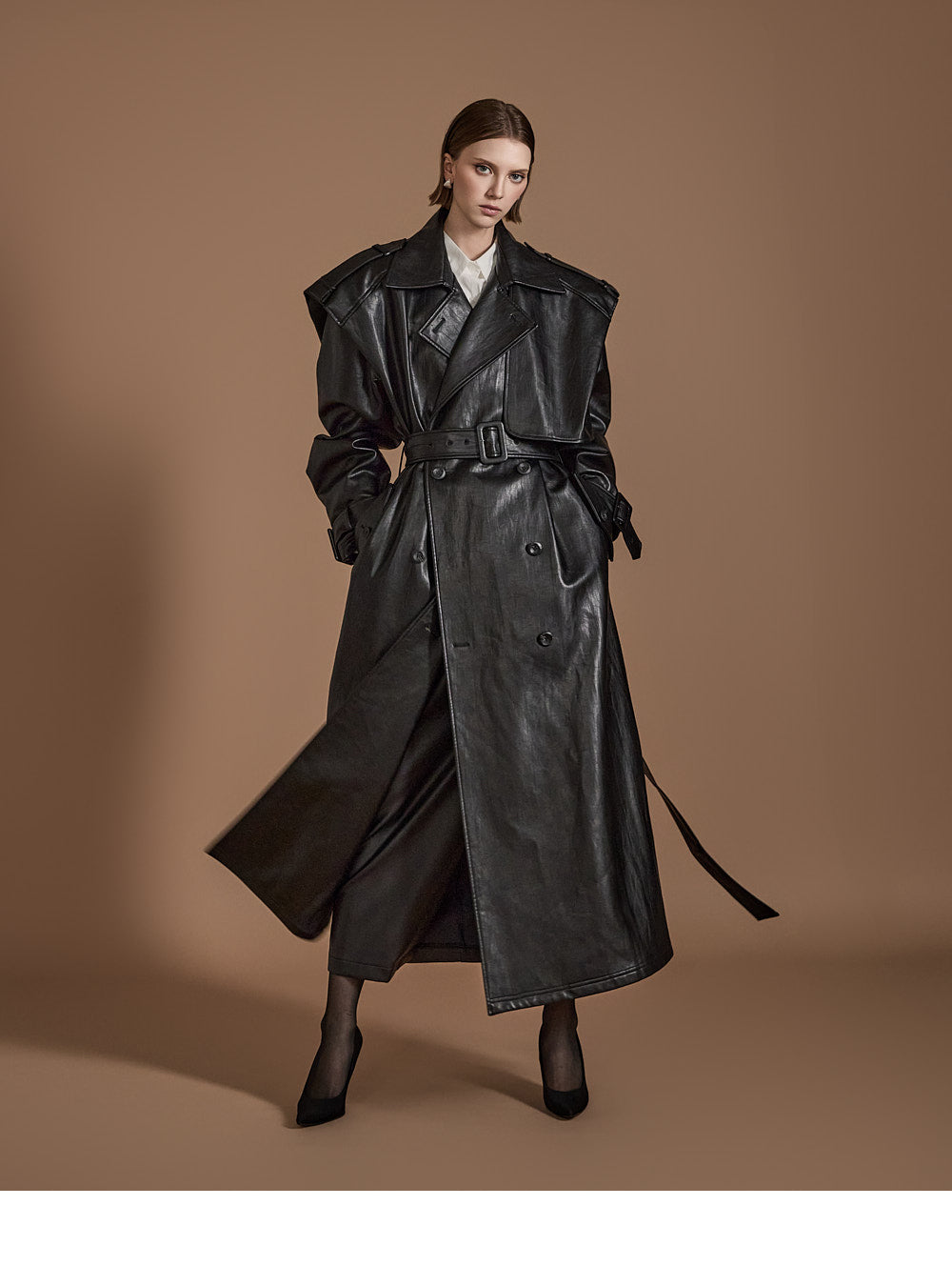 With its long trench coat design,
