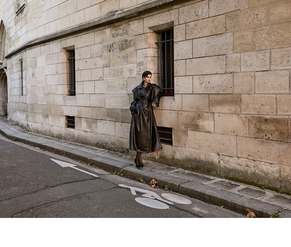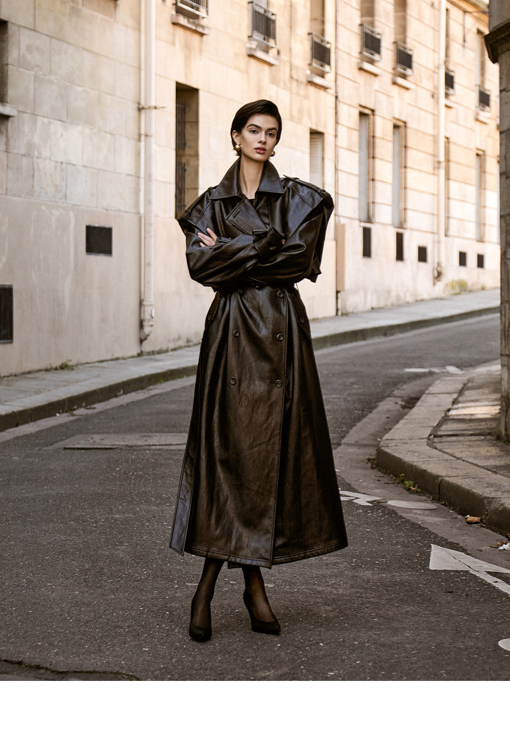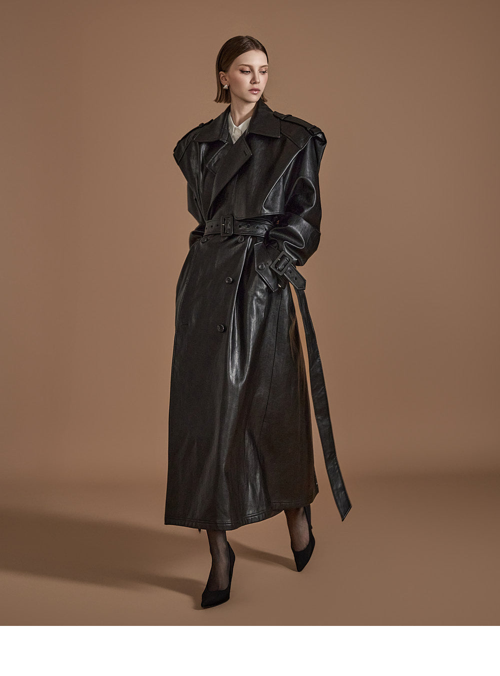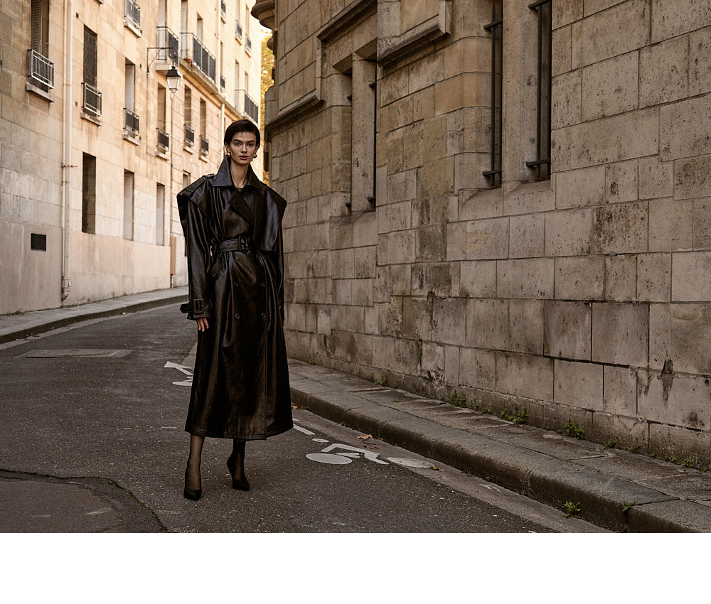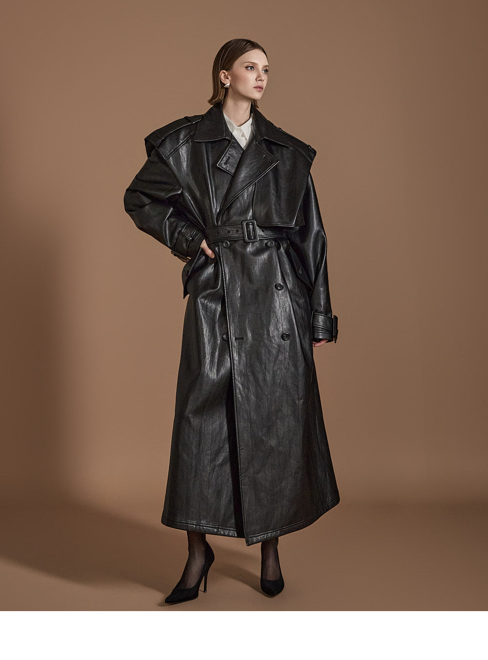 With its long trench coat design,