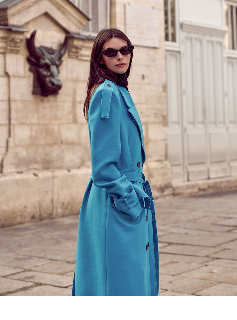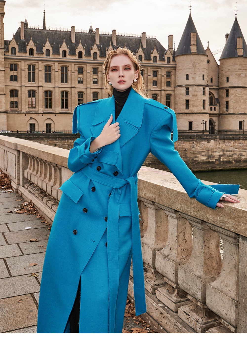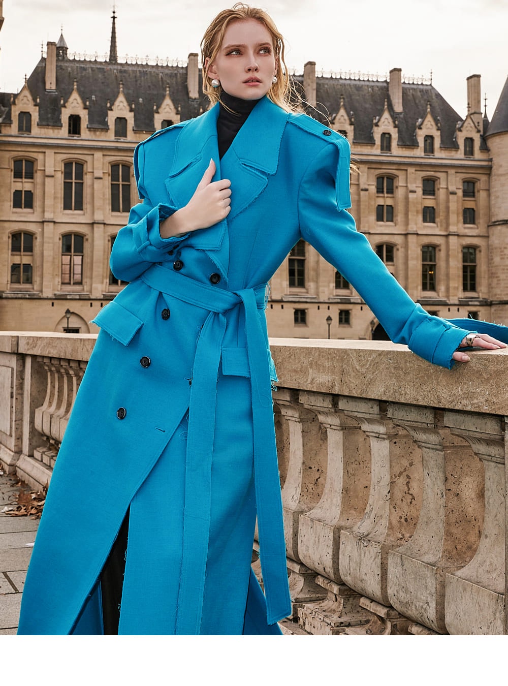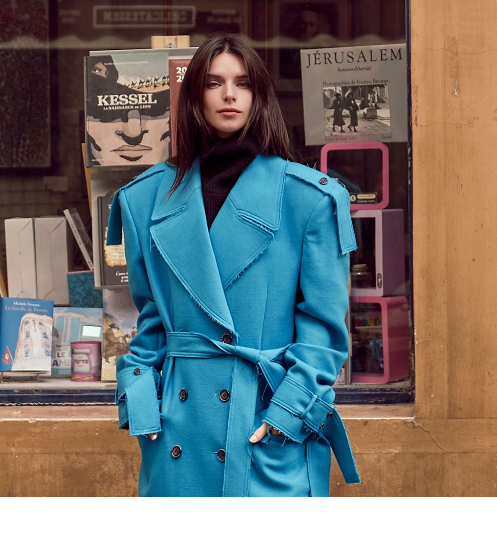 With trench coat-inspired elements throughout, this stylish piece