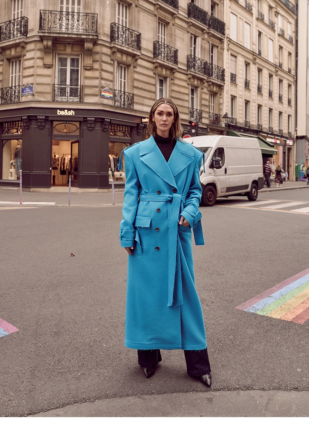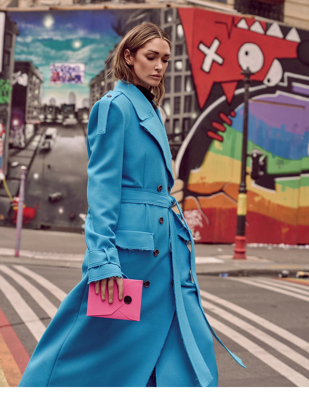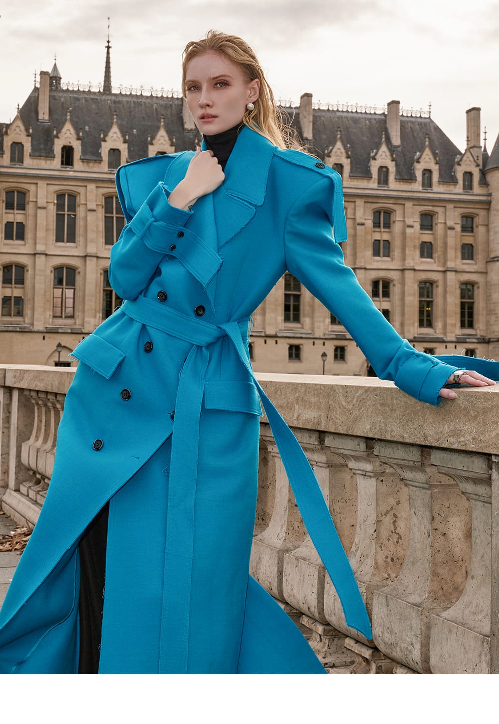 With trench coat-inspired elements throughout, this stylish piece