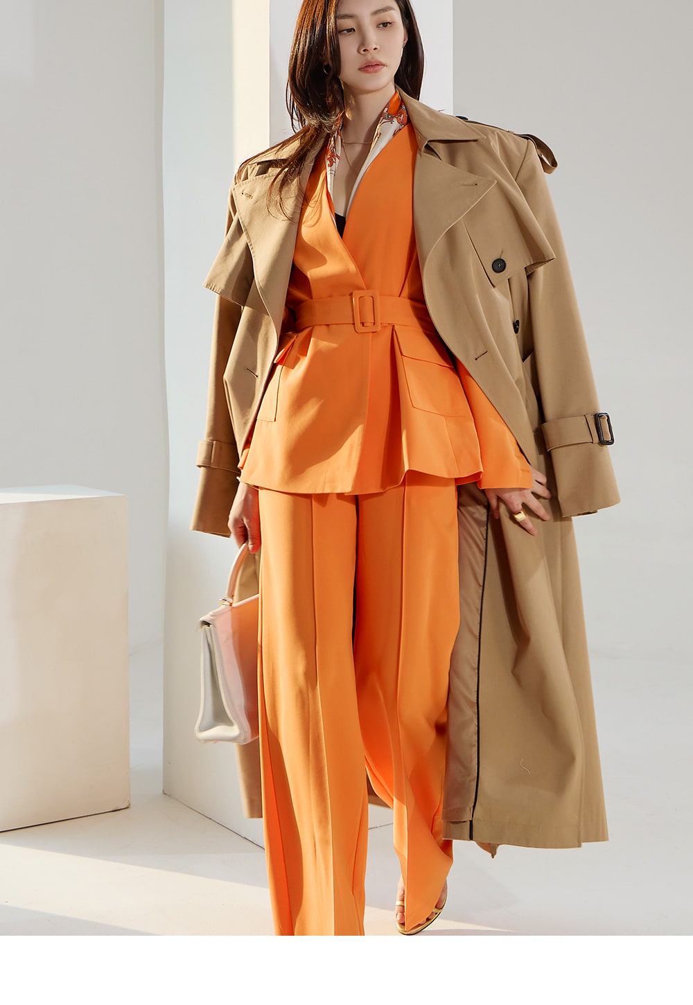 and a semi-wide fit with front pintuck detail to accentuate the silhouette,