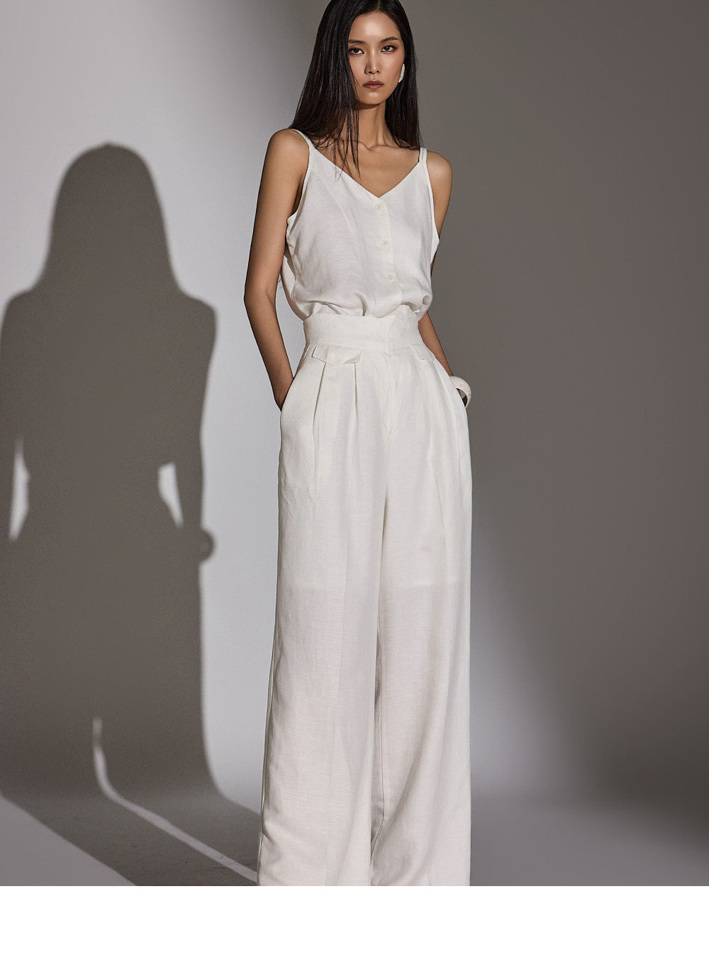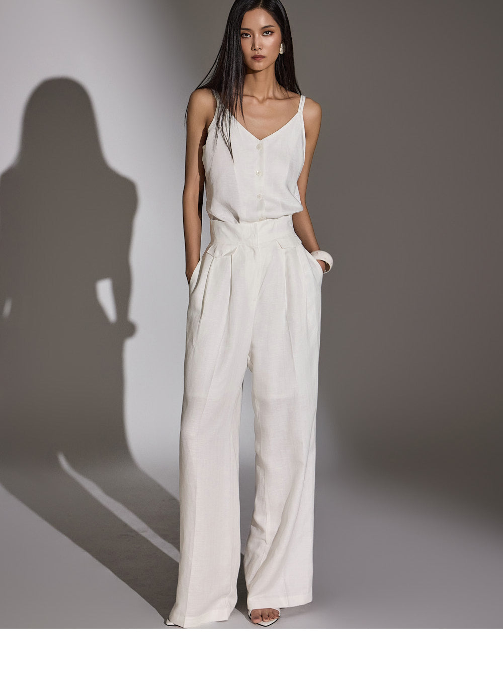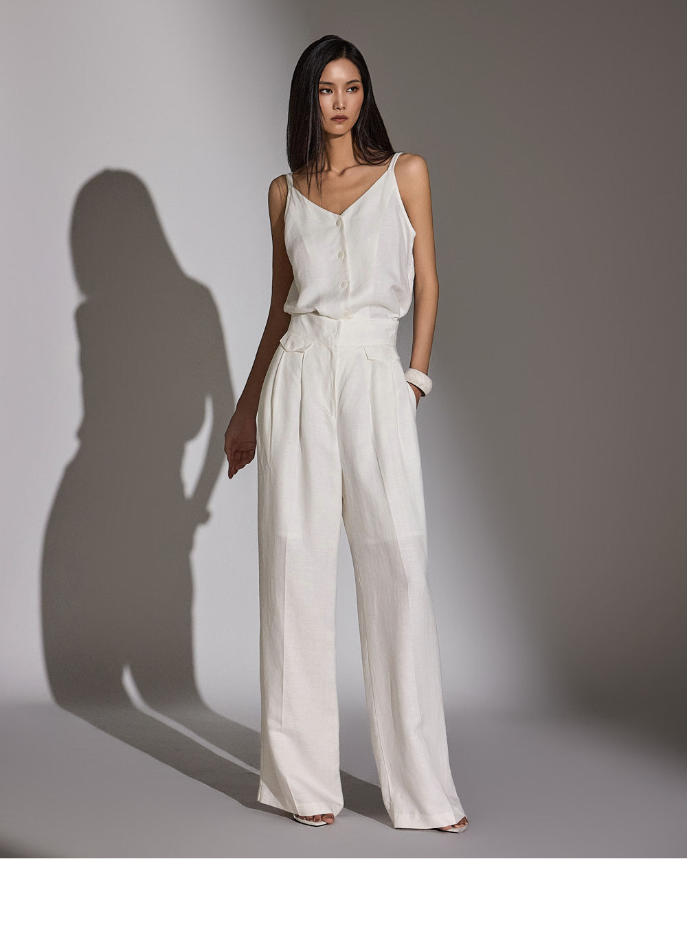 a high-waist design to elongate the leg line.