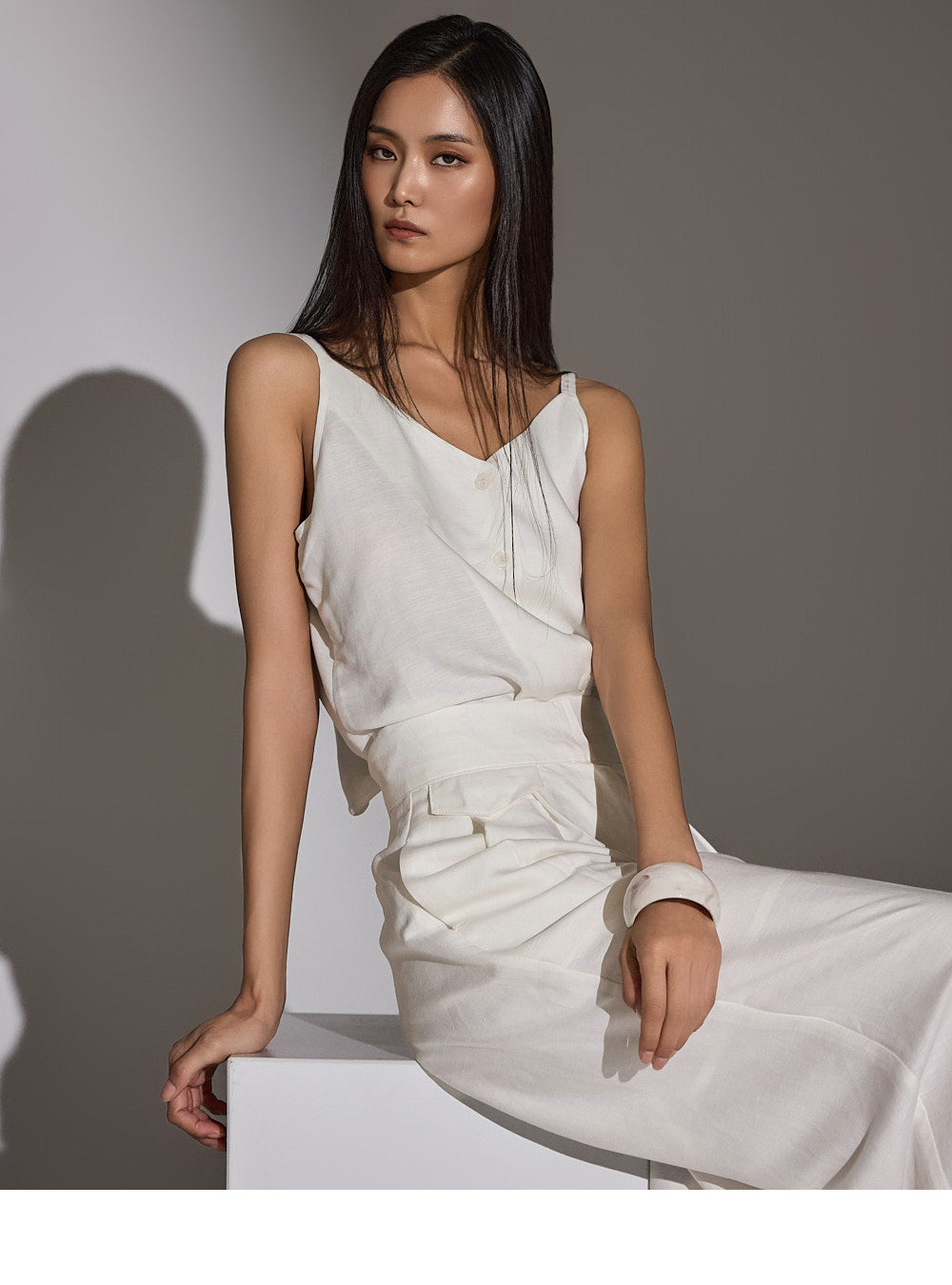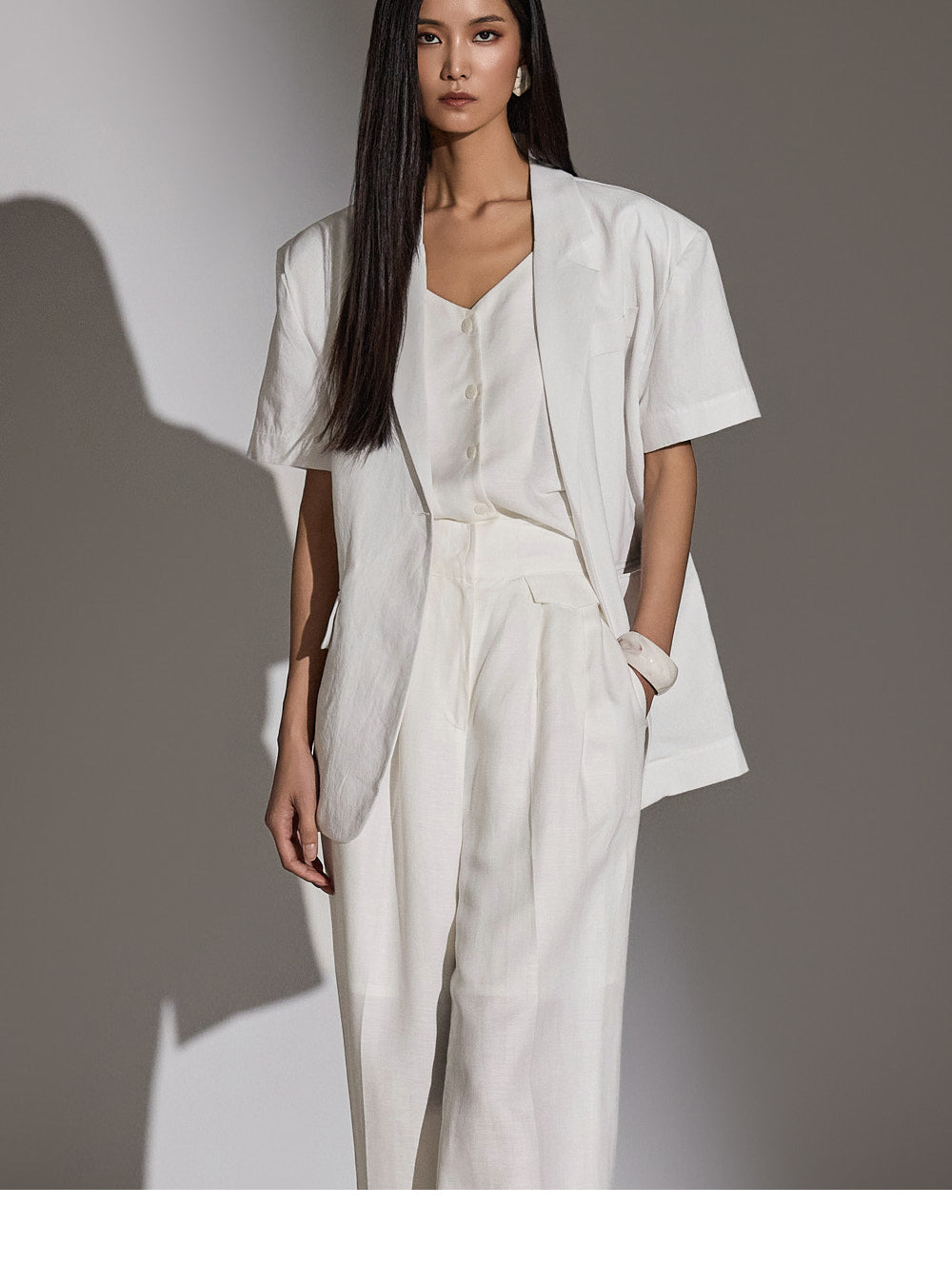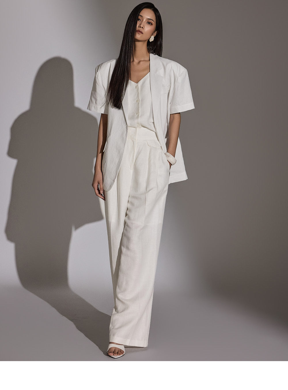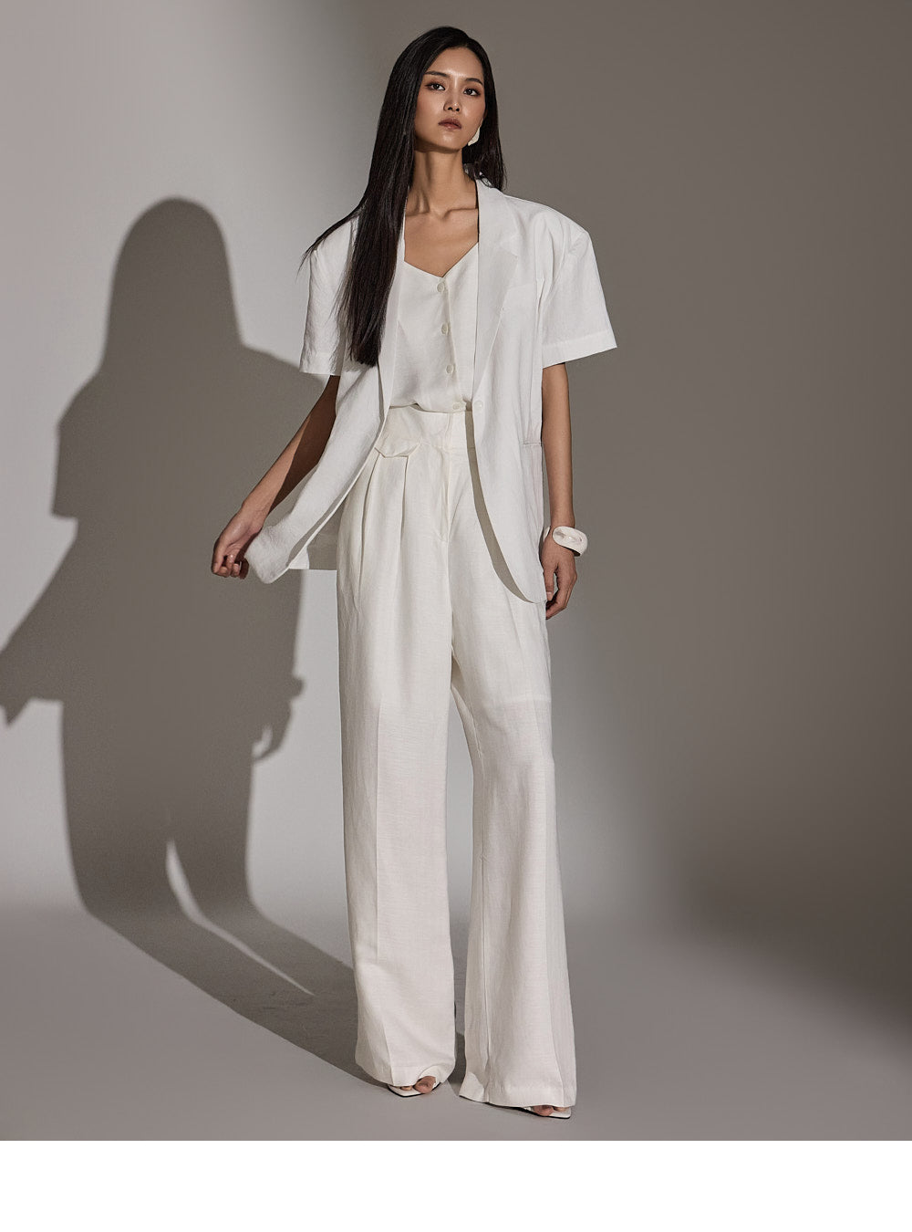 a high-waist design to elongate the leg line.