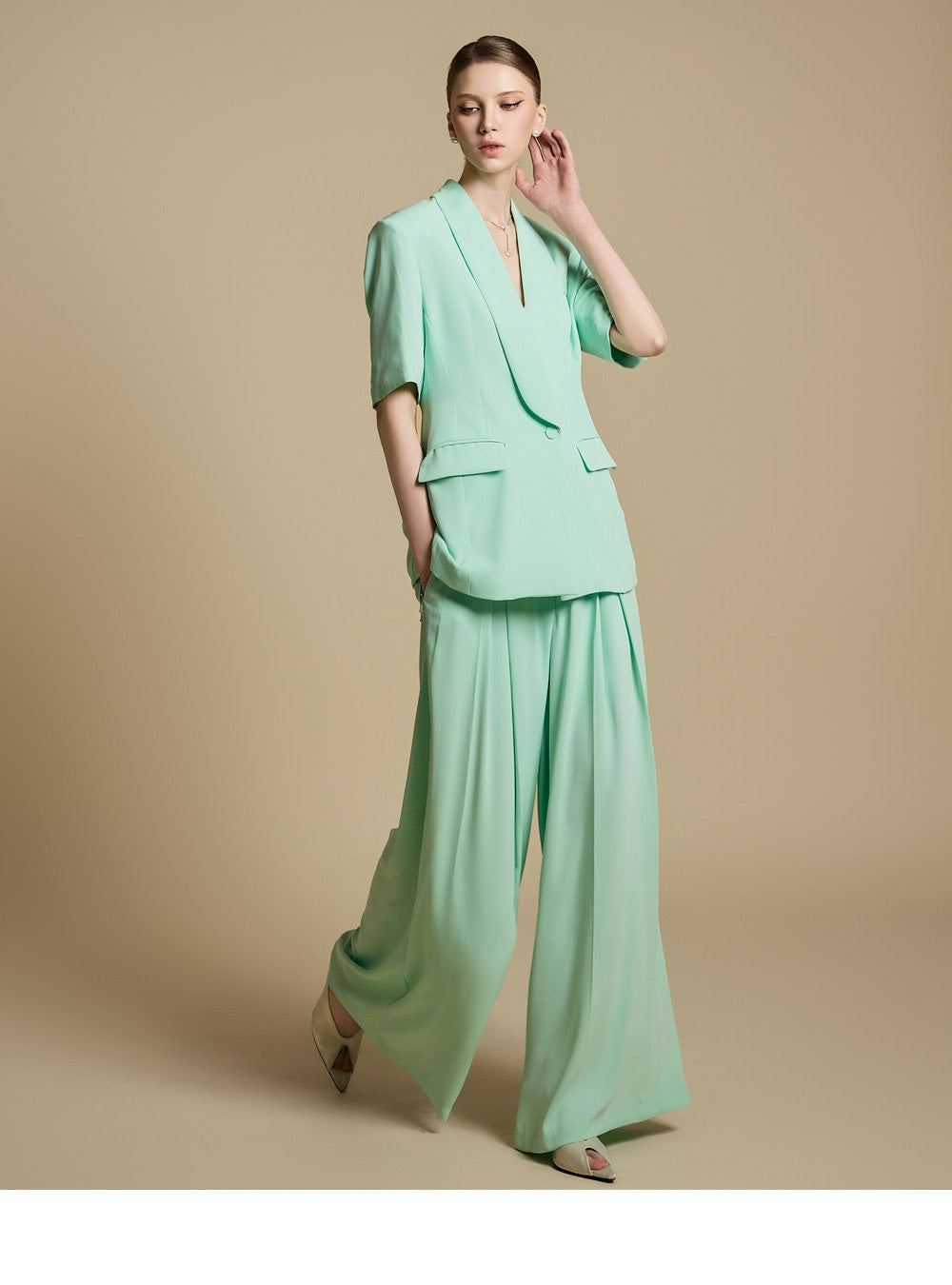 The model is 174cm tall and wearing ONE size in MINT.