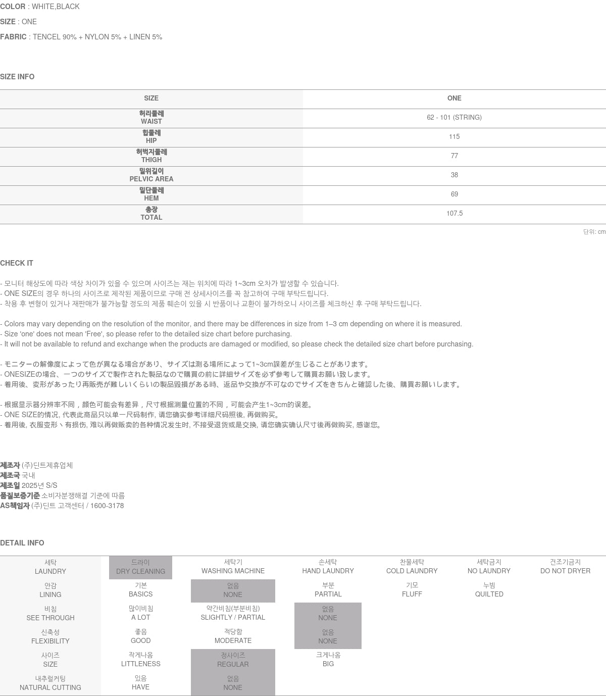 Clothing from DINT Co., Ltd. may become damaged or deformed if machine washed or tumble dried. We strongly recommend following the care instructions provided below.