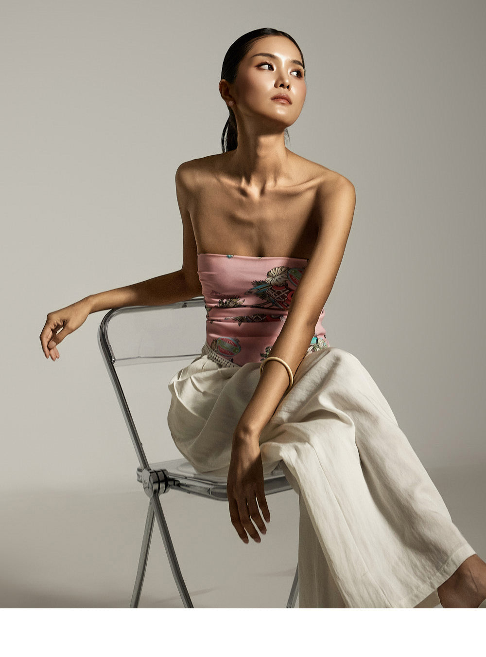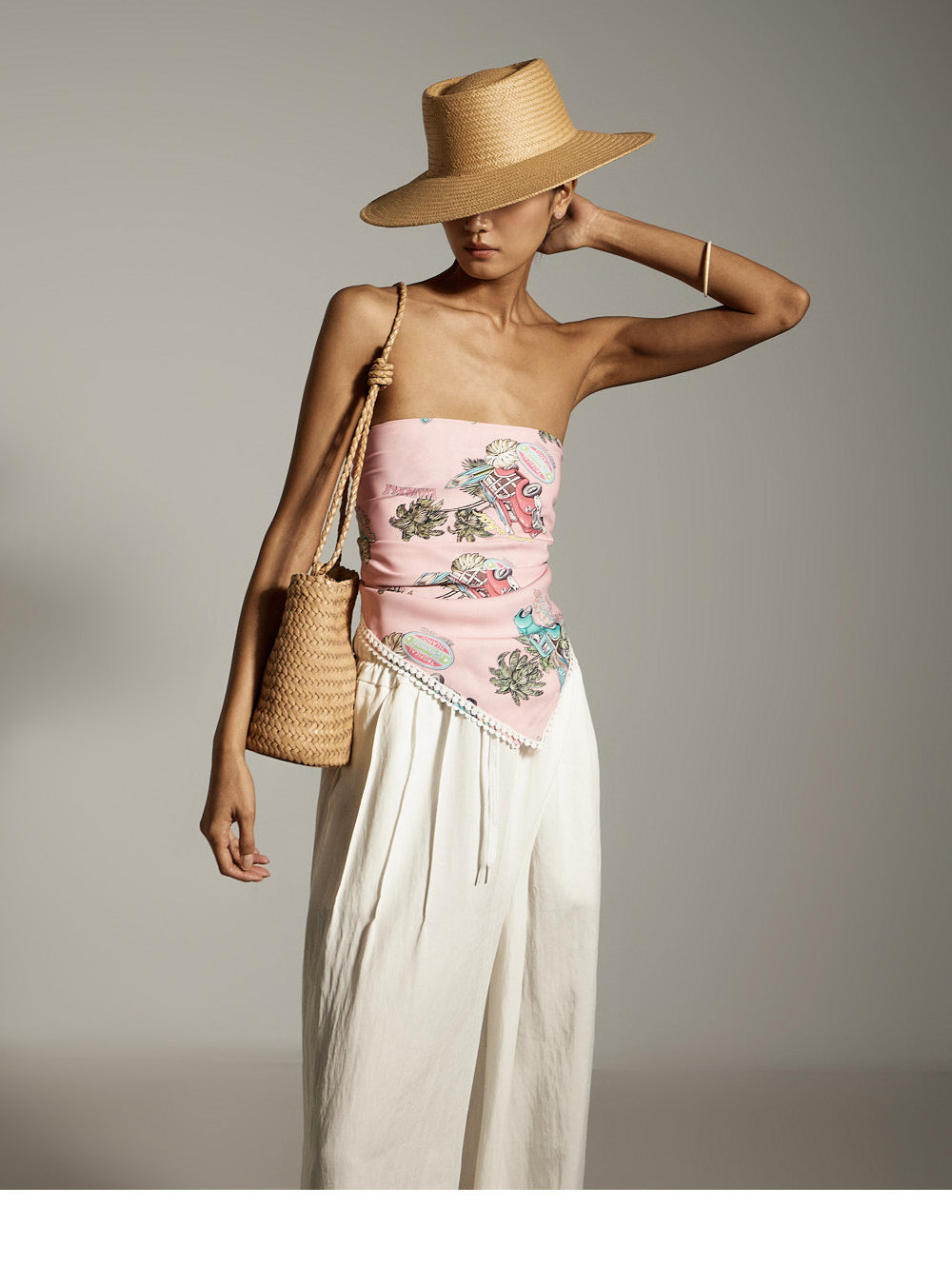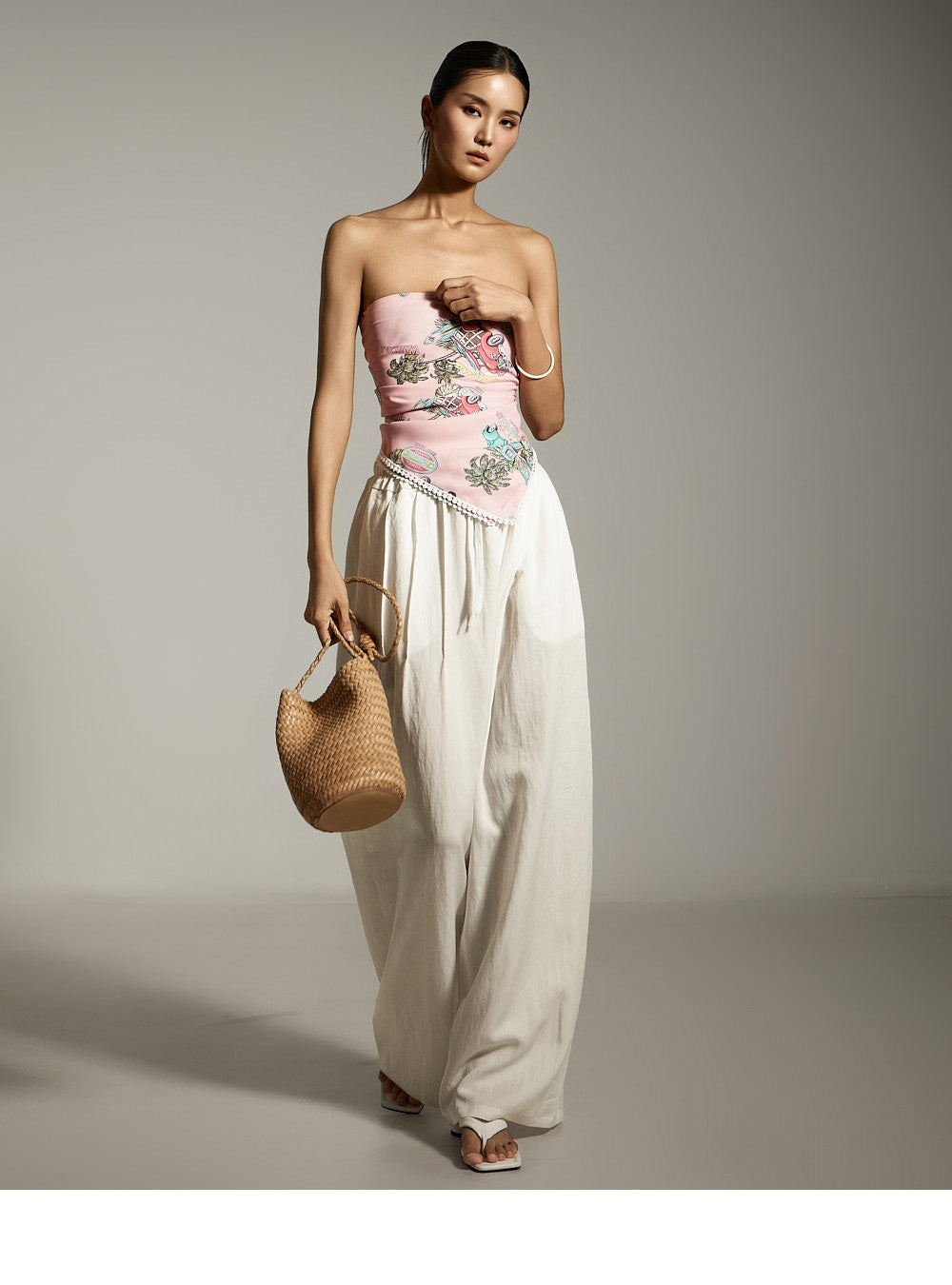 The model is 173cm tall and is wearing ONE SIZE in WHITE.