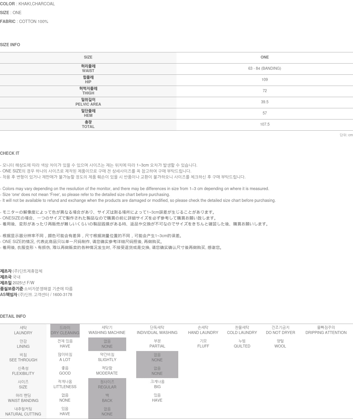Clothing from DINT Co., Ltd. may become damaged or deformed if machine washed or tumble dried. We strongly recommend following the care instructions provided below.