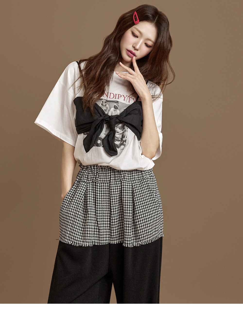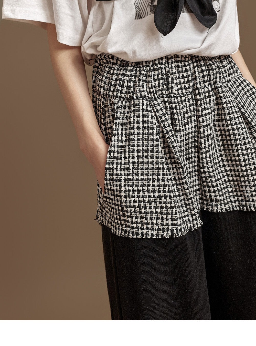 These tweed contrast pants have a unique vibe.