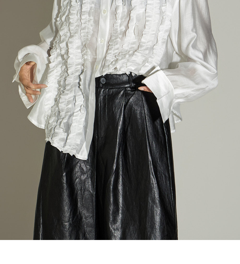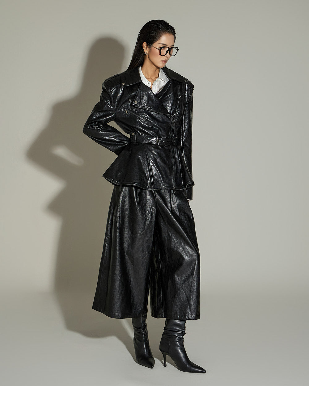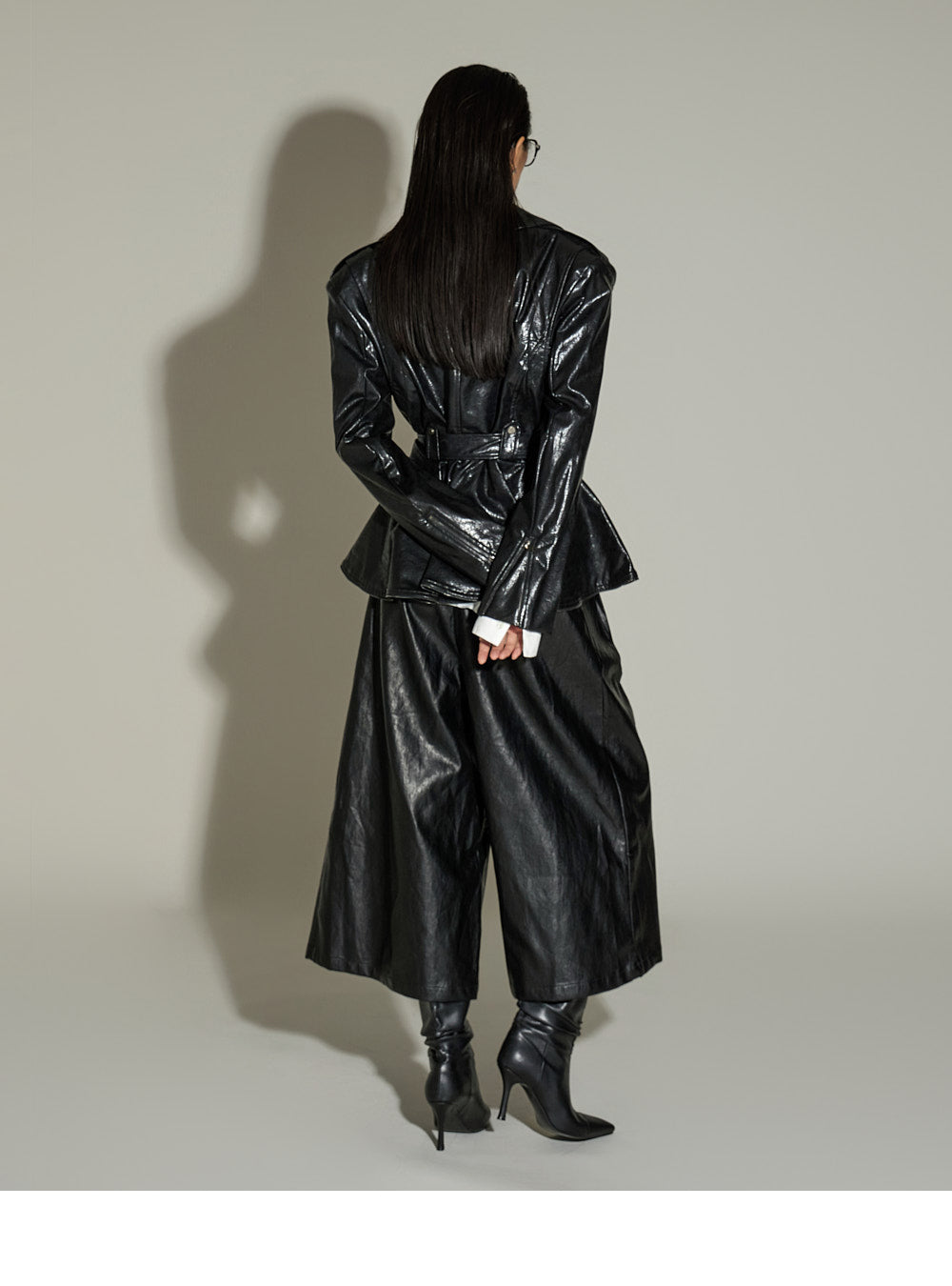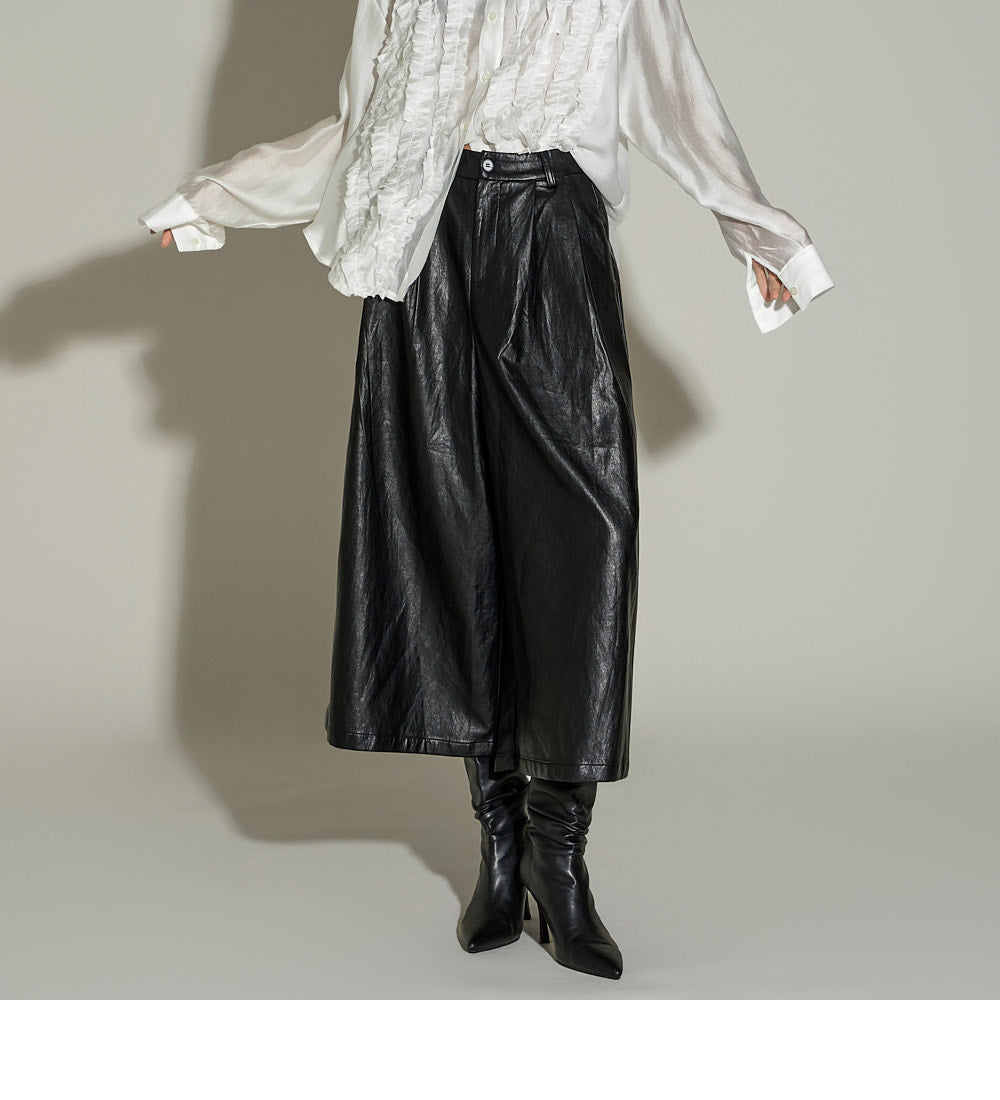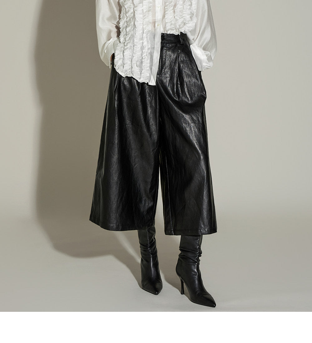 These leather midi pants have a unique style.