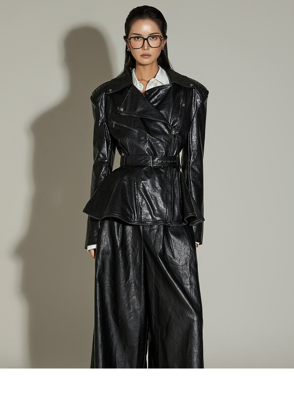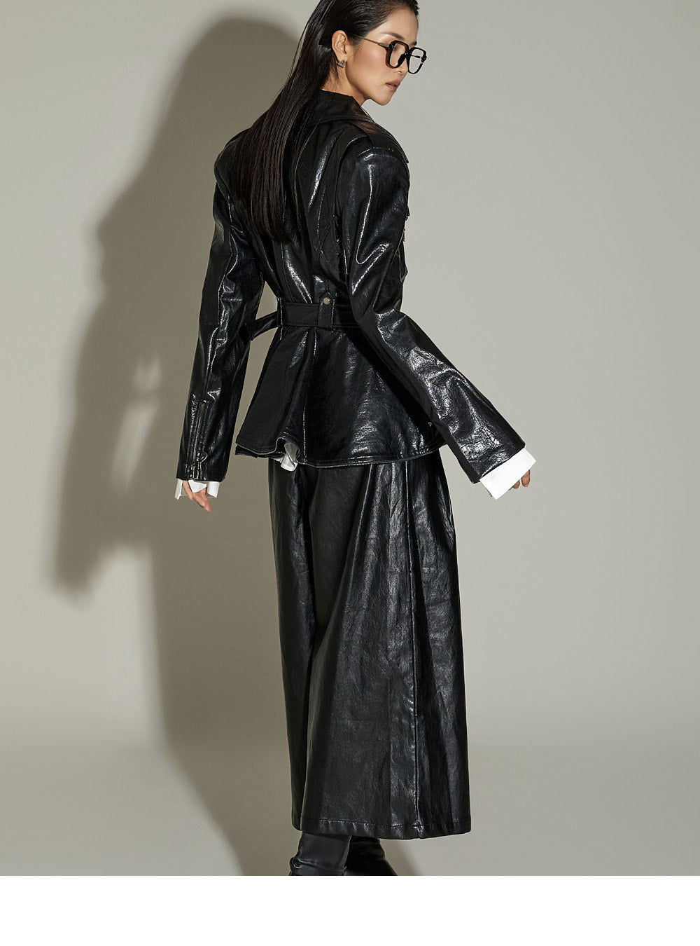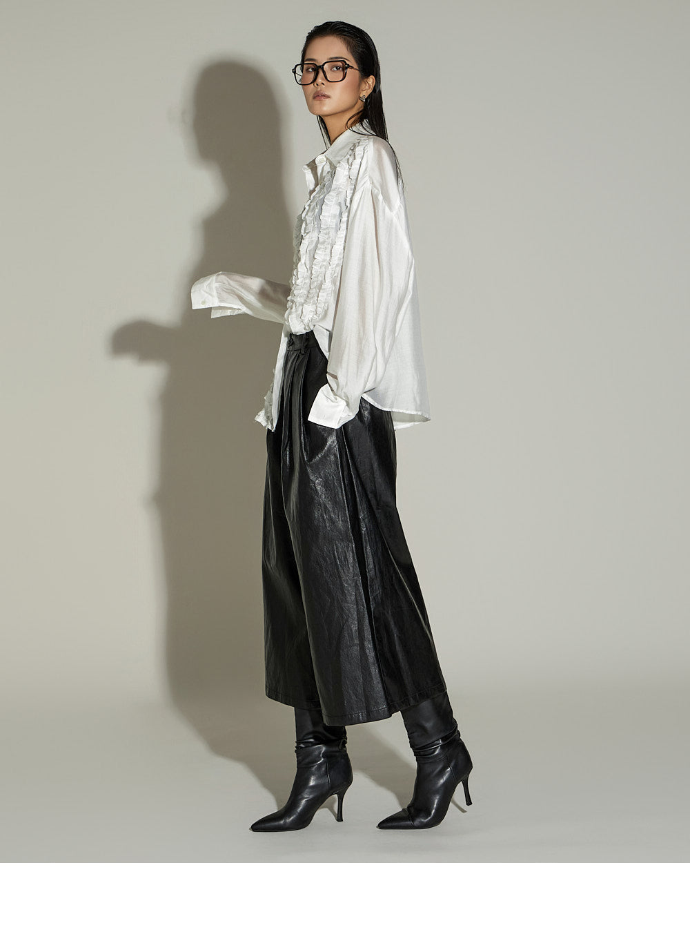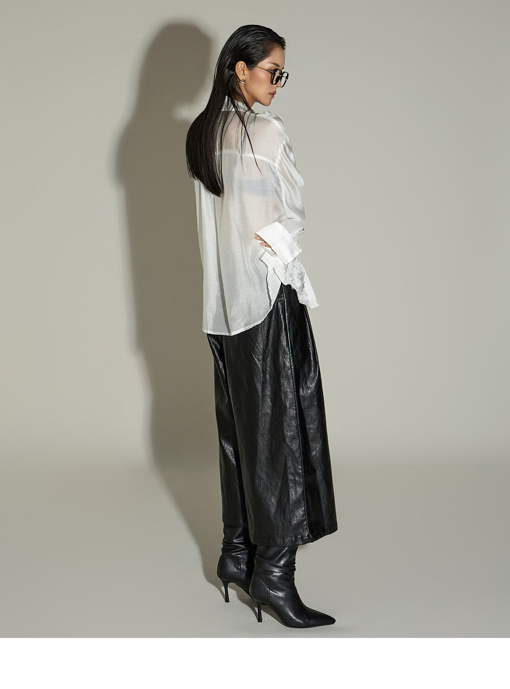 These leather midi pants have a unique style.