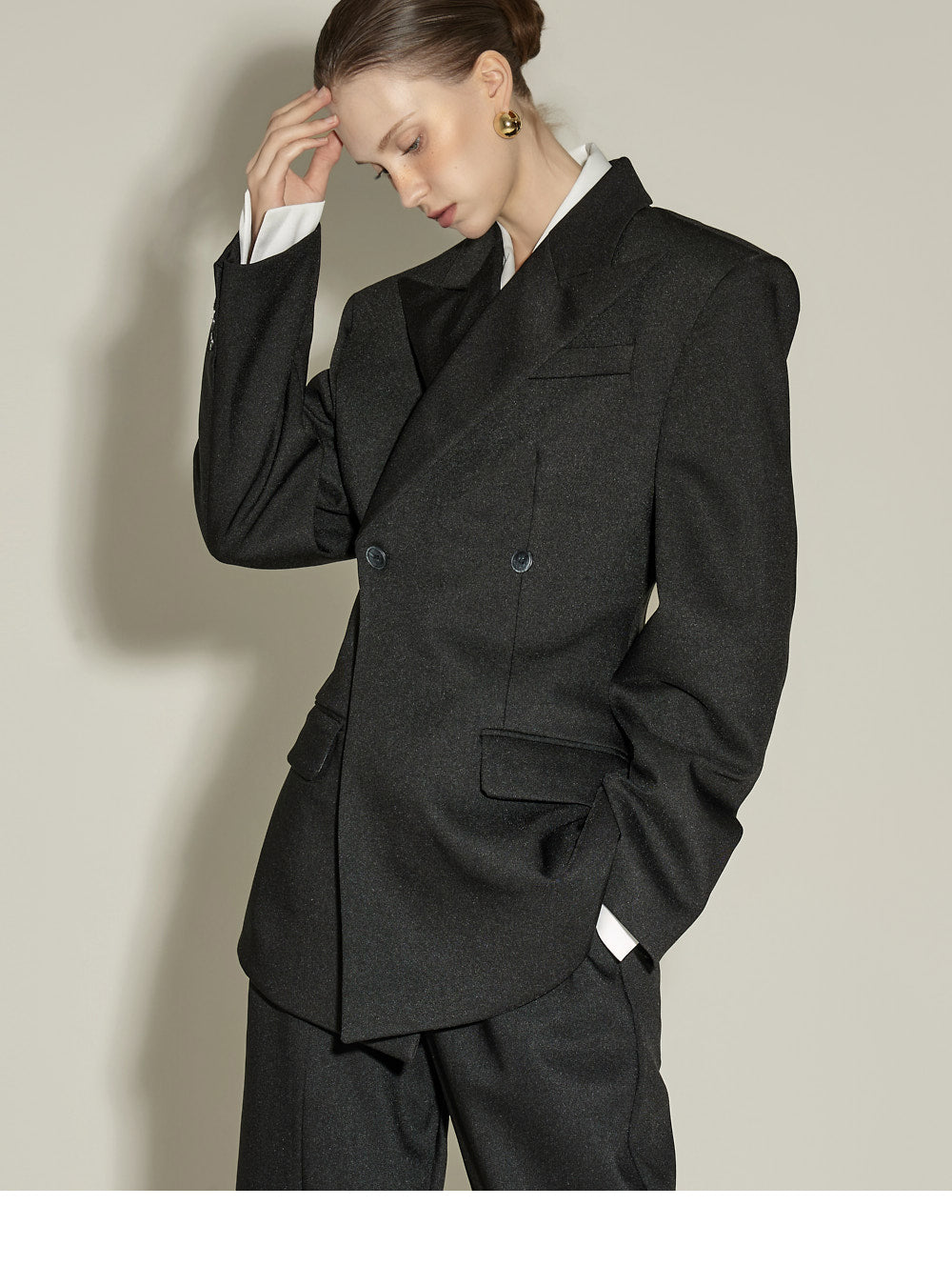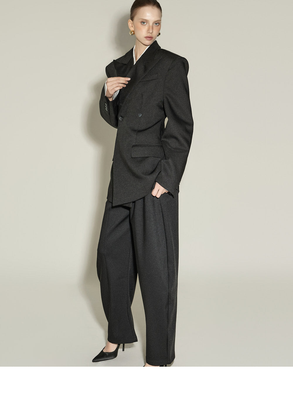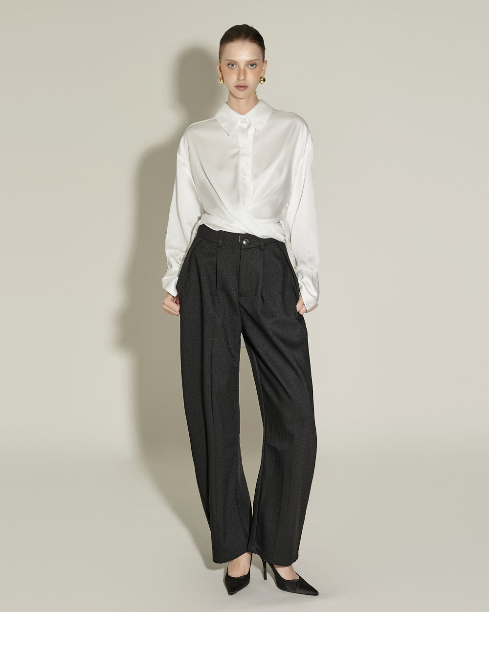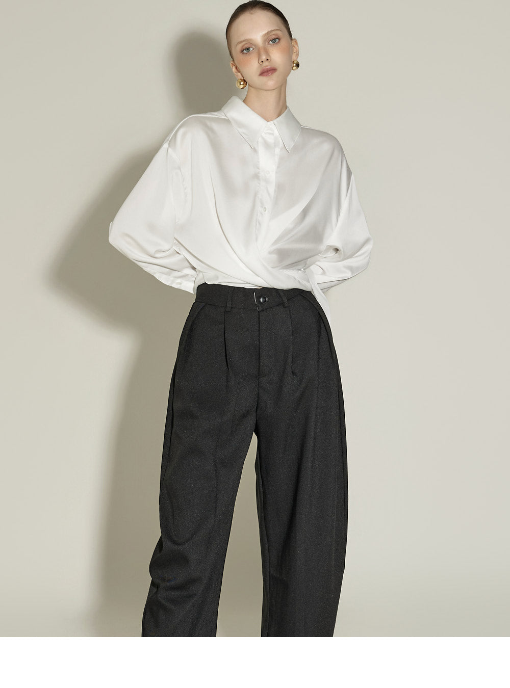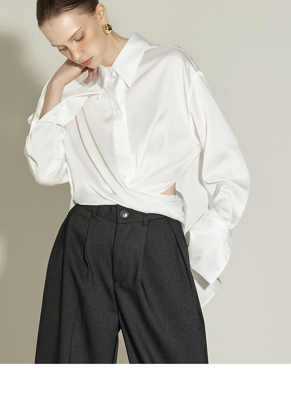 The front pintuck detail and voluminous cuffed fit
