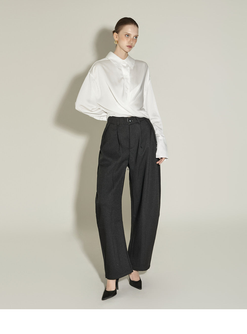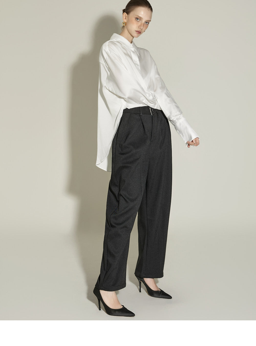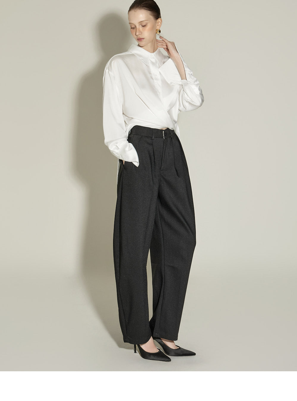 These slacks feature a curved silhouette for a casual look.