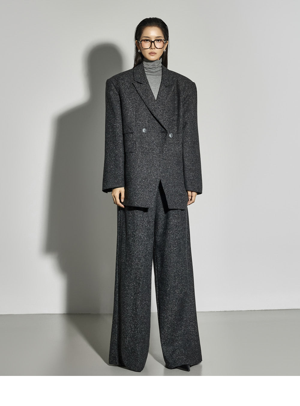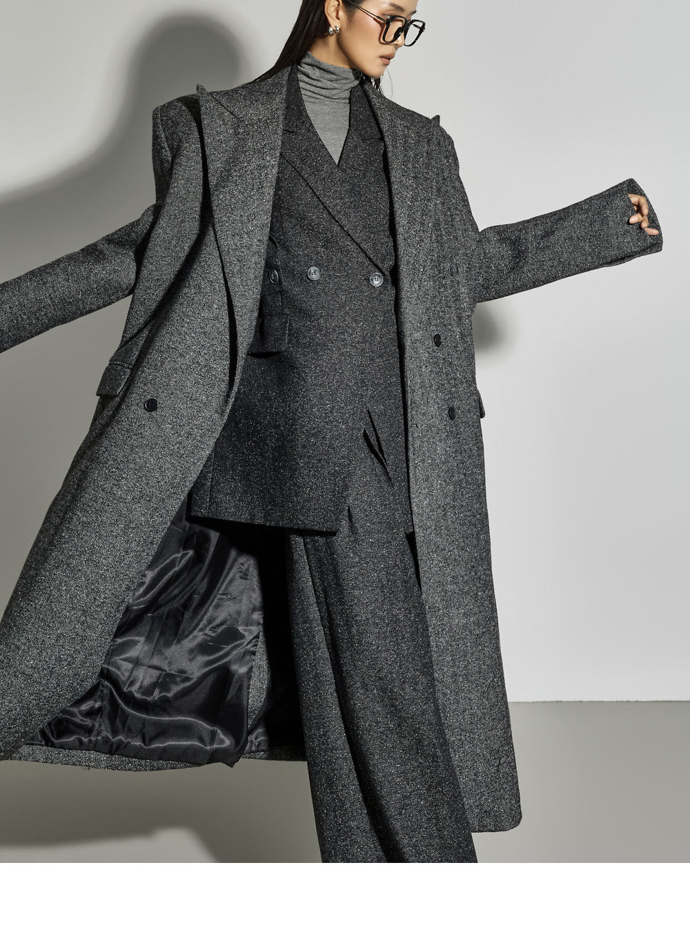 The overall design emphasizes a mannish sensibility, with a modern yet formal feel,