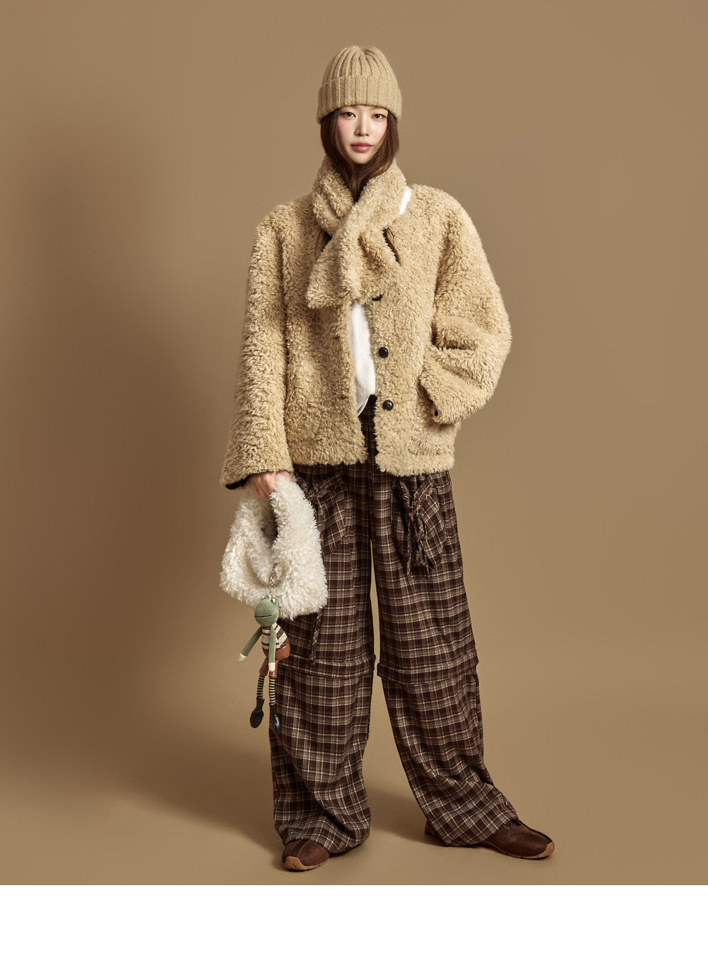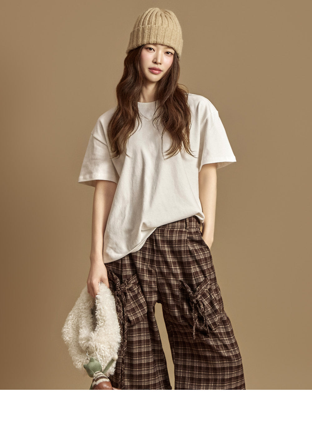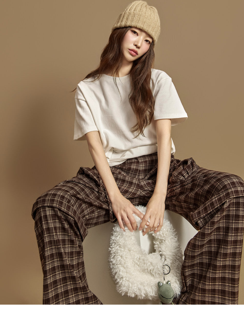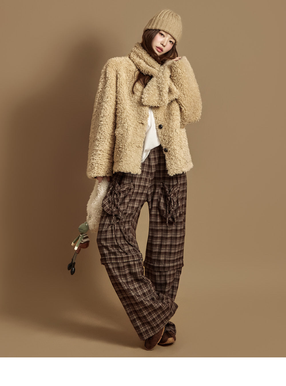 The 171cm model is wearing size ONE, CHECK BROWN.