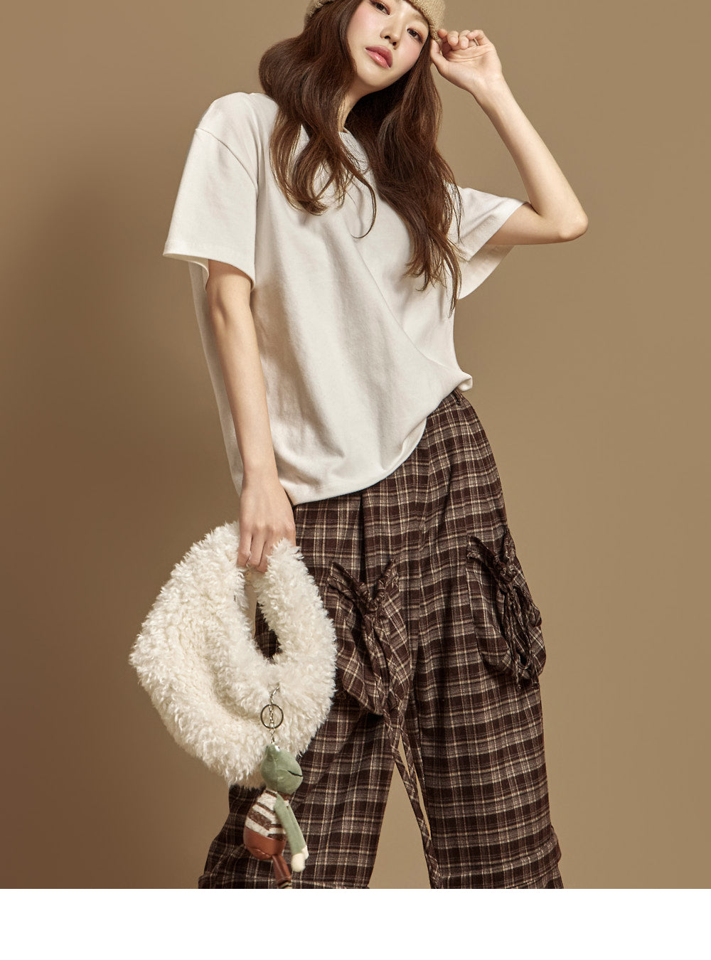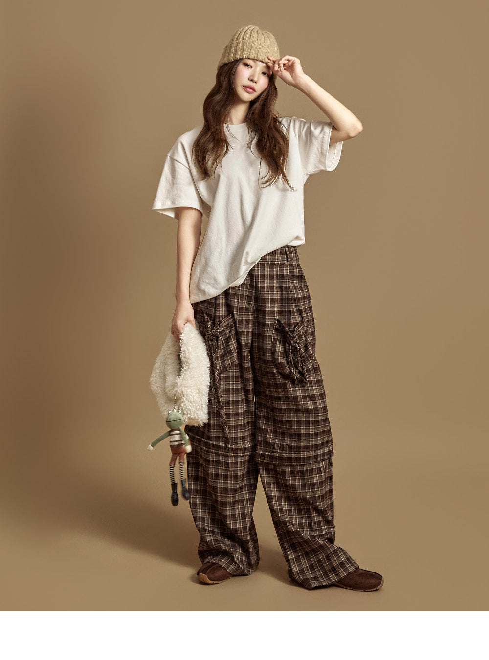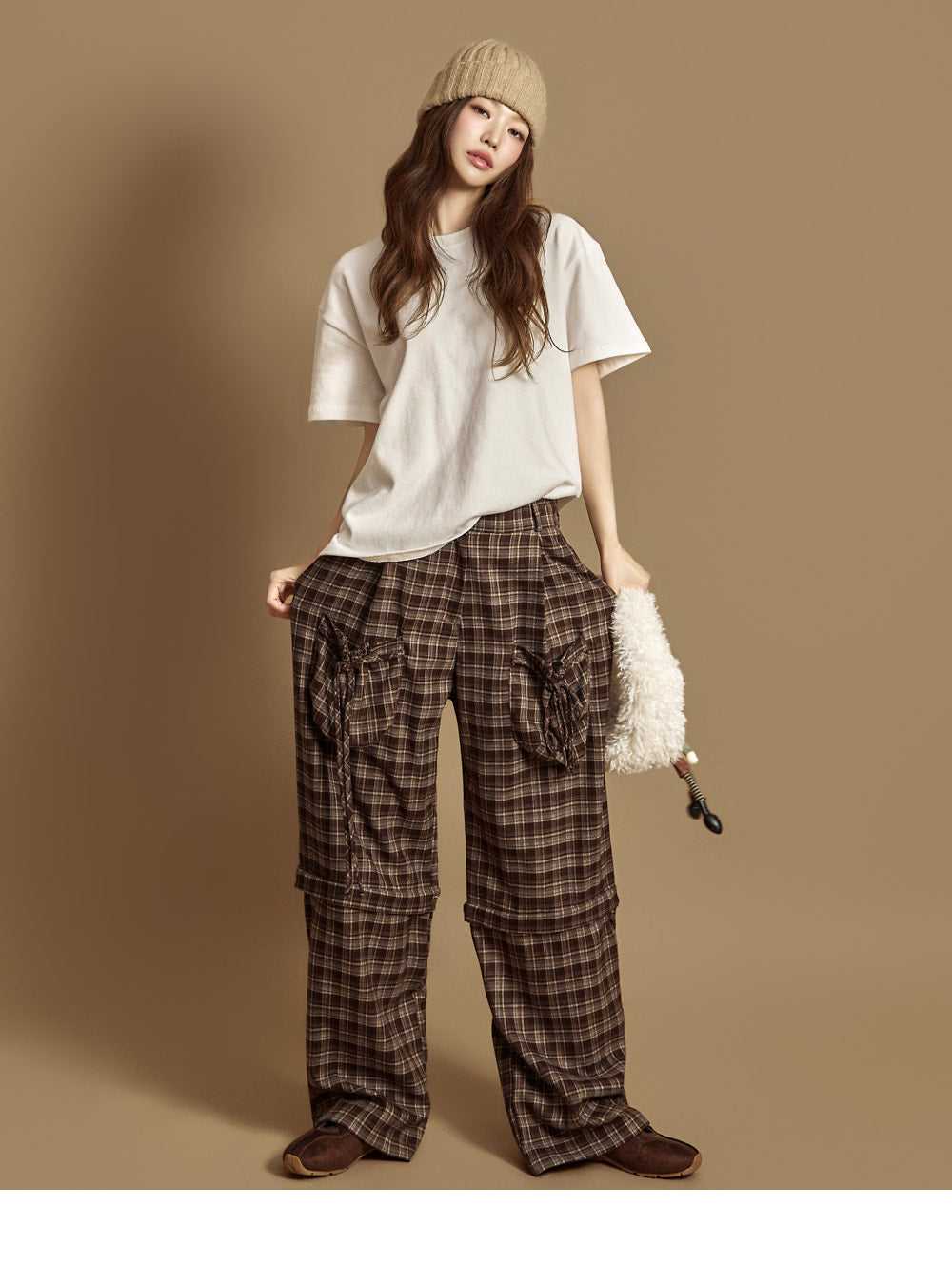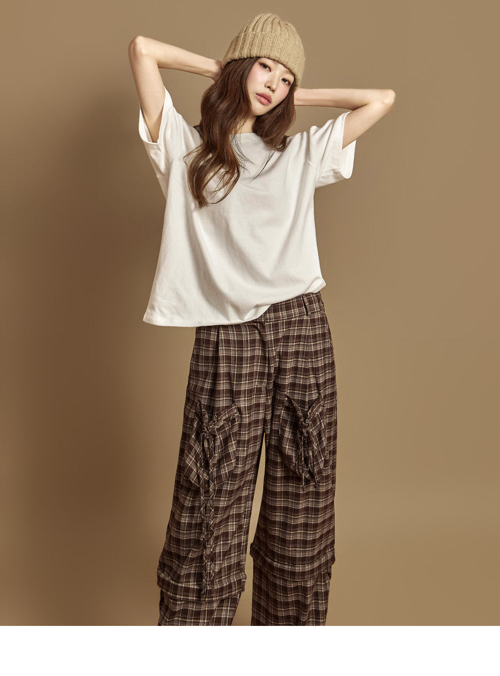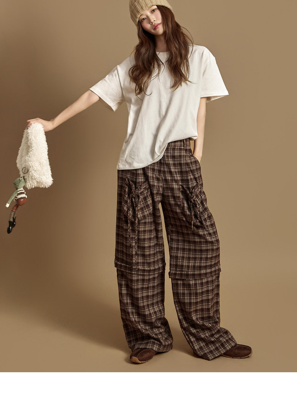 The 171cm model is wearing size ONE, CHECK BROWN.