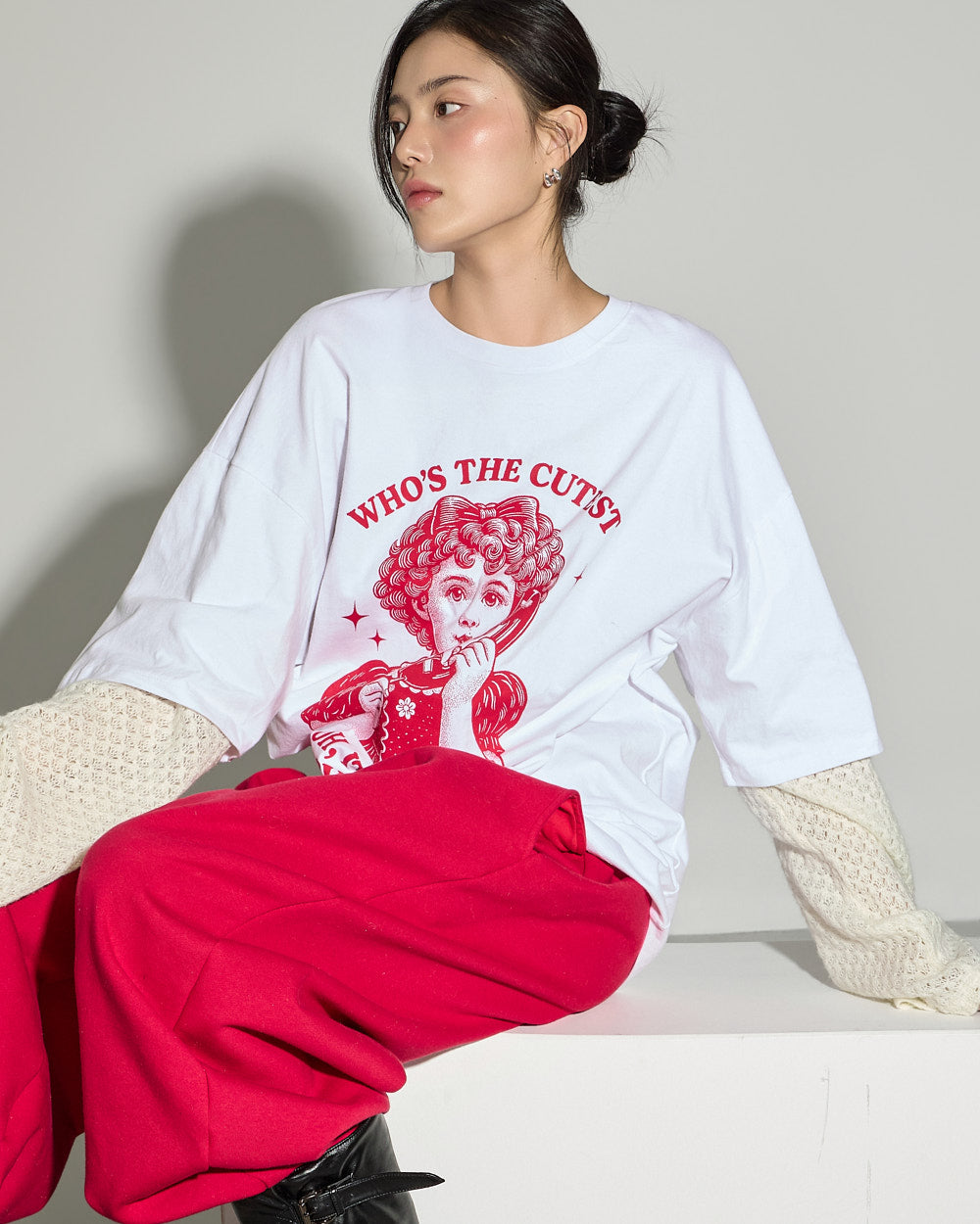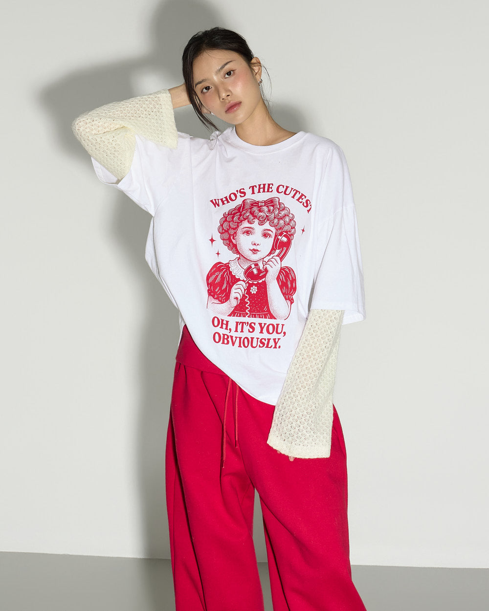 The model is 171cm tall and wears ONE size in Red.