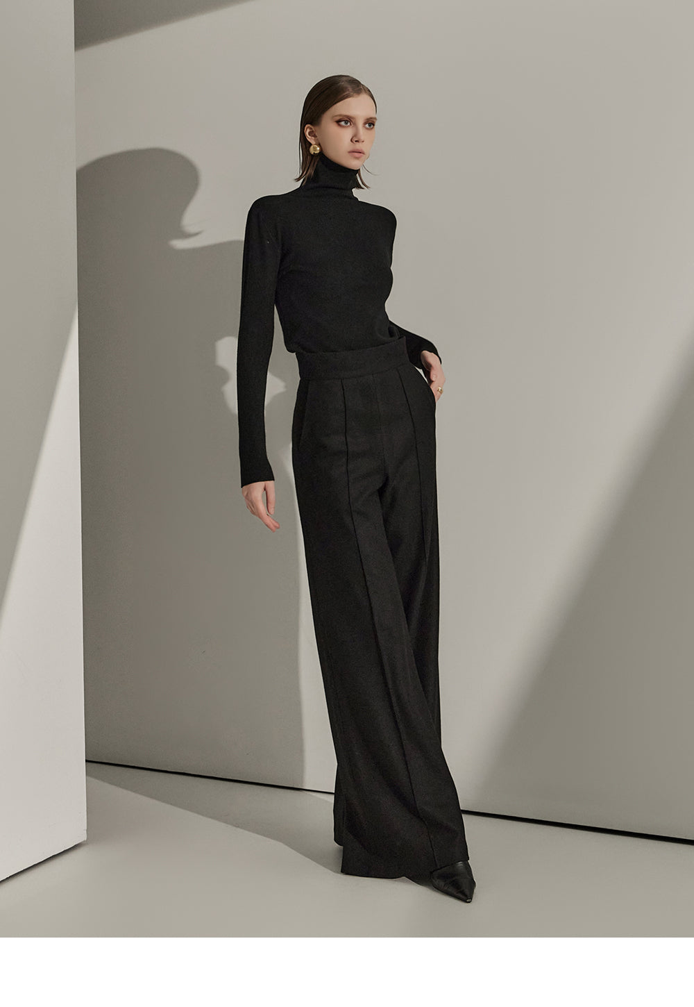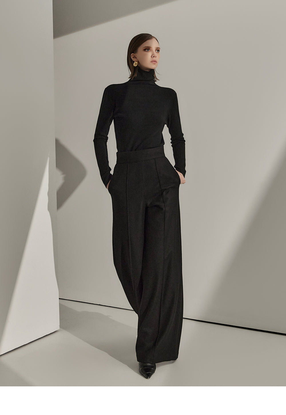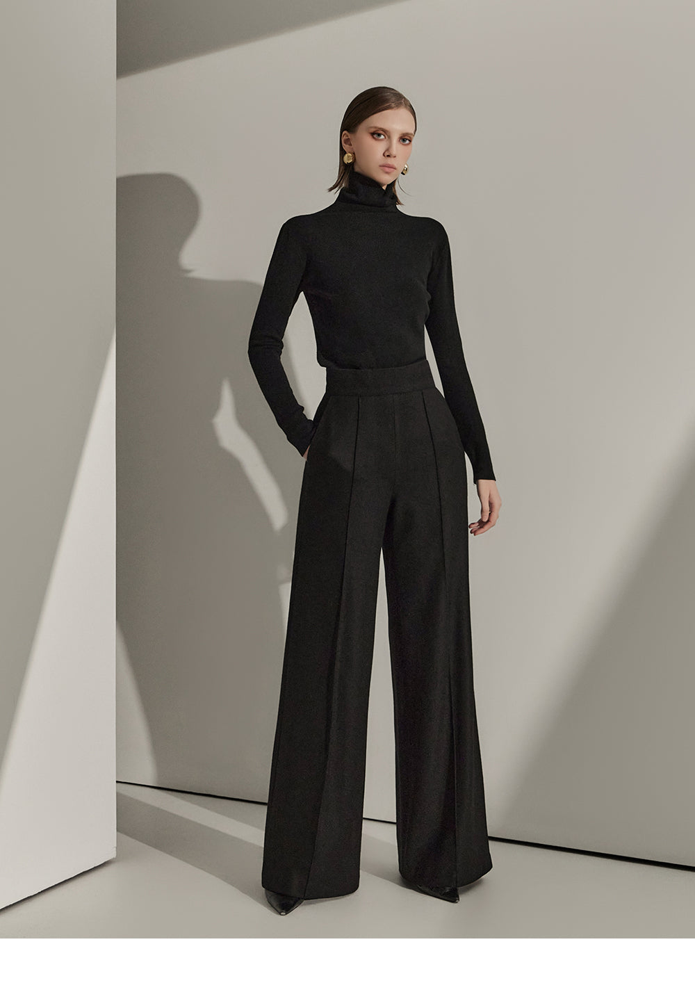 P9065 Pintuck Wide Wool Slacks