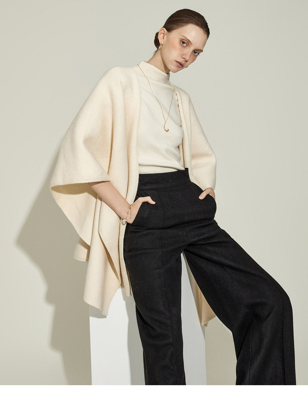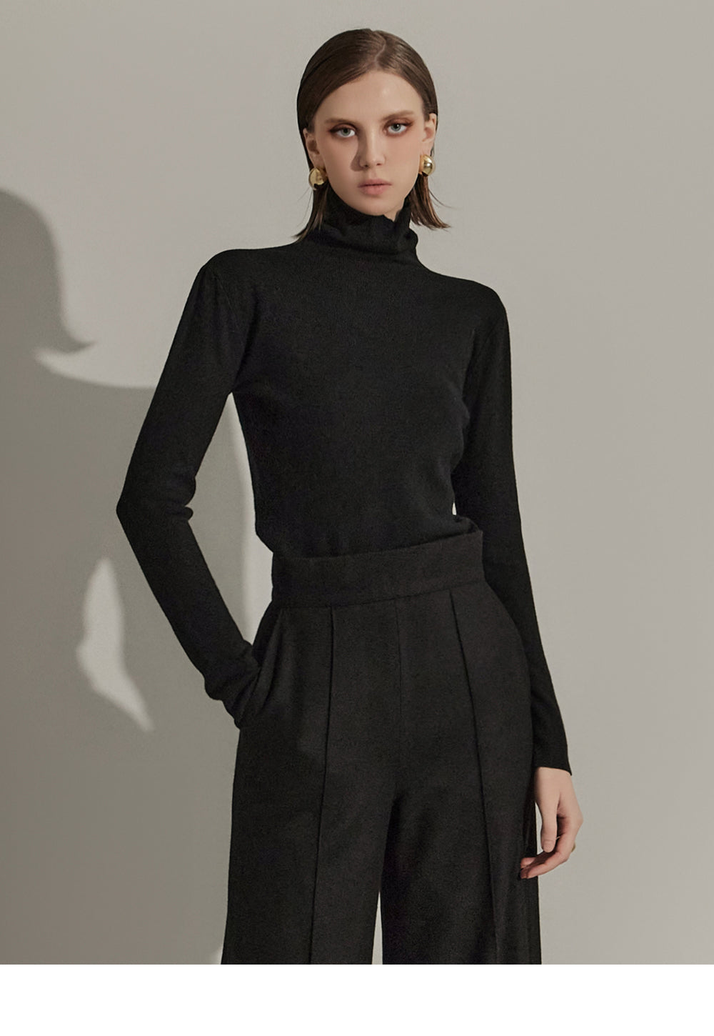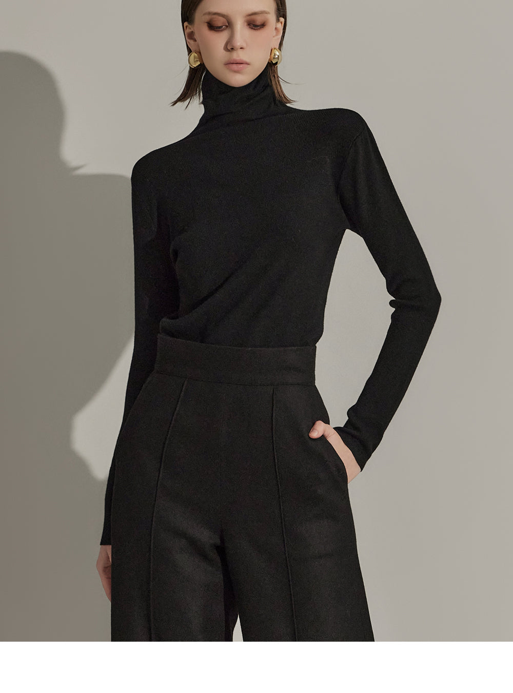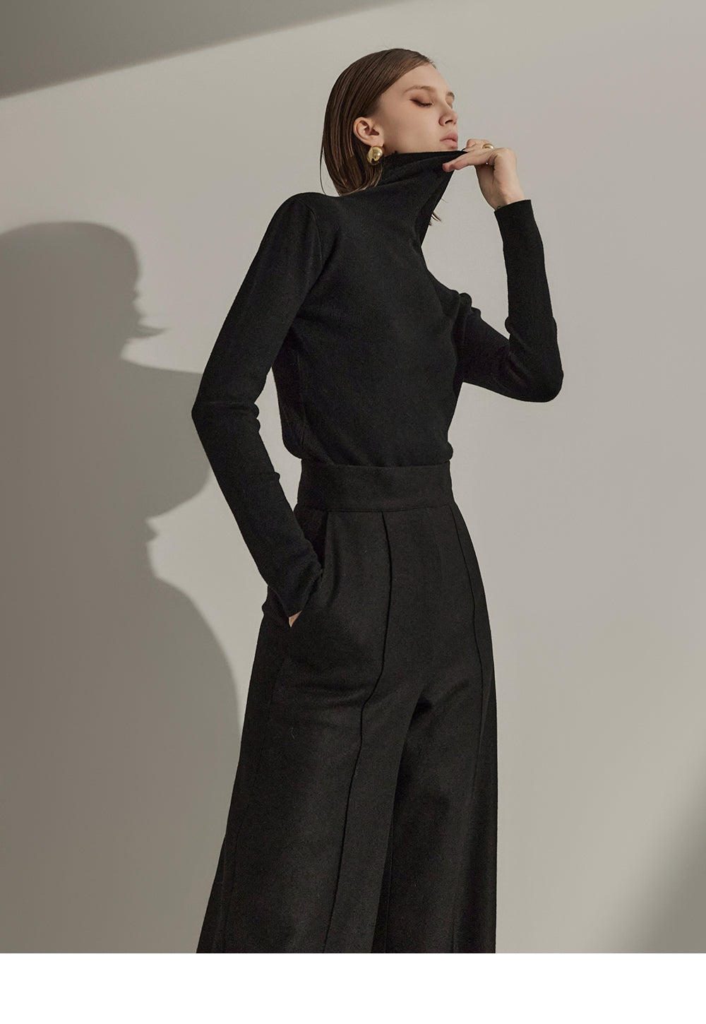 P9065 Pintuck Wide Wool Slacks