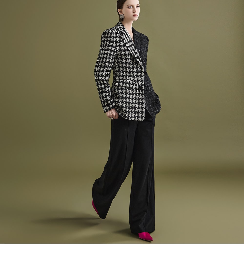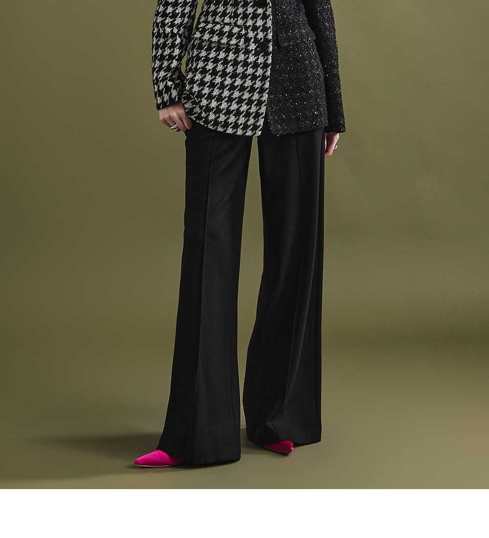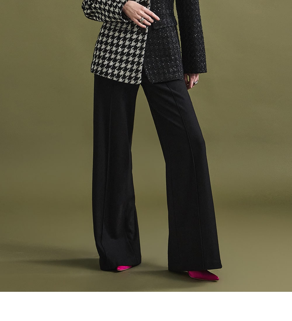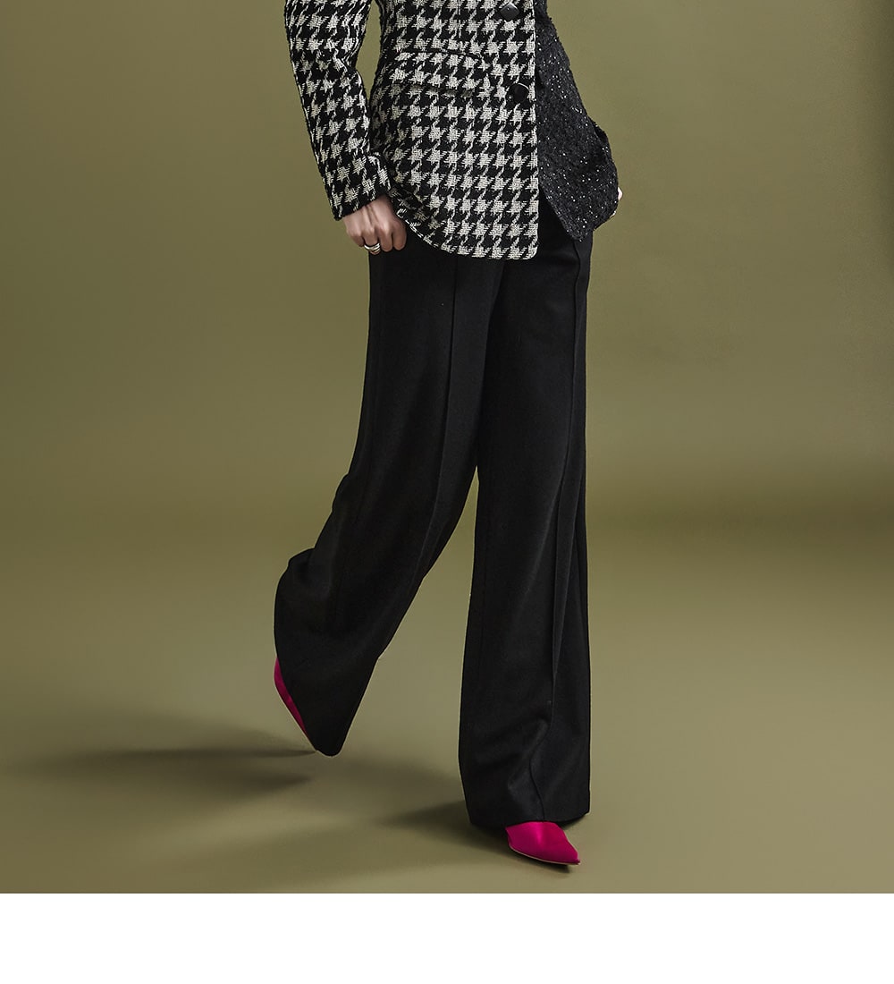 These stylish slacks showcase a standout mood.