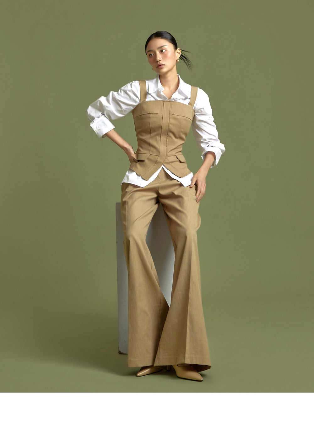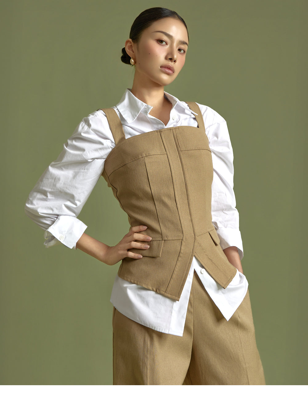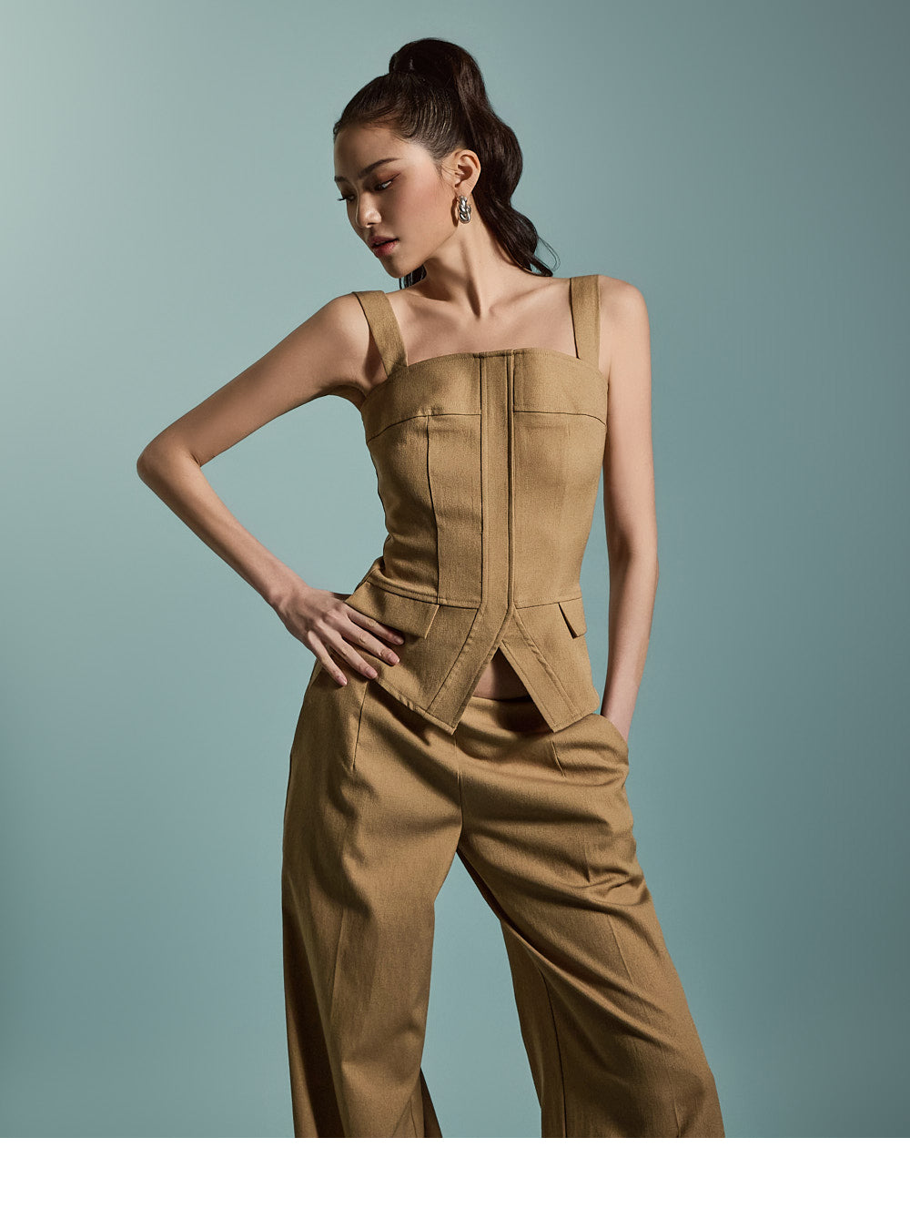 Crafted from a blend of polyester, Sorona, cotton, and linen,