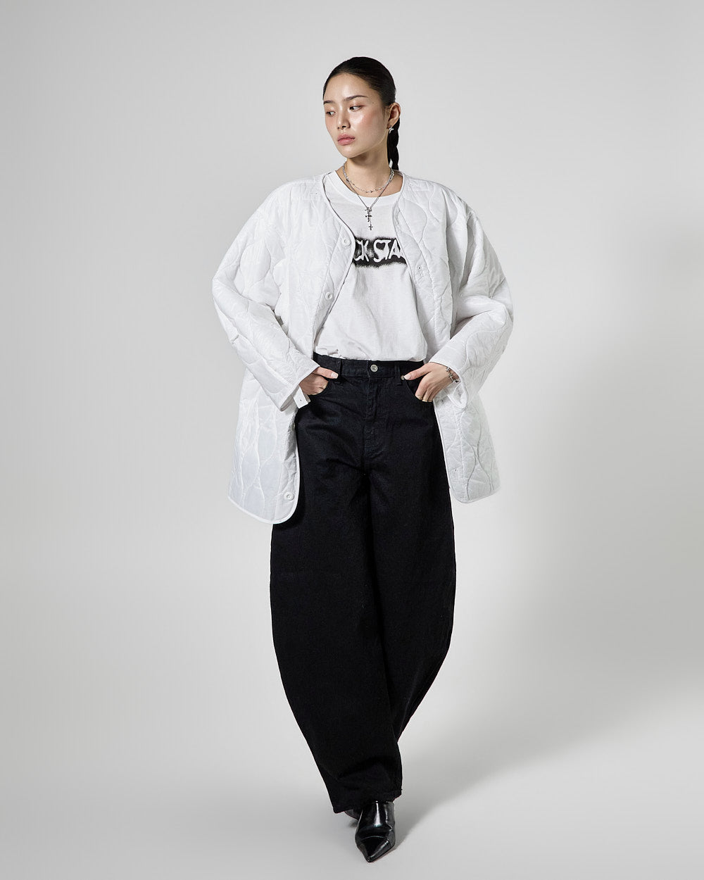 Denim (jeans, coated jeans) and other dark-dyed garments may experience color fading or transfer. Please take extra care before the first wash and while wearing them.