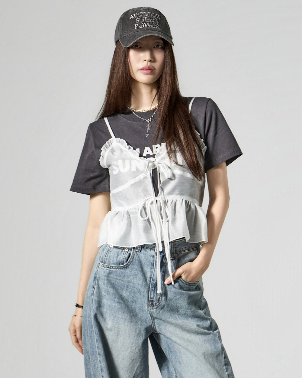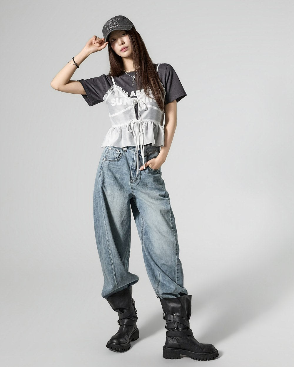 These semi-balloon jeans offer a stylish yet casual vibe.