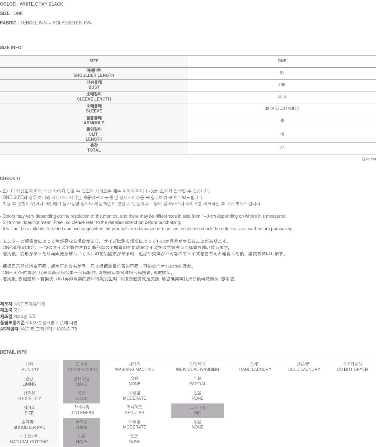 Clothing from DINT Co., Ltd. may become damaged or deformed if machine washed or tumble dried. We strongly recommend following the care instructions provided below.