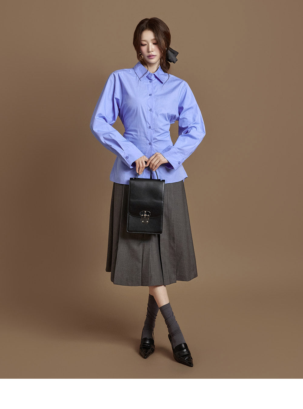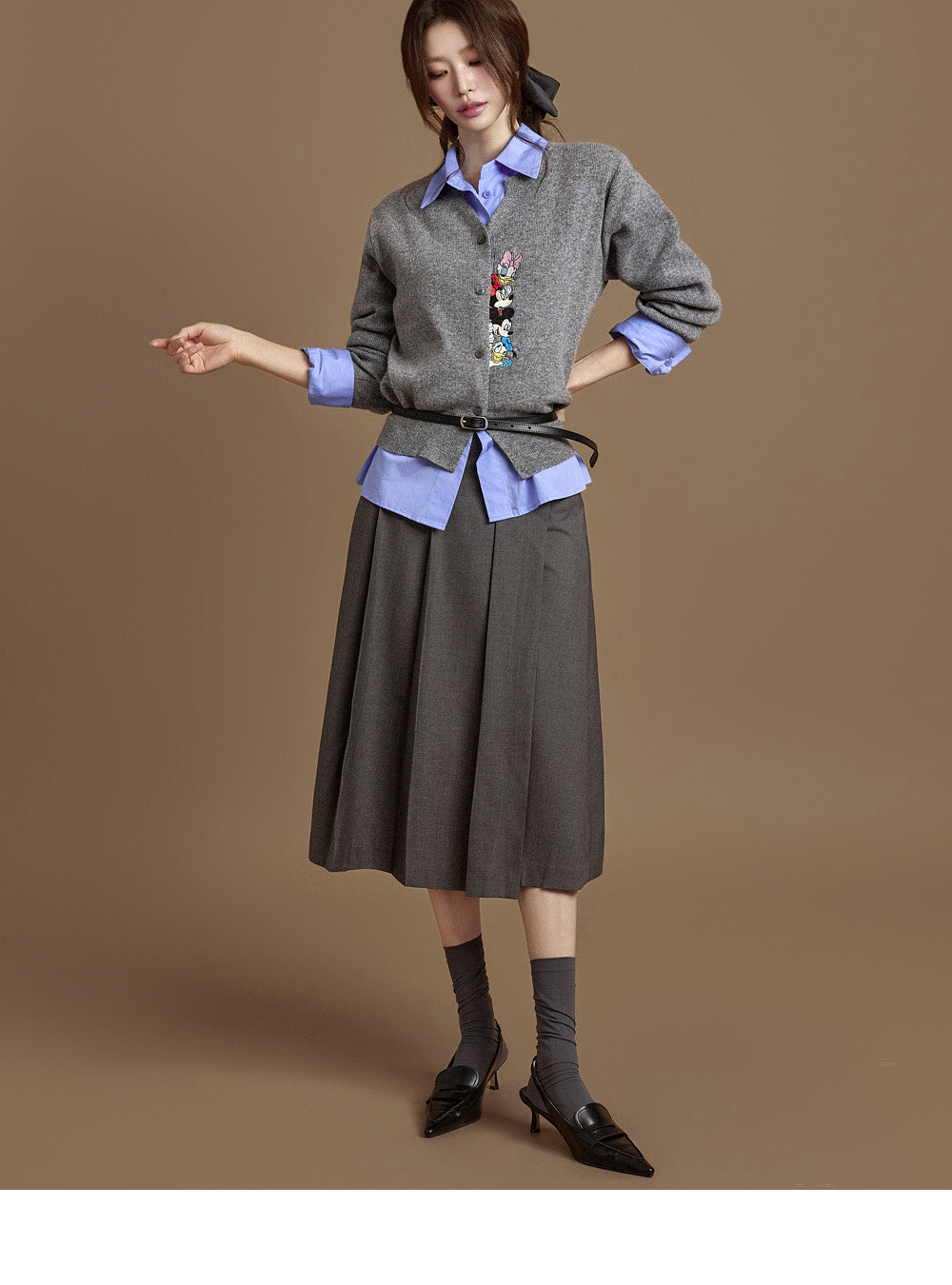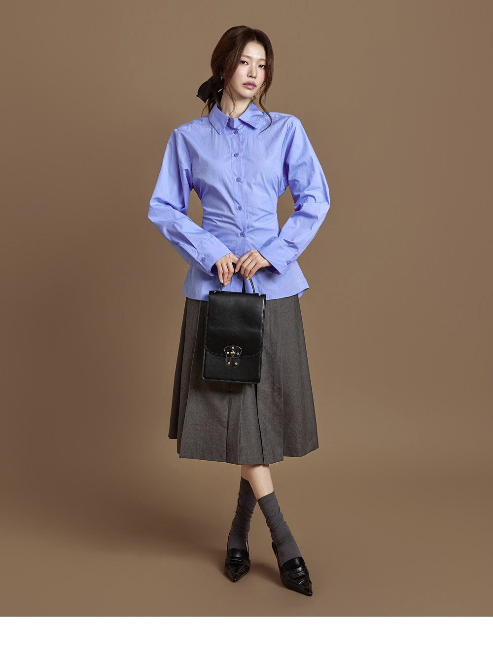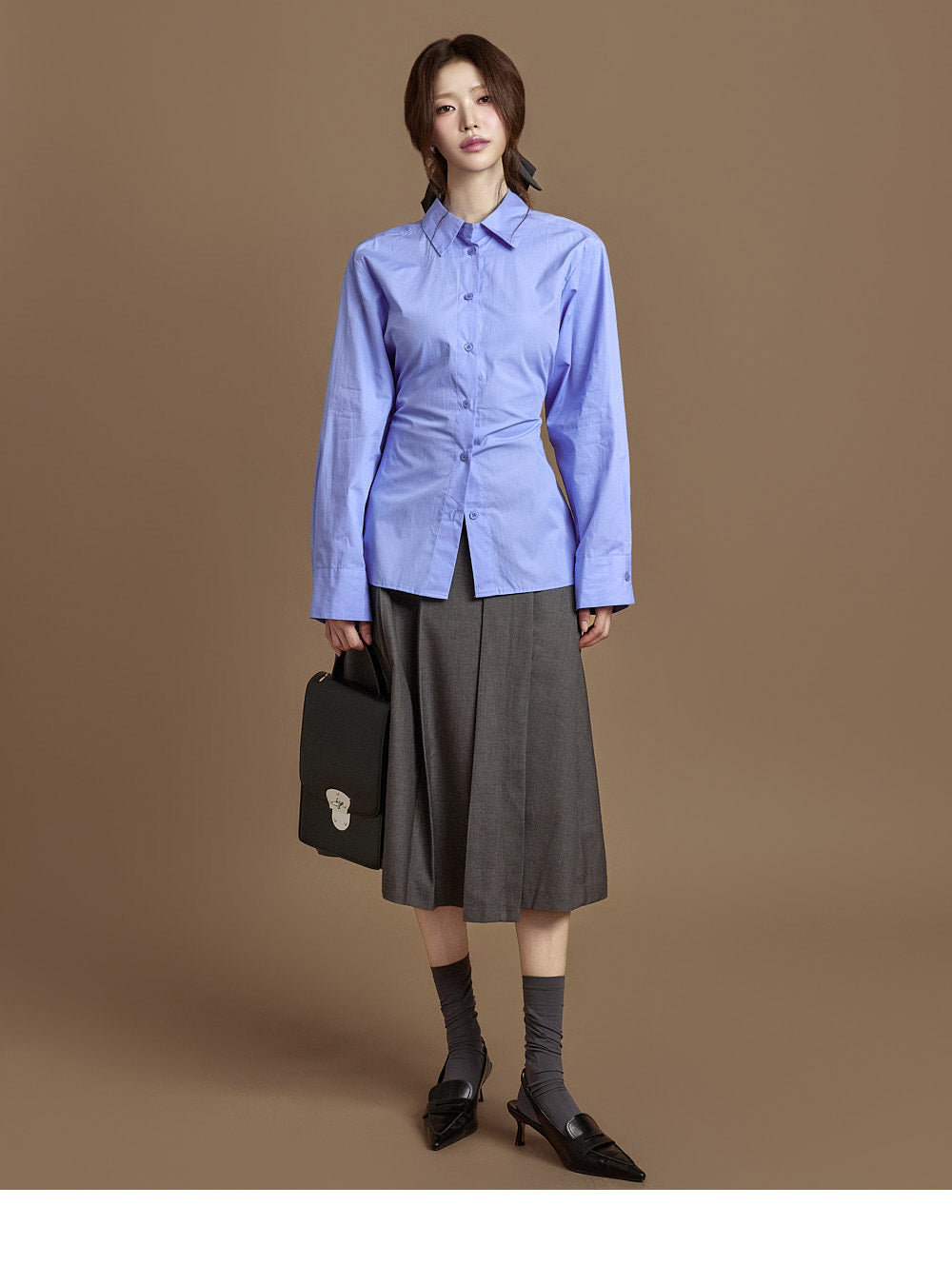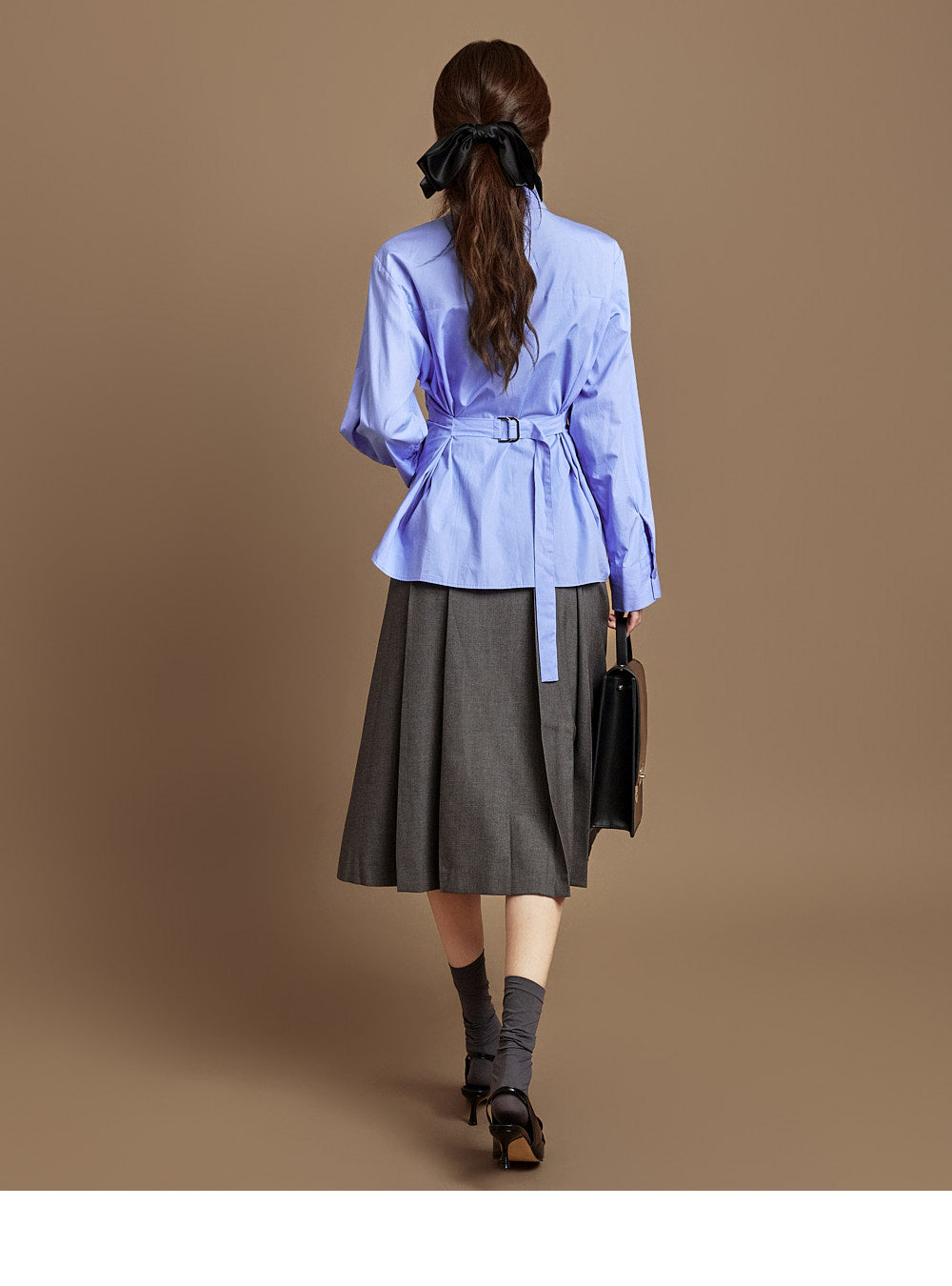 The integrated belt at the back of the waist allows for adjustable silhouettes.
