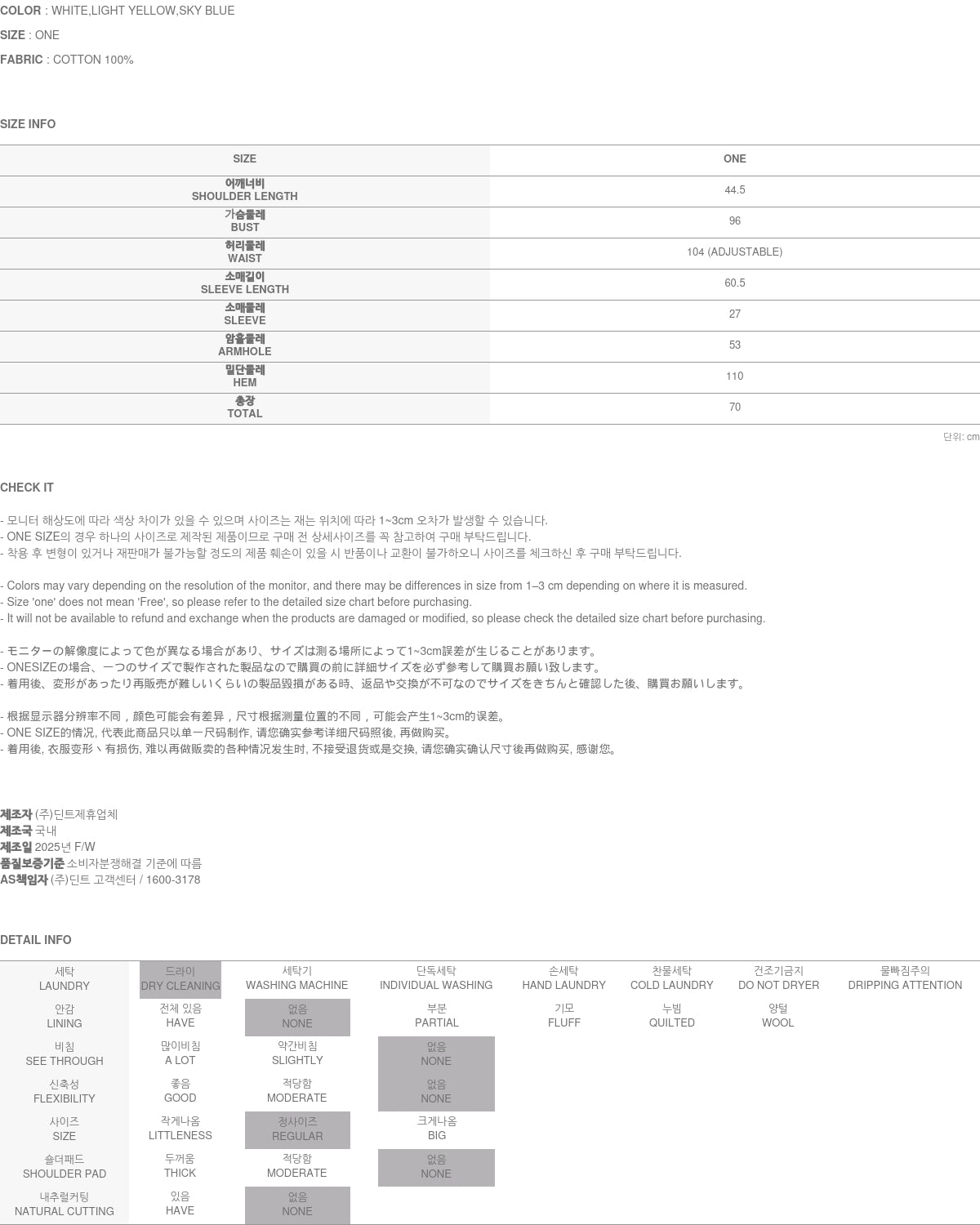 Clothing from DINT Co., Ltd. may become damaged or deformed if machine washed or tumble dried. We strongly recommend following the care instructions provided below.