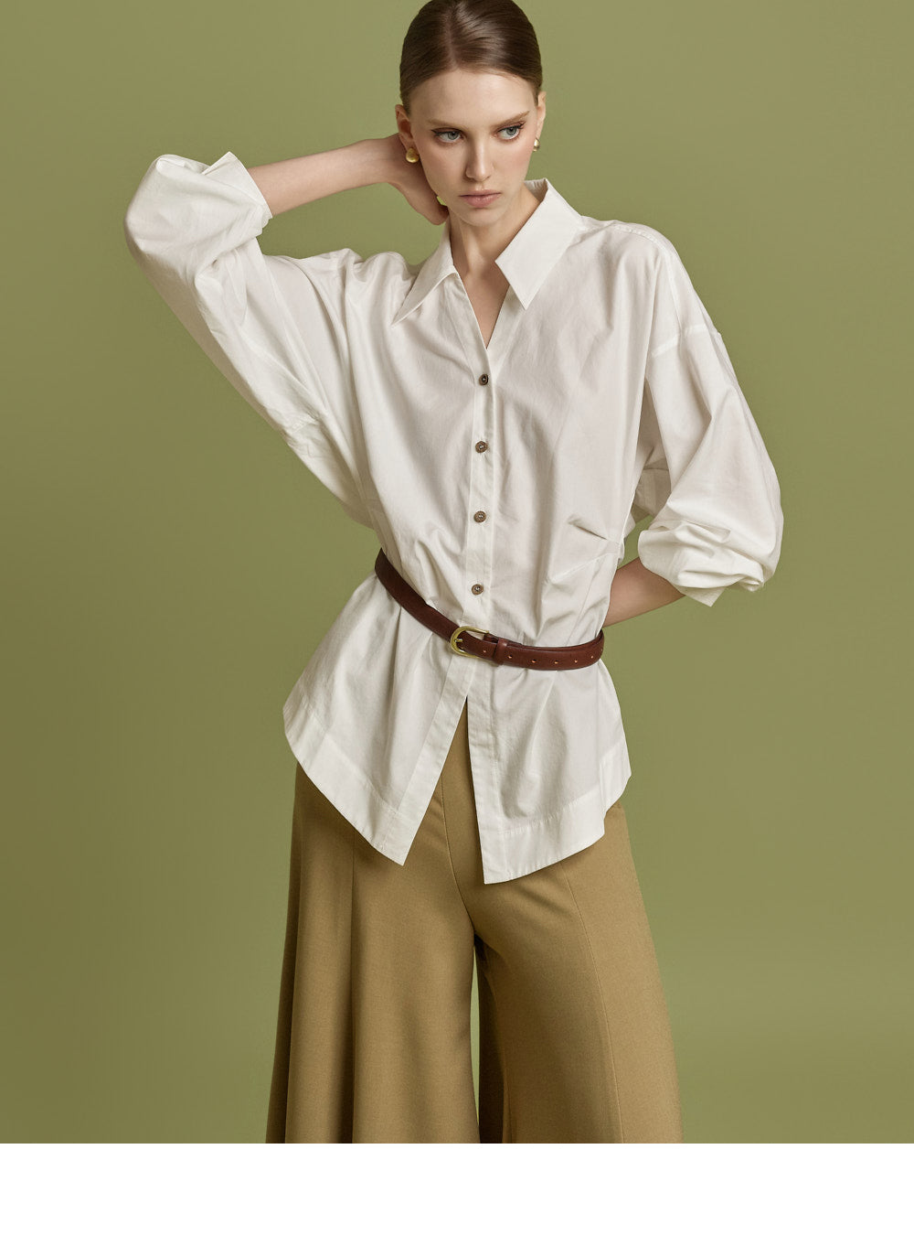 and pairs easily with a variety of bottoms, such as denim or slacks.