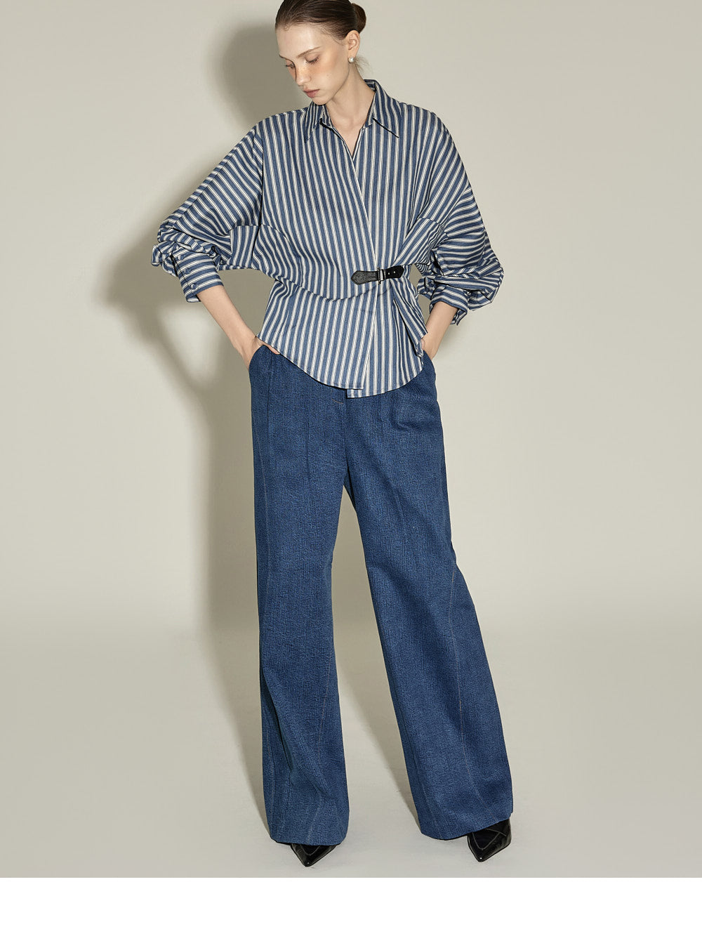 Denim (jeans, coated jeans) and other dark-dyed garments may experience color fading or transfer. Please take extra care before the first wash and while wearing them.