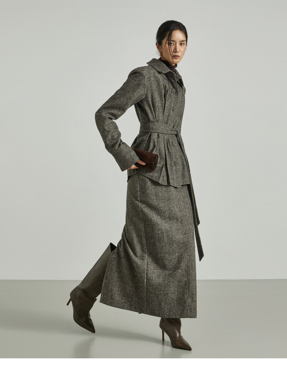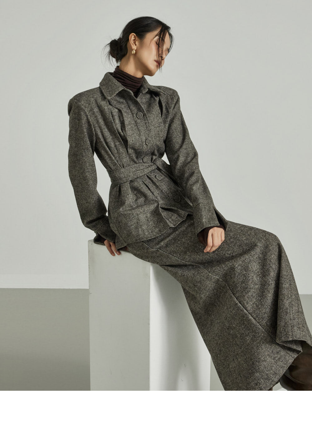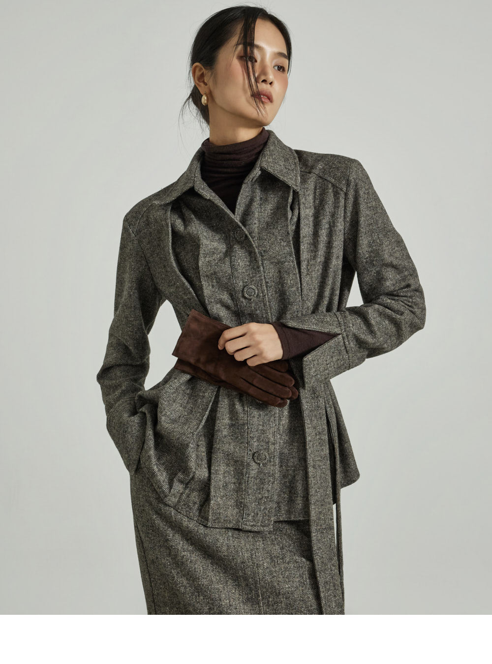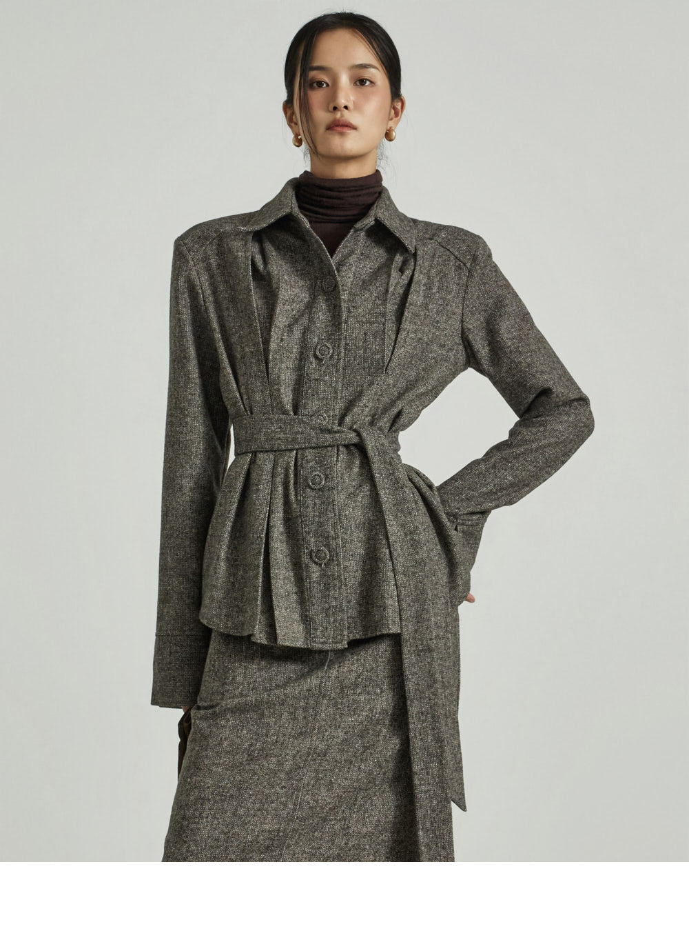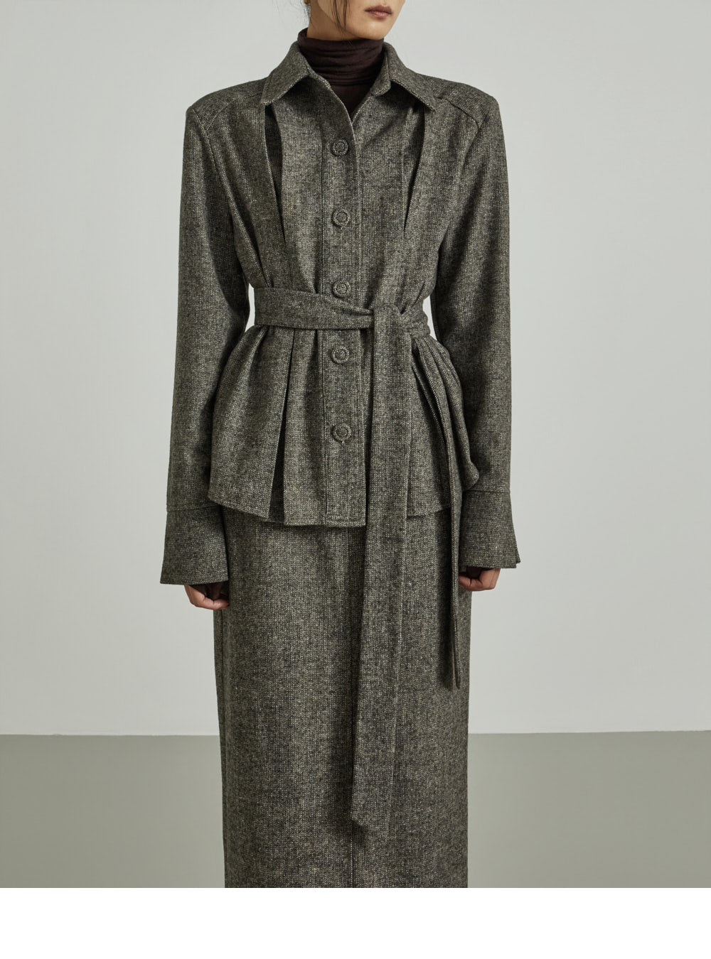 Slit sleeves and shoulder pads provide structure, ,completing a sophisticated fit.
