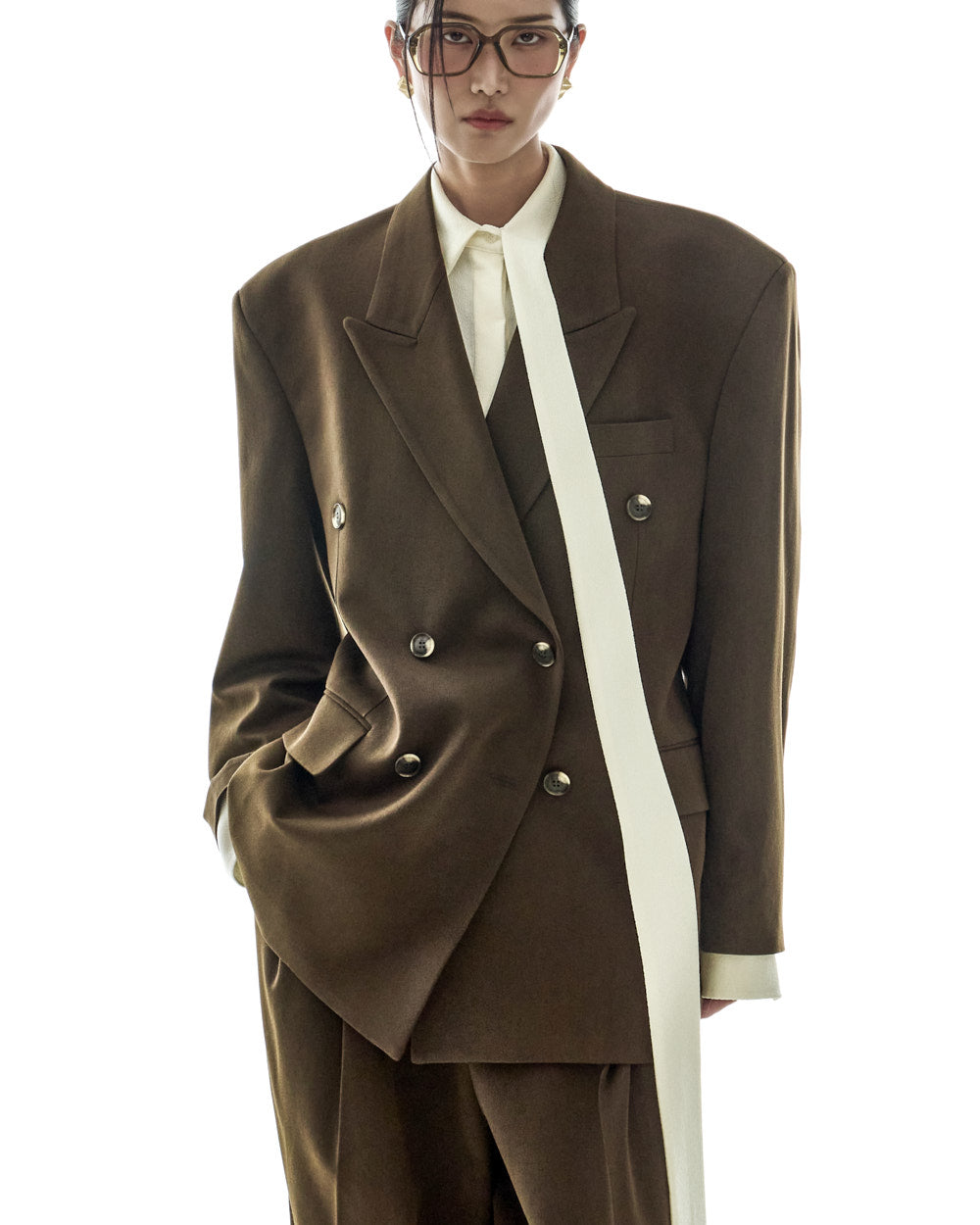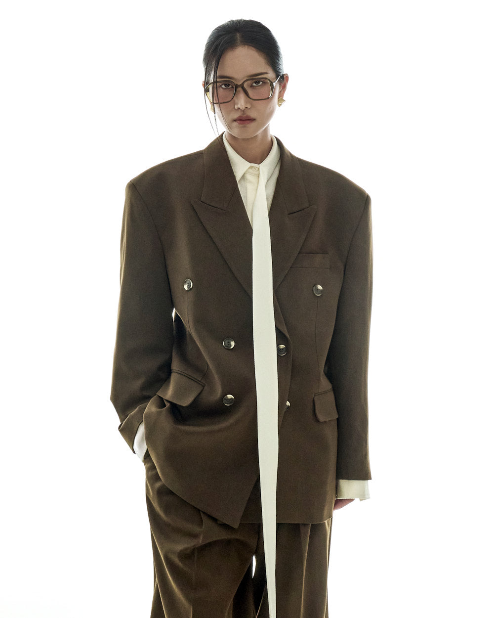 The hidden front button closure refines the overall silhouette.