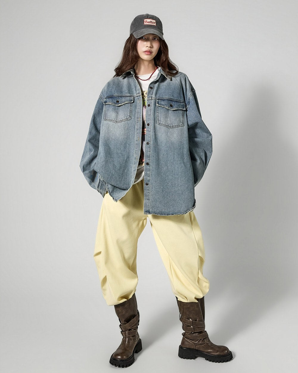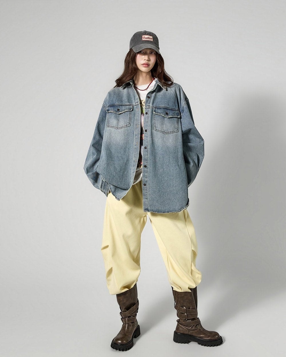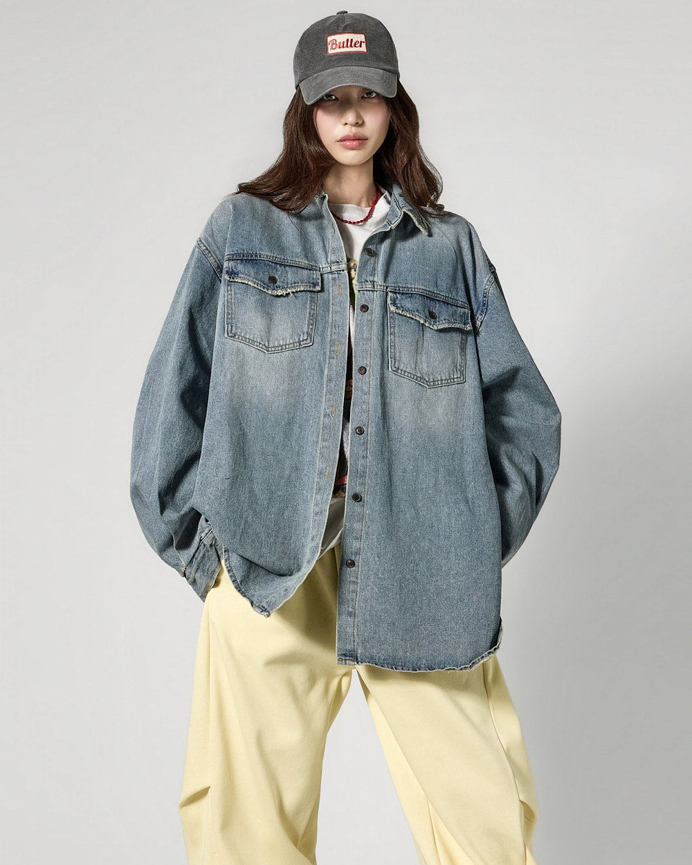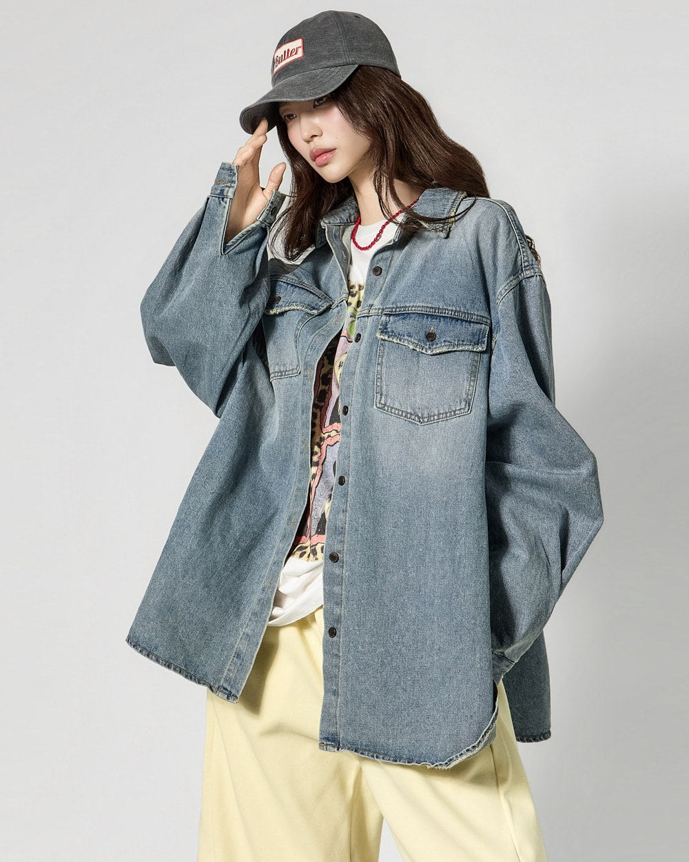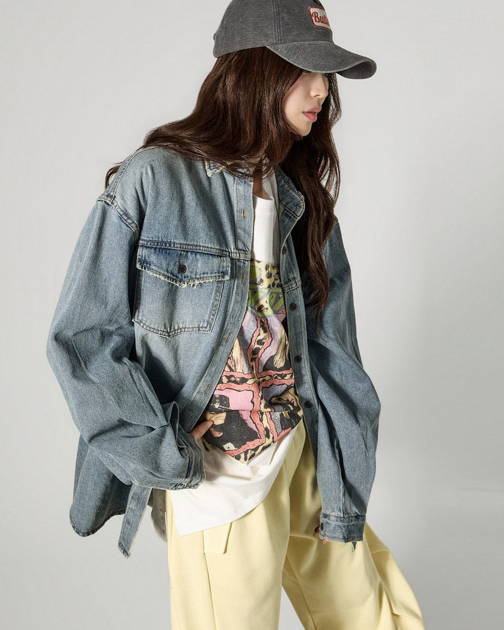The vintage washing details create a stylish atmosphere,