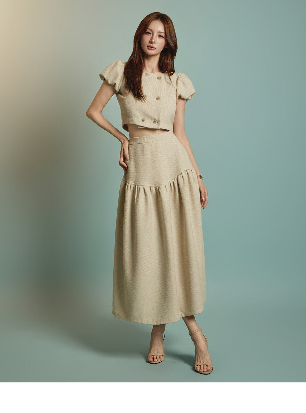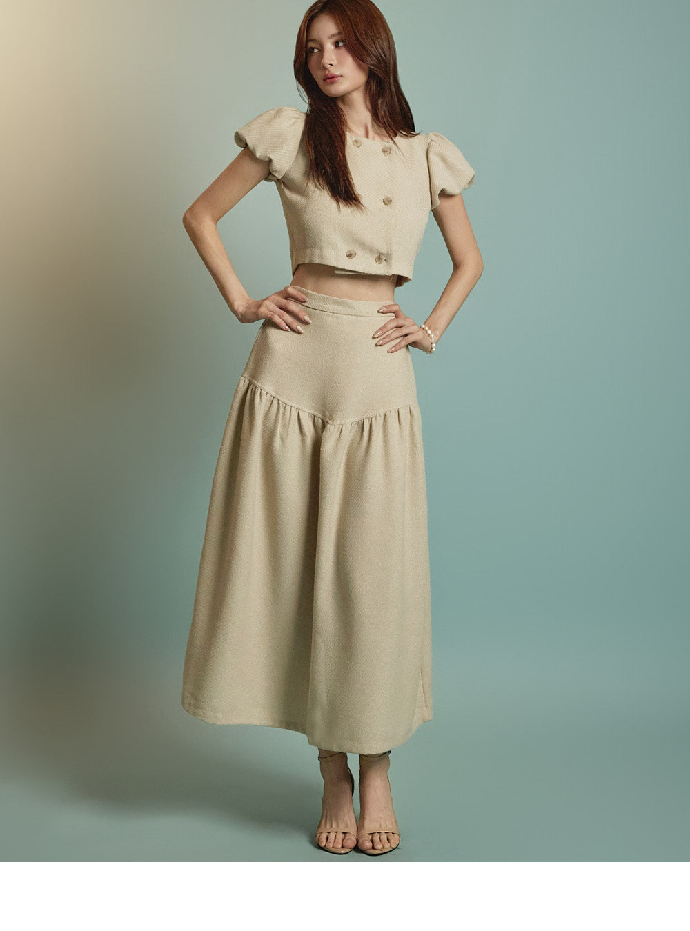 Ruching on both the front and back creates a full, dimensional silhouette.
