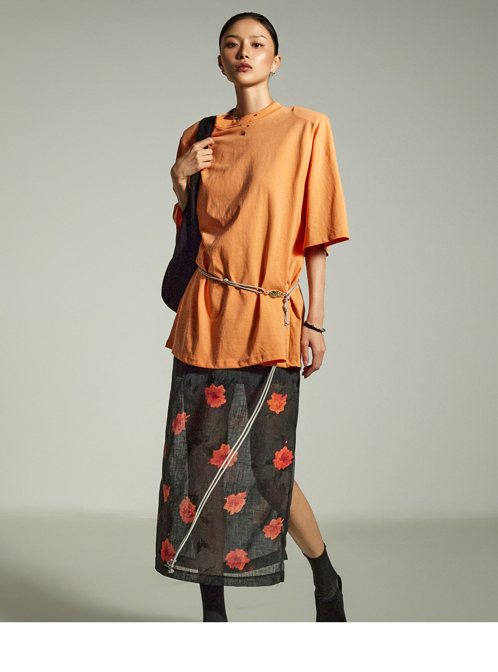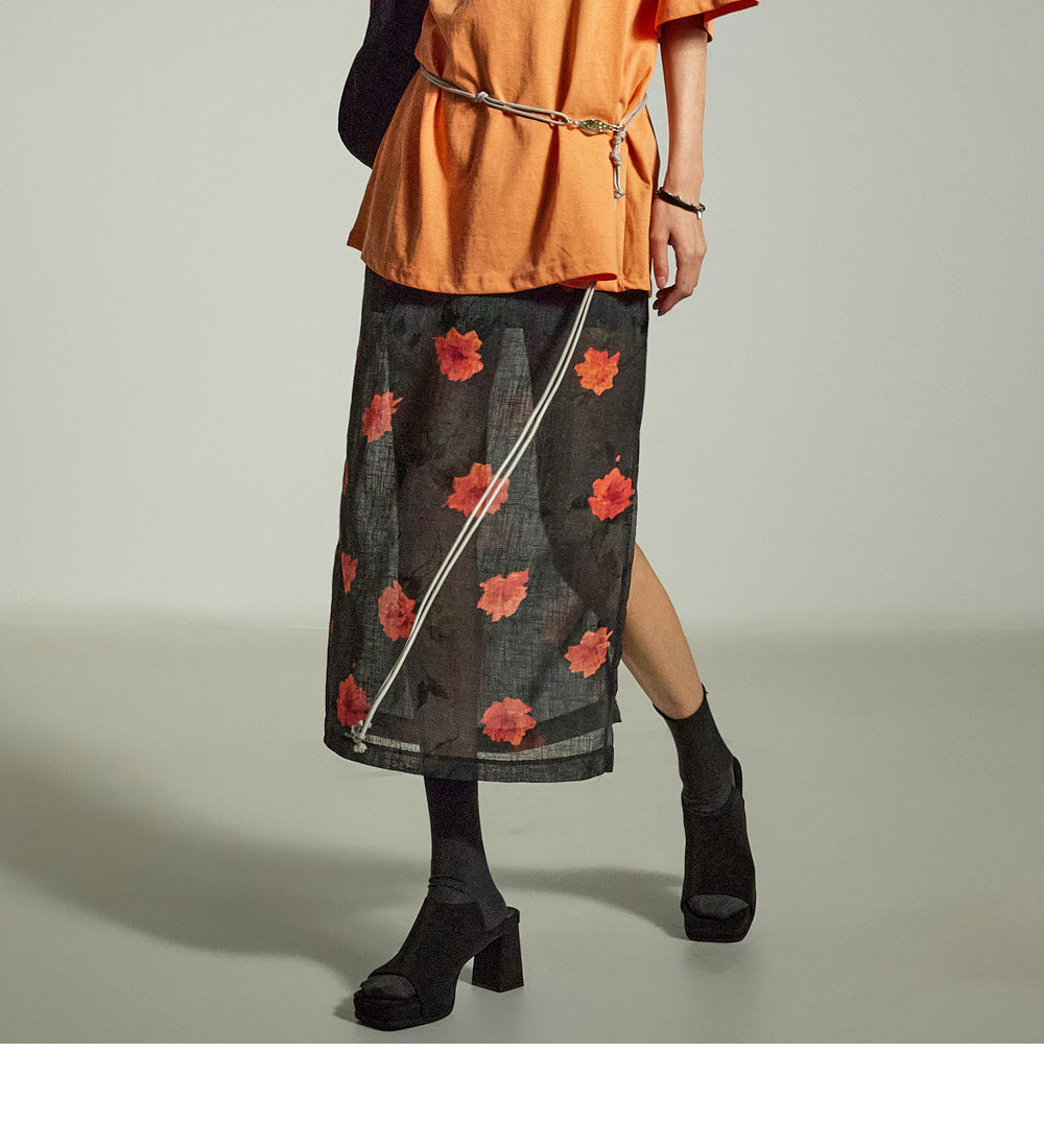 this skirt effortlessly elevates any outfit with its distinctive vibe.
